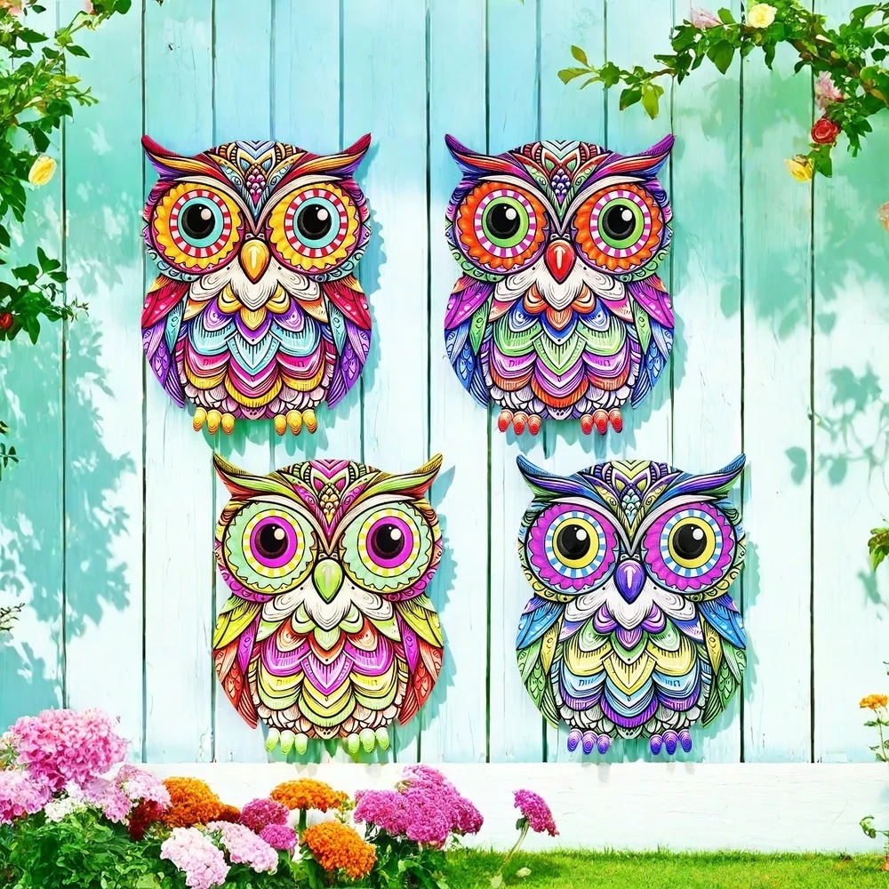 Eye-catching Metal Art Owl Wall Decor Colorful Iron Art Owl Sculptures Owl Hanging Ornament for Outdoor Home Yard Garden Fence