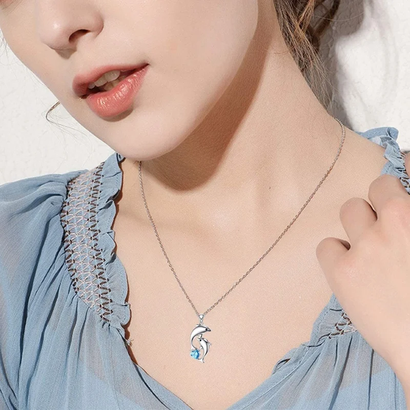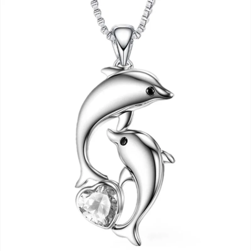 Style:cute , fashion,dolphin pendant,heart zircon animal necklace,couple jewelry