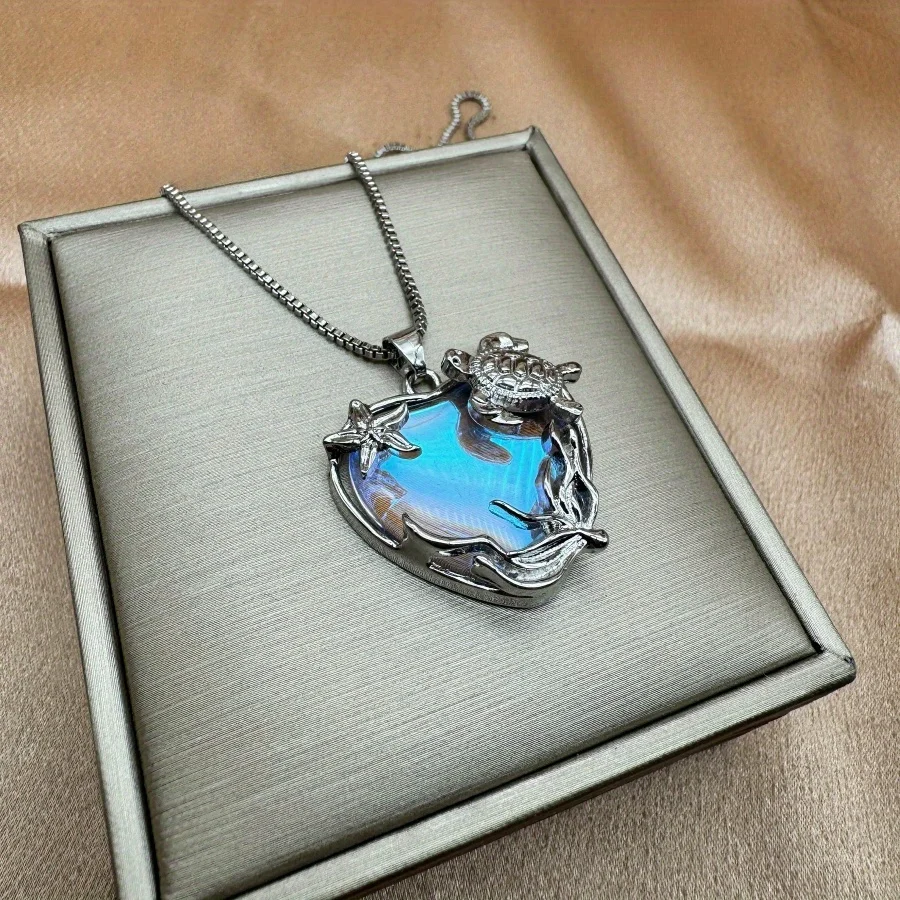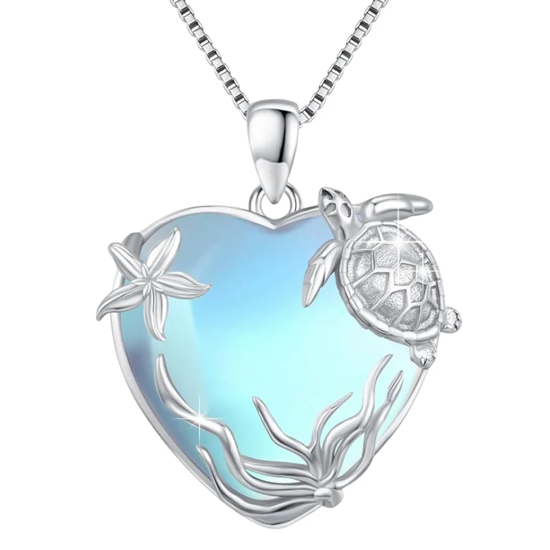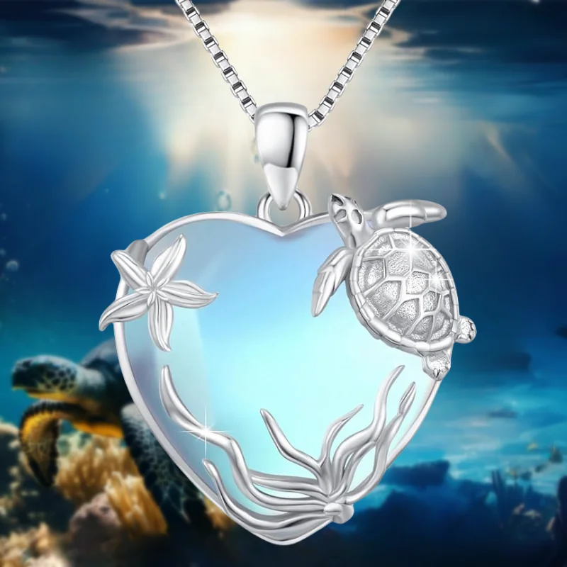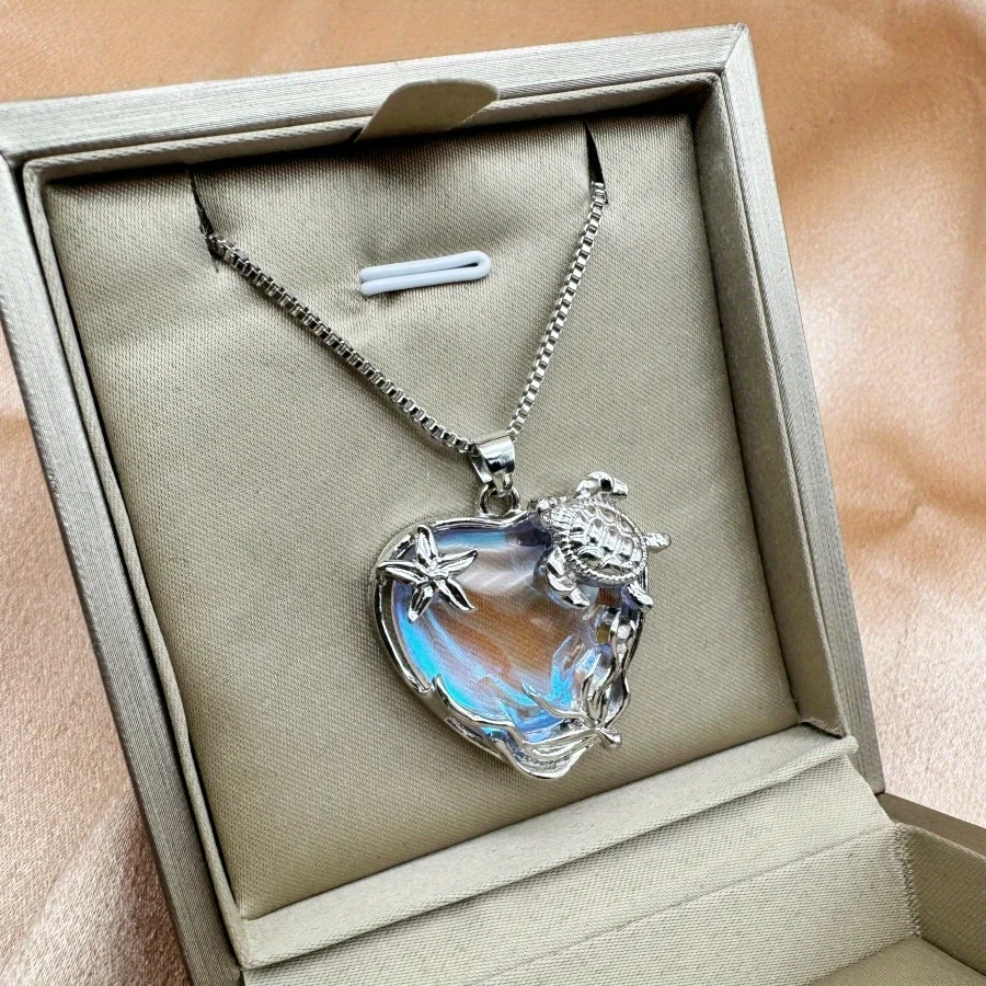 Fashion Heart Moonlight Stone Crystal Pendant Turtle Necklace Engagement Necklaces for Women Animal Jewelry Anniversary Gift