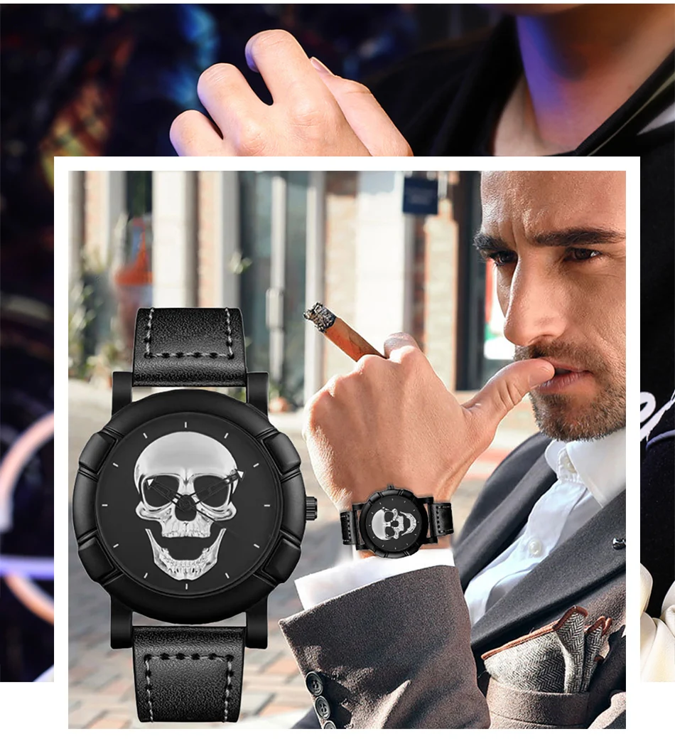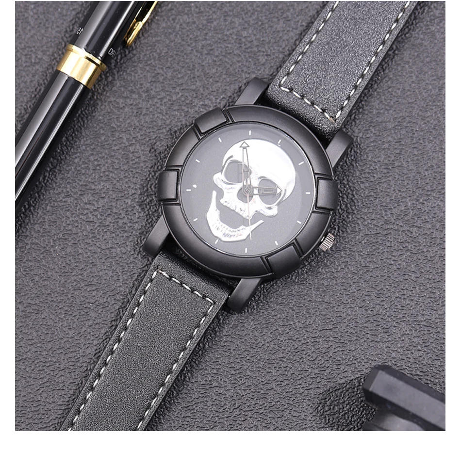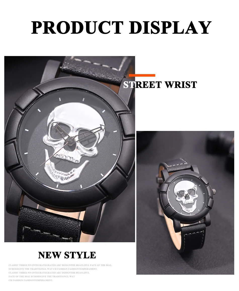 Fashion Mens Personalized 3D Skull Watches Luxury Men Casual Quartz Wristwatch Male Military Sports Leather Watch Reloj Hombre