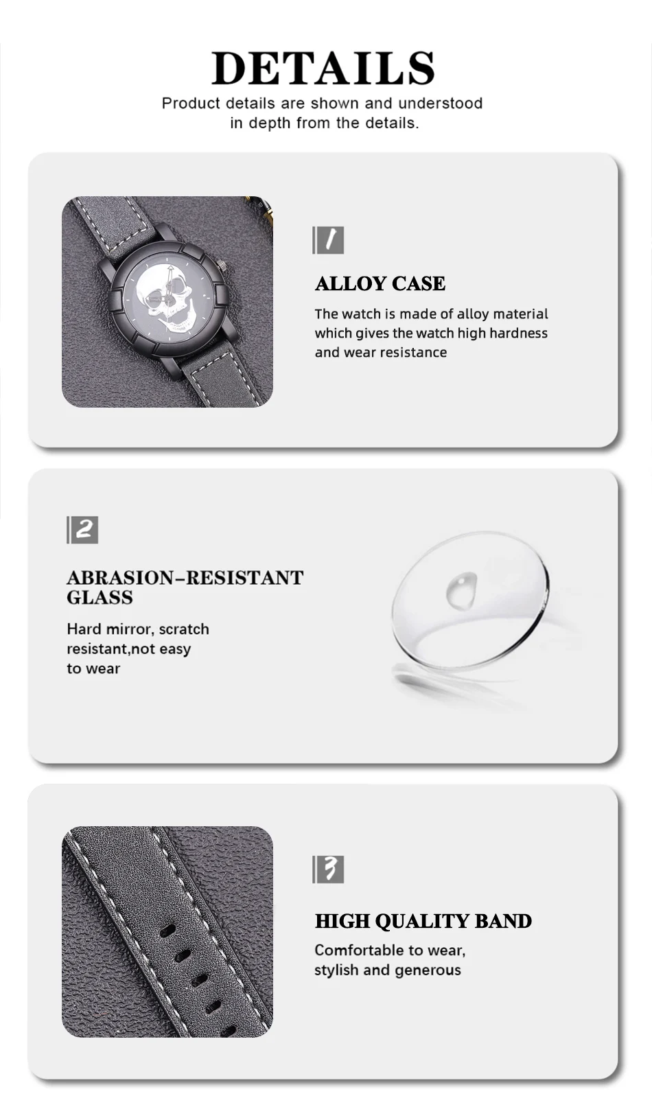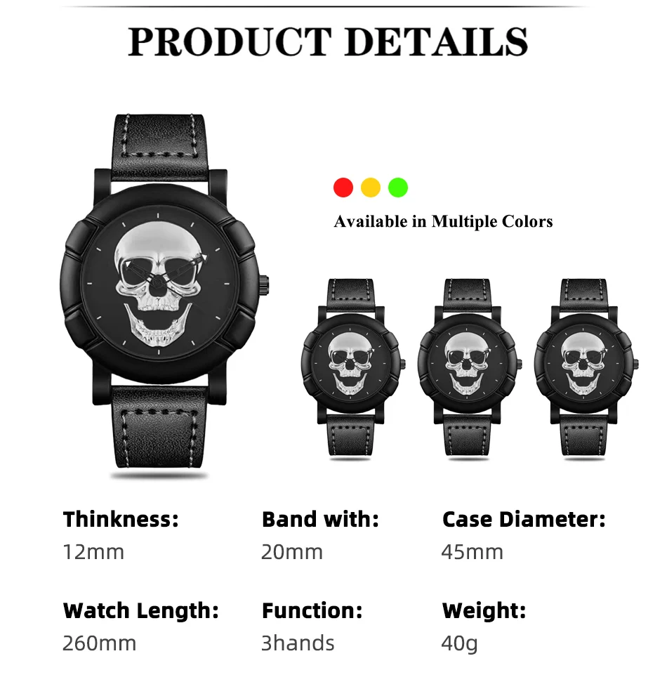 • Personalized 3D Skull Design :The watch features a unique and personalized 3D skull design that adds a touch of edginess to any outfit.