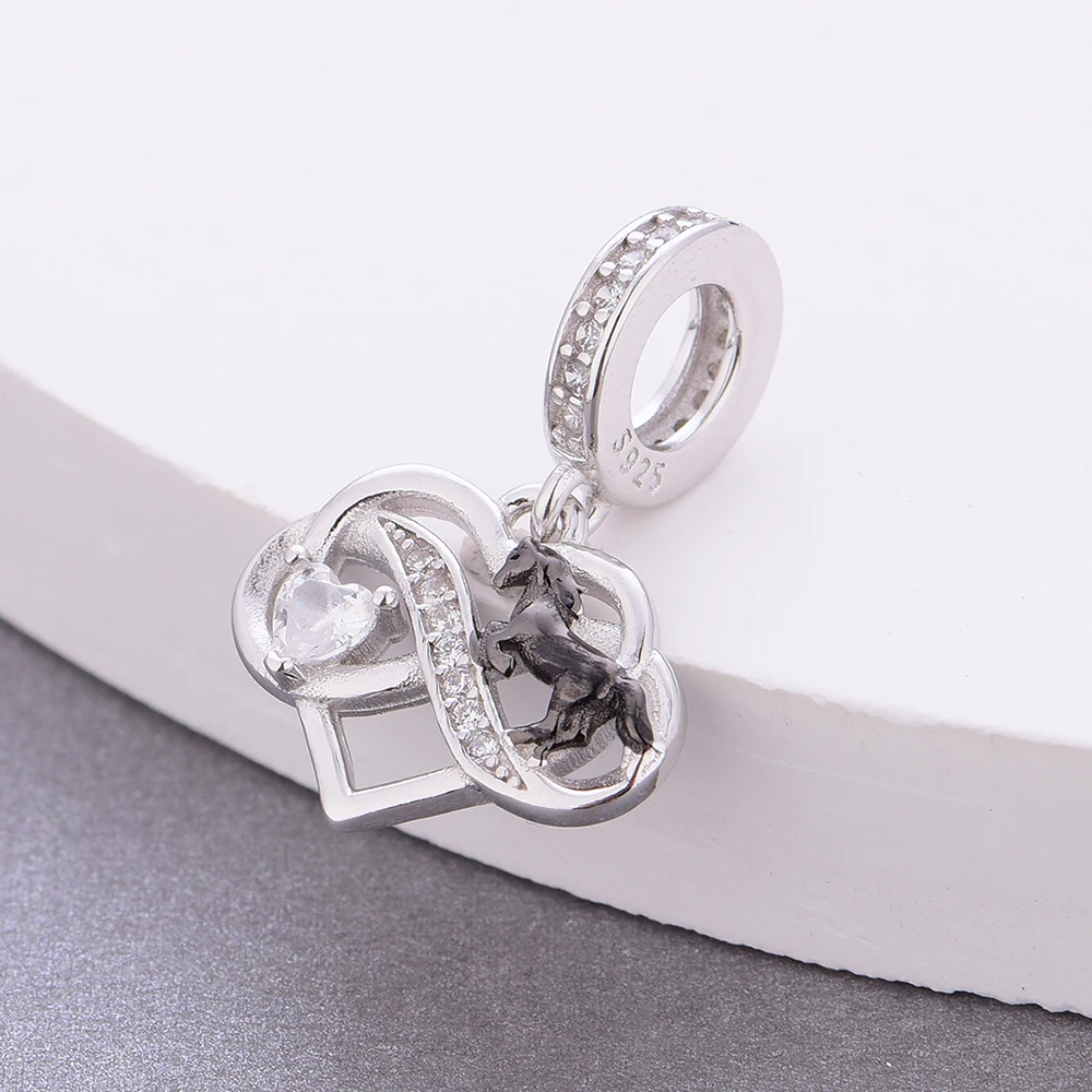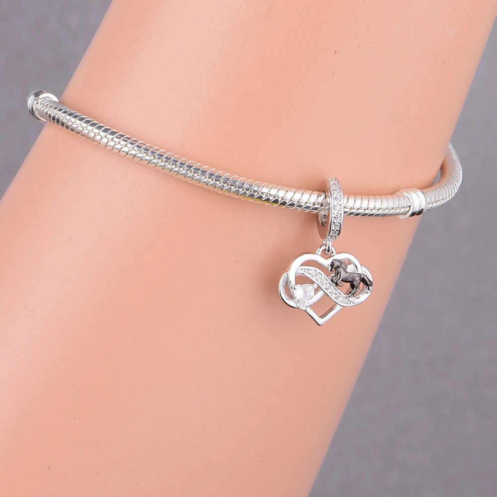 FC Jewelry Fit Original Charm Bracelet 925 Sterling Silver Infintiy Heart Black Horse Bead For Making Mother's Day Berloque DIY