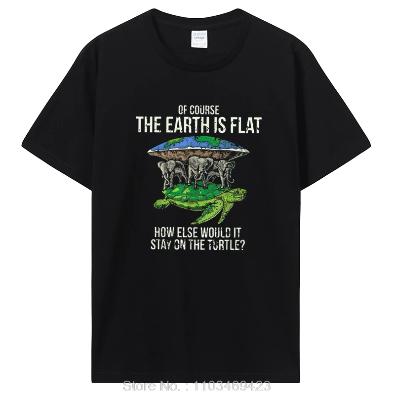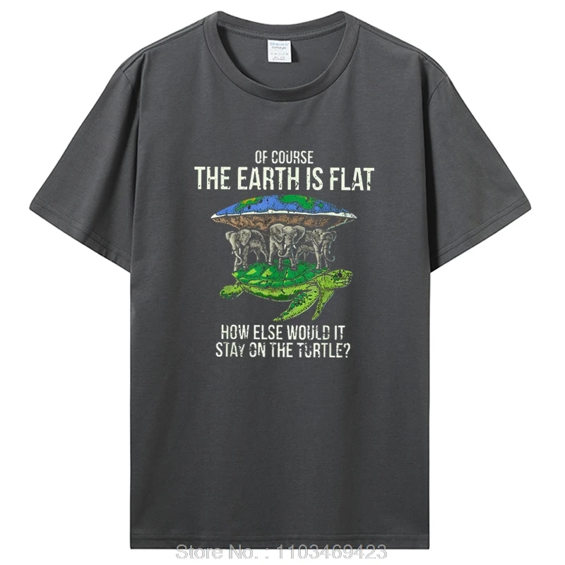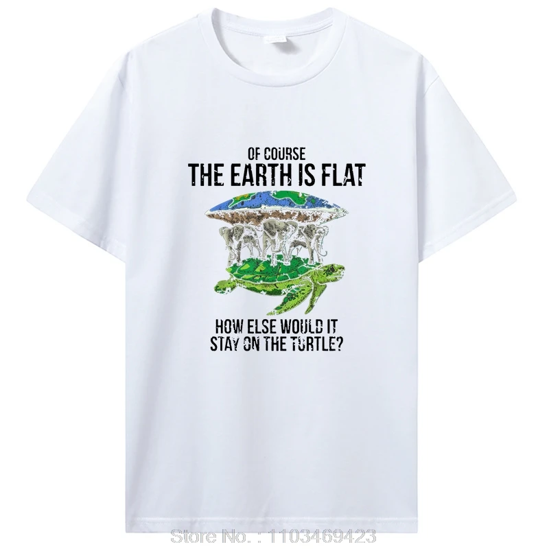 Funny Flat Earth Society T Shirt Turtle Elephants Graphic Cotton Tshirt Streetwear Harajuku Hip Hop T-shirt Men Clothing