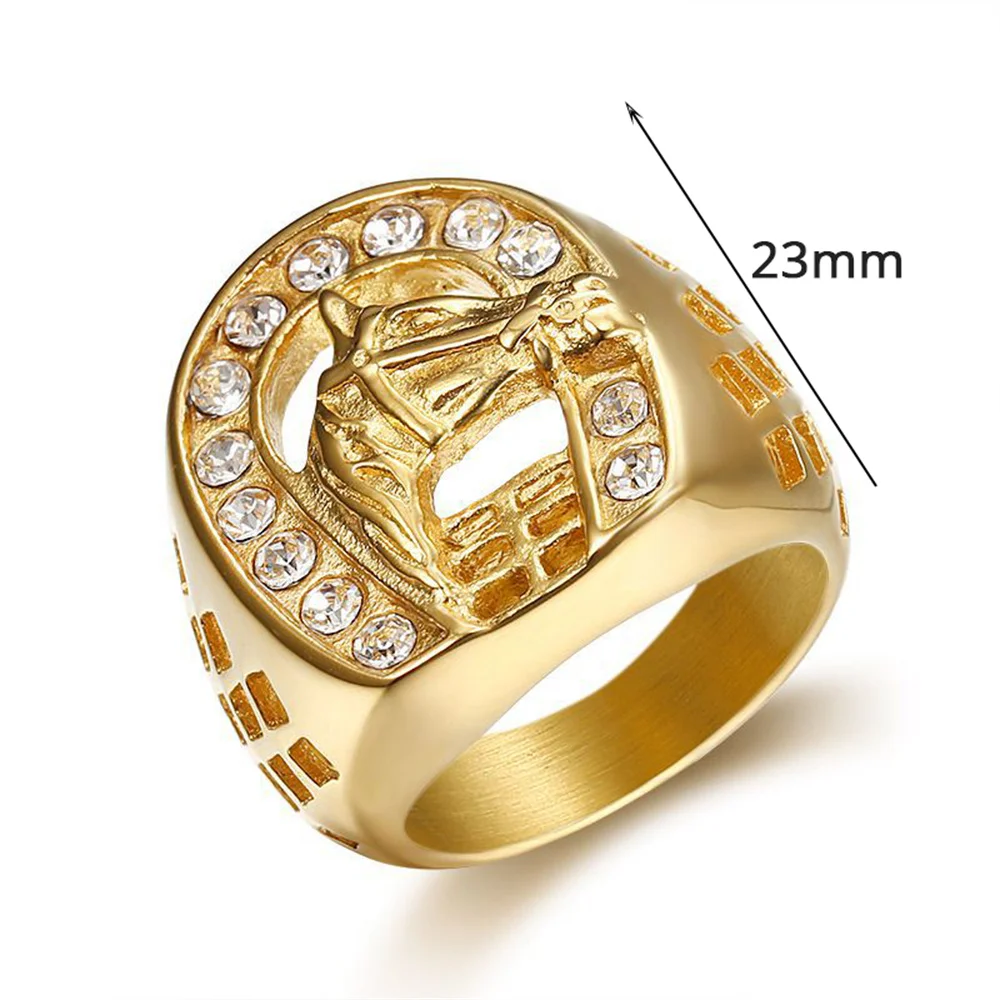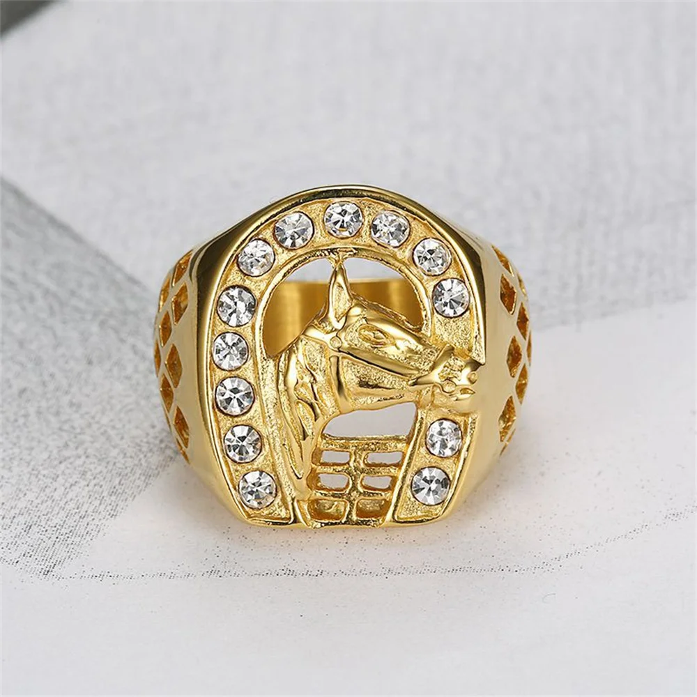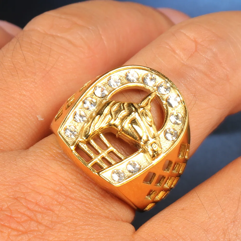 Hip Hop Iced Out Animal Horse Head Ring Male Gold Color Stinless Steel Horseshoe Rings For Men Fashion Party Jewelry Gift 2025