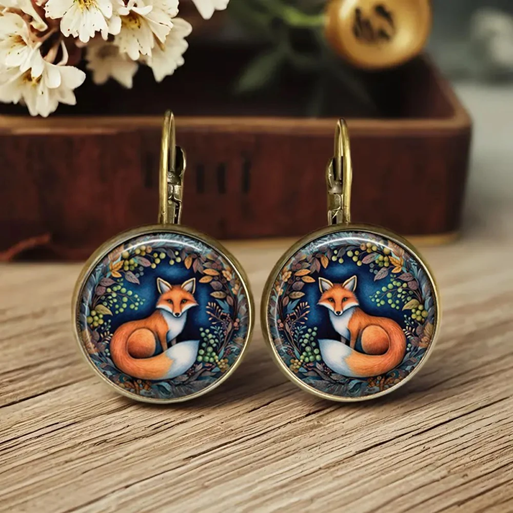 Hot Selling Pop Fox Cat Chicken Jewelry Dome Glass Alloy Earrings Cute Animal Pattern Exquisite Fashion Gift