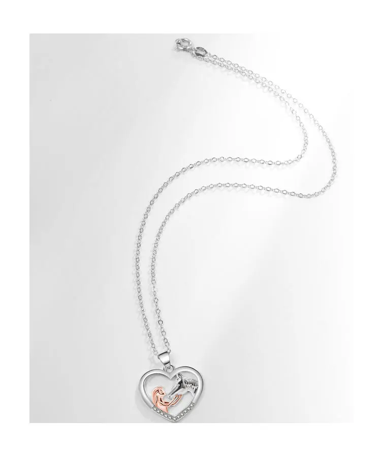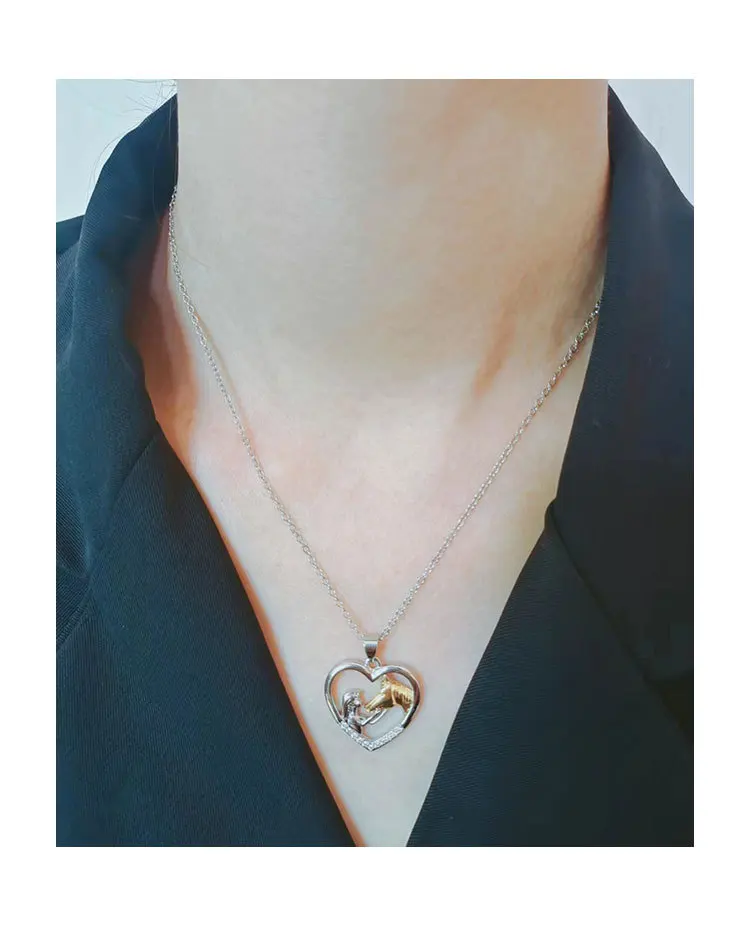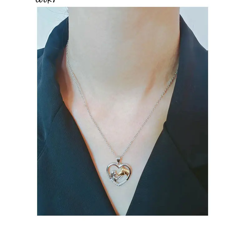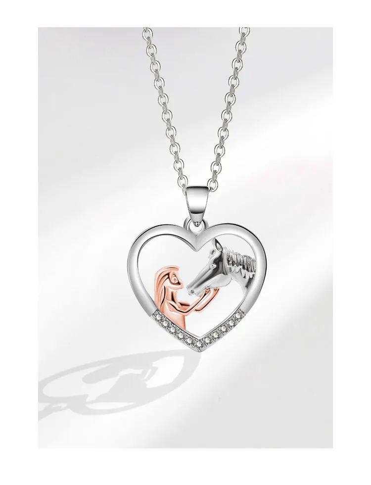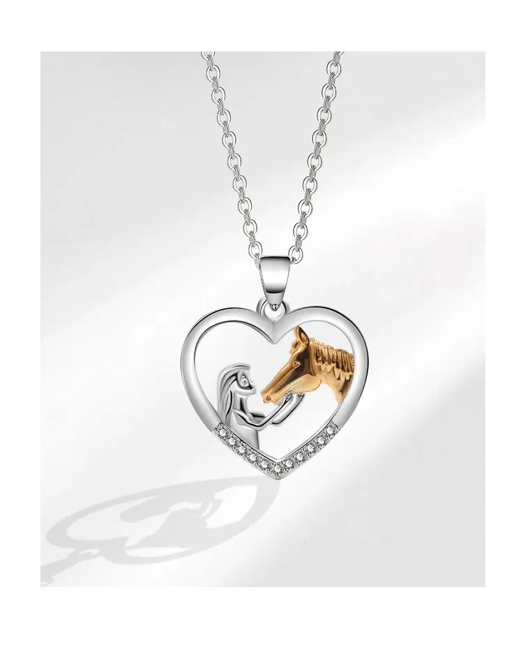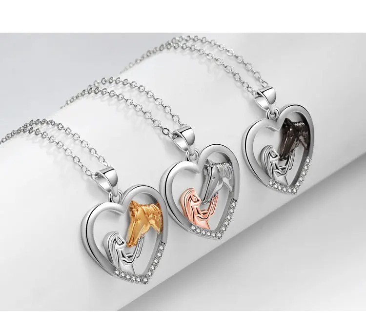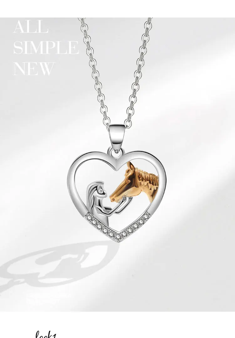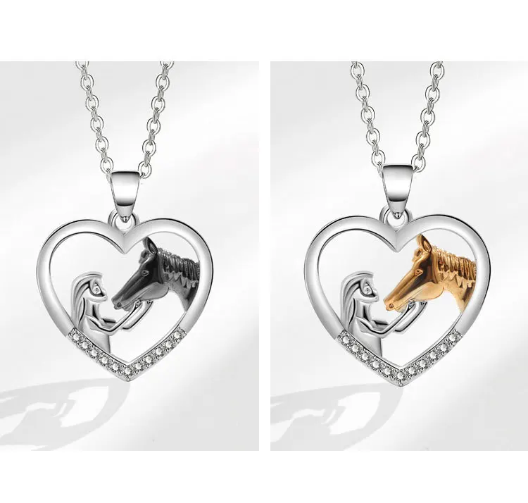 KOFSAC New Girl And Horse Two Color Necklace For Women Fashion 925 Silver Heart Jewelry Zircon Necklaces Lady Gift