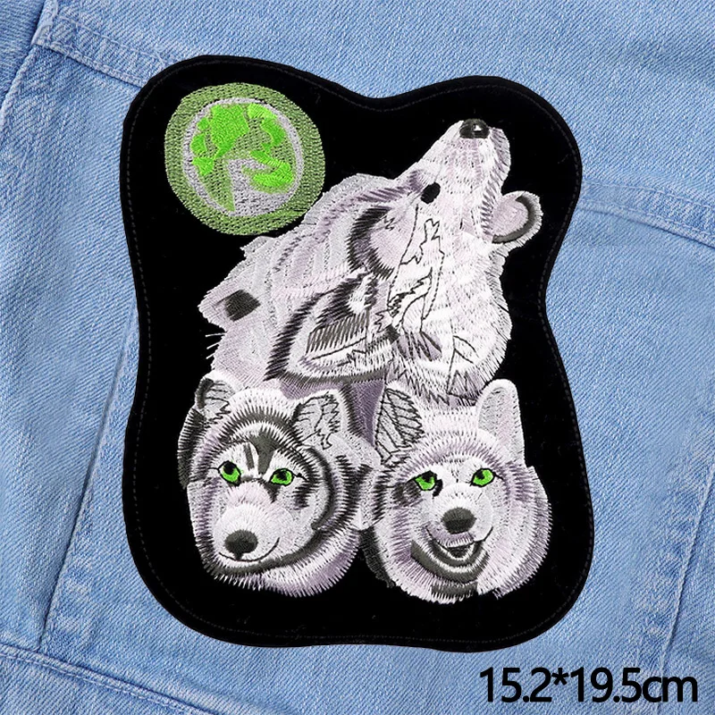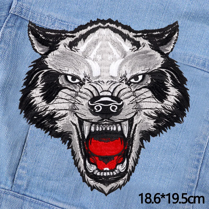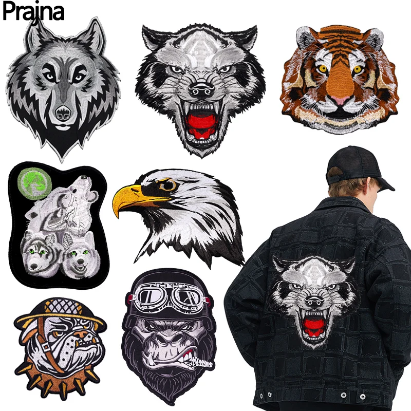 Large/Embroidery Patch Wolf Eagle Monkey Patch Iron On Patches For Clothing DIY Punk Back Patches On Clothes Jeans Sew Applique