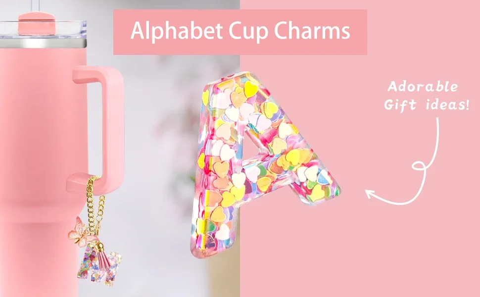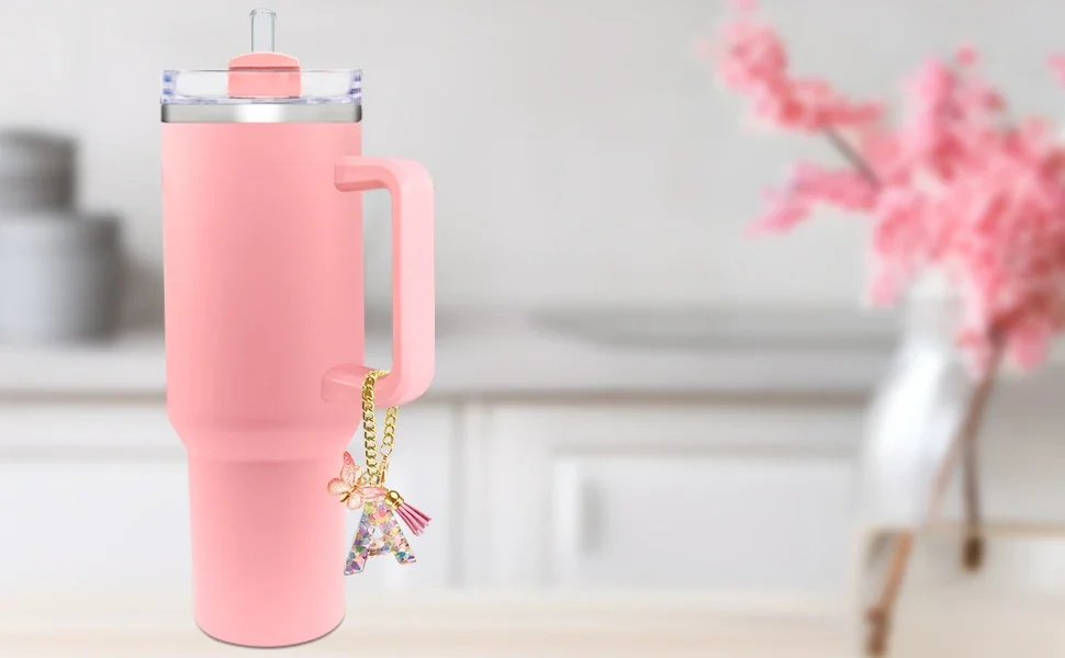 Letter Charm Accessories for Tumbler with Handle Cute Initial Letter A Keychain Handle Charm with Butterfly for Stanley Cup