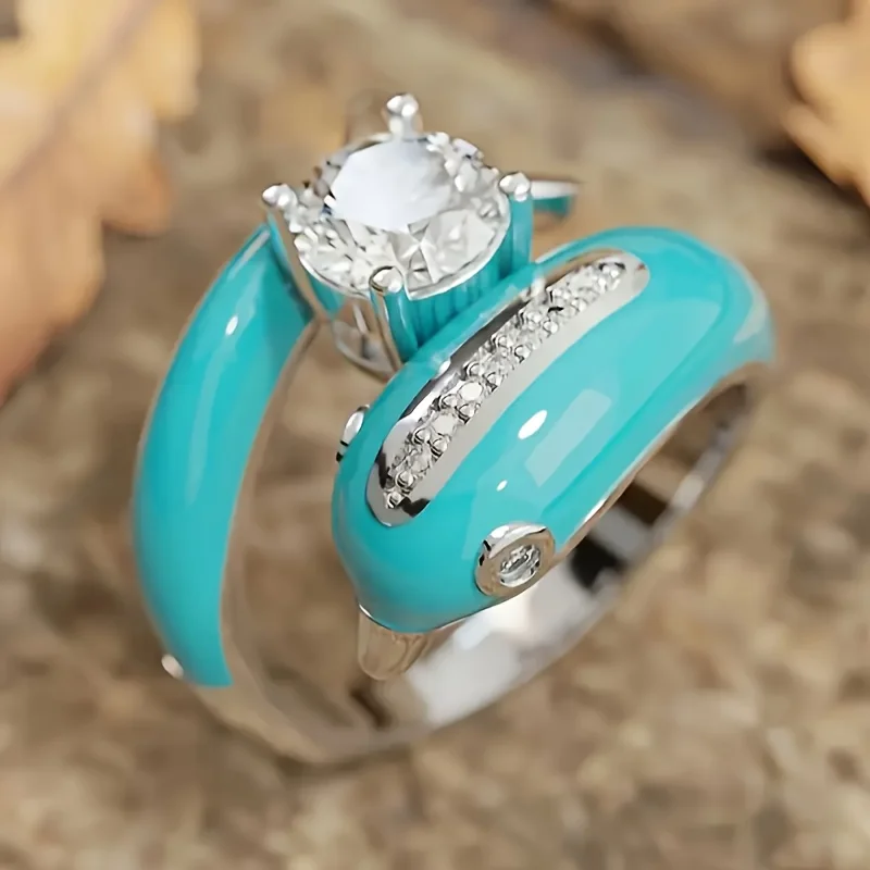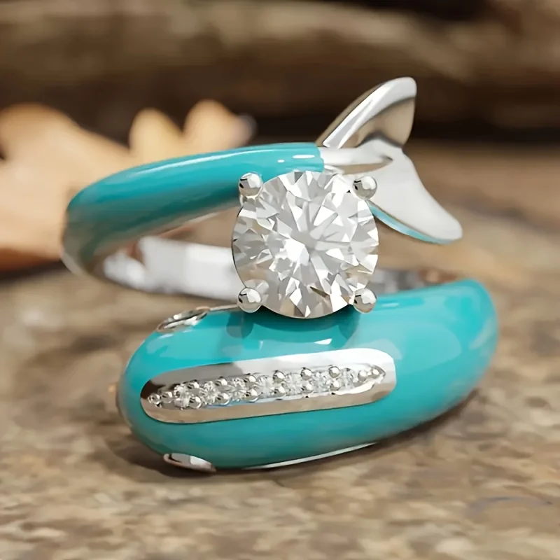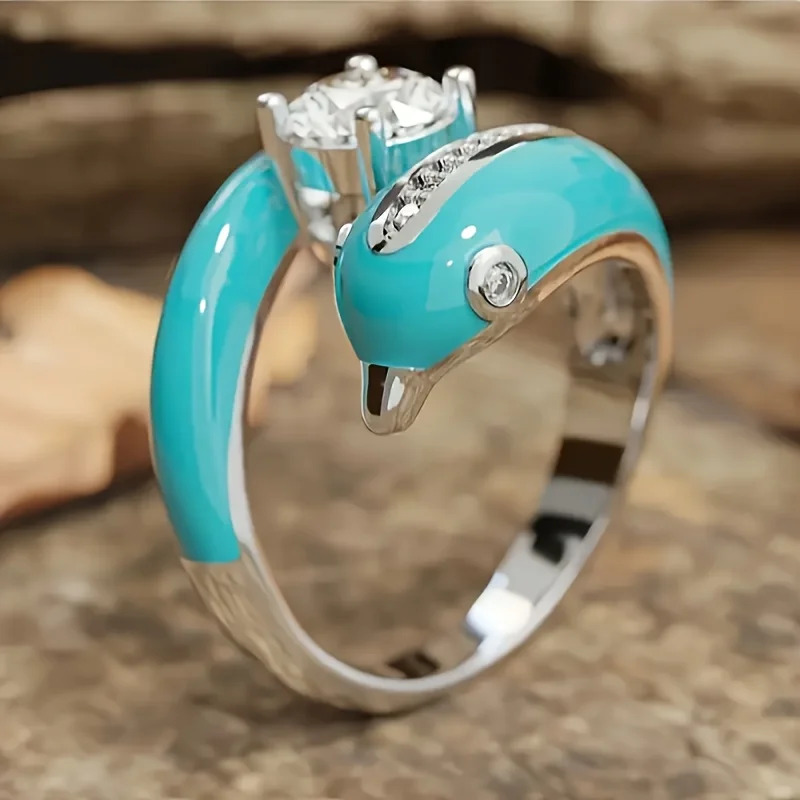 Luxurious Oil-drop Style Women's Cute Marine Animal Cubic Zirconia Dolphin Ring Ideal for Fashionable Female Jewelry Accessories