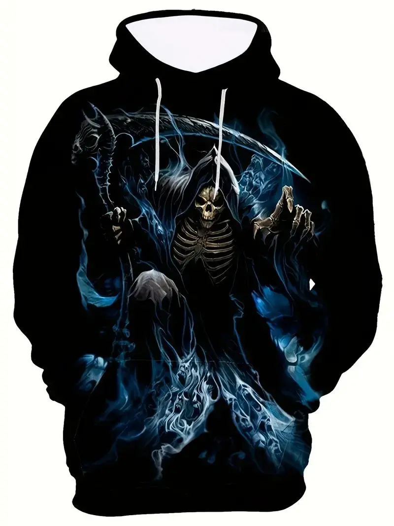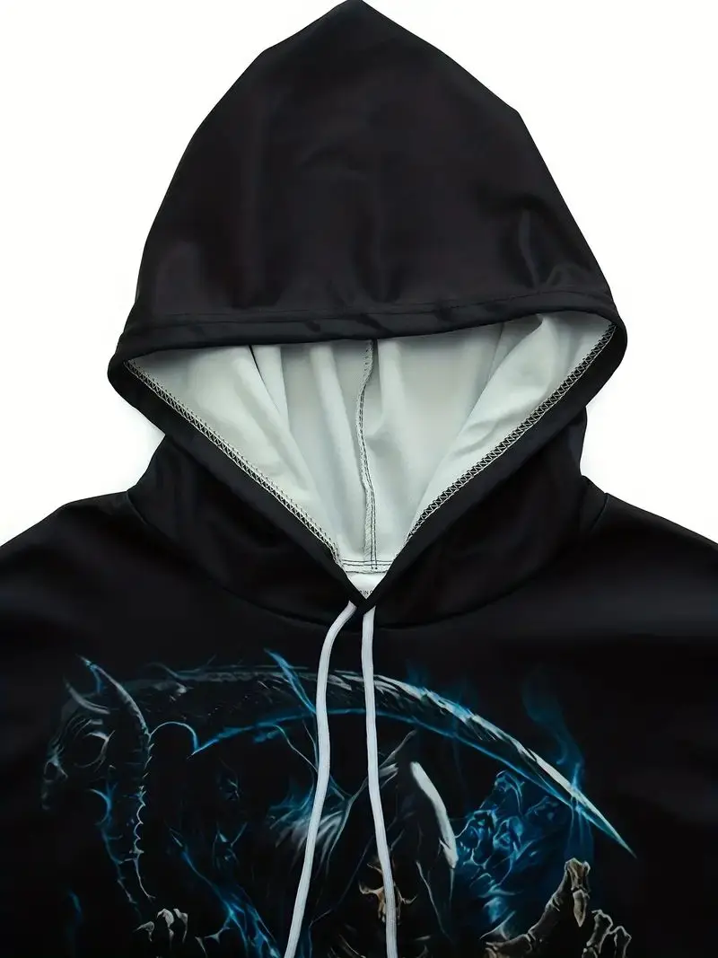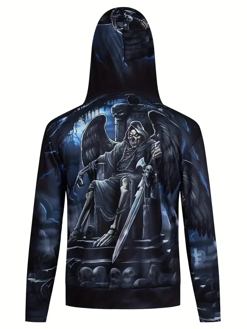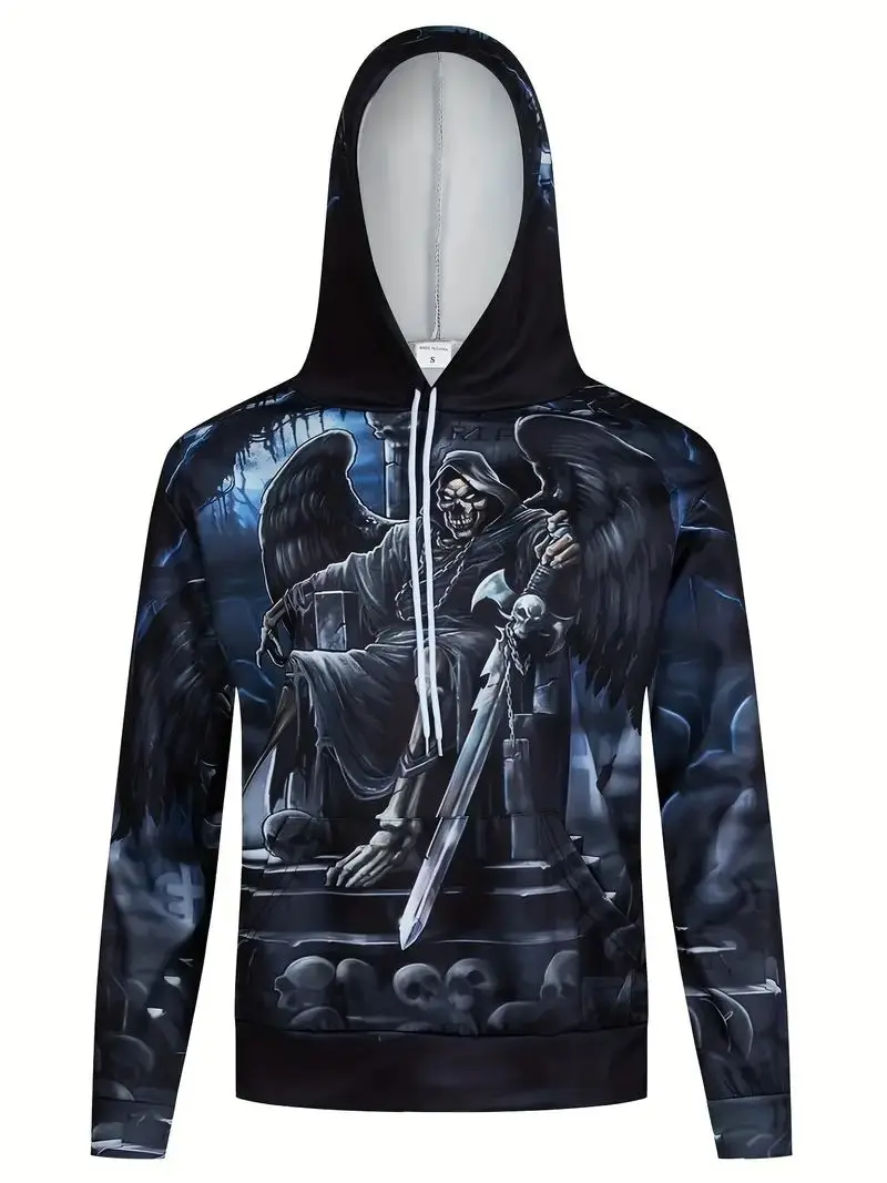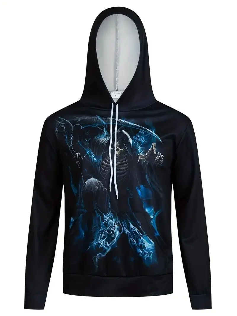 Men's Stylish Skull Graphic Hoodie, Active Slightly Stretch Breathable 3D Print Hooded Shirt, Clothing For Outdoor,Autumn