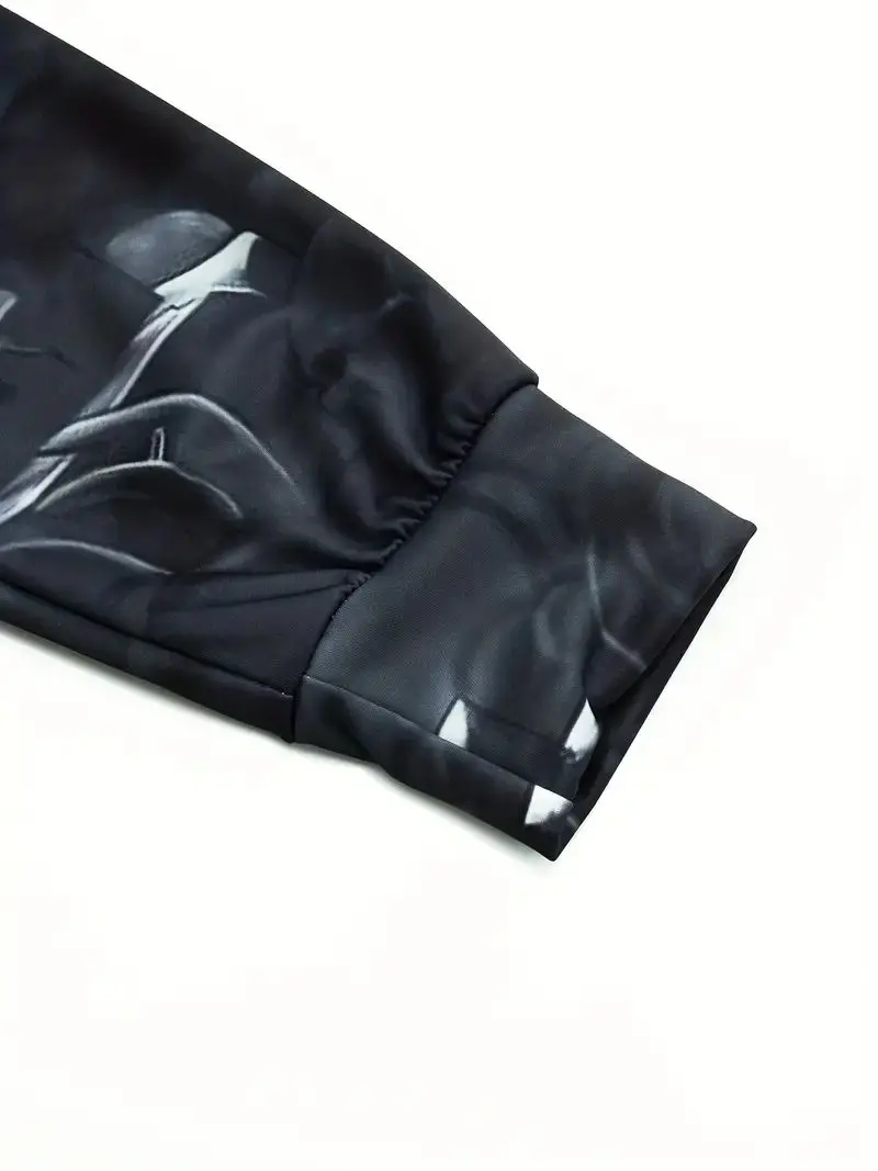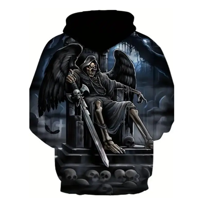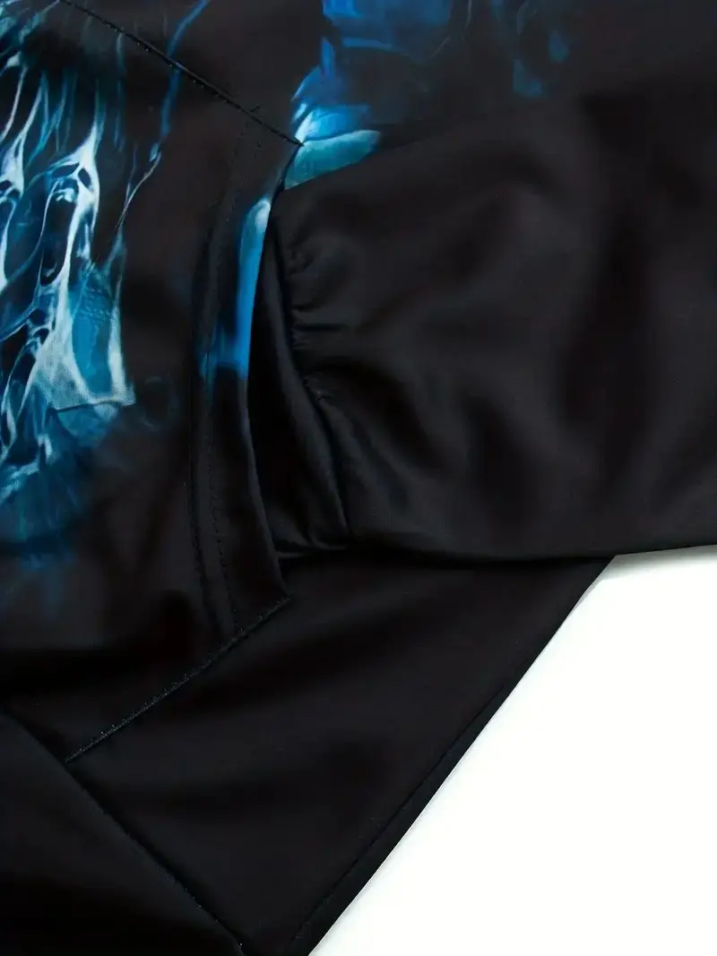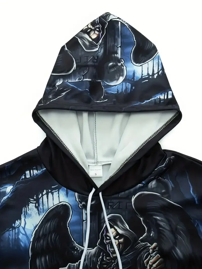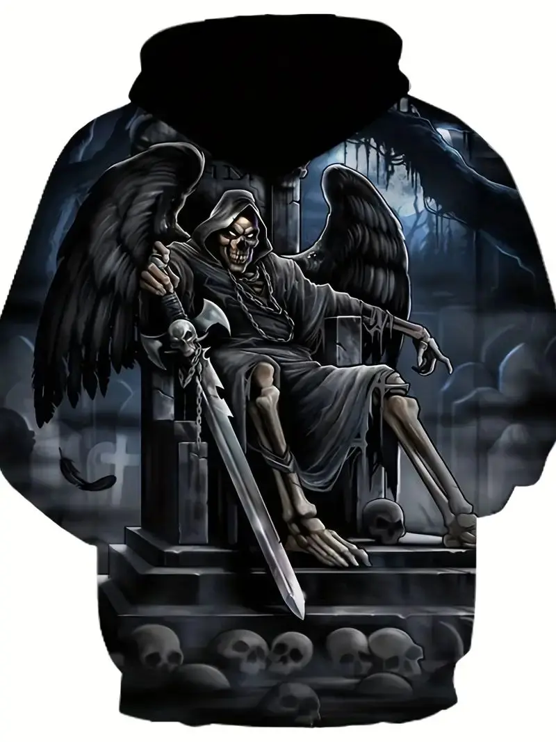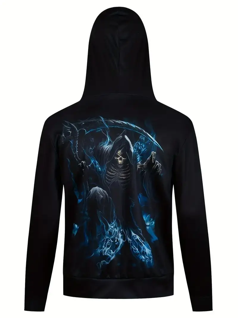 Men's Stylish Skull Graphic Hoodie, Active Slightly Stretch Breathable 3D Print Hooded Shirt, Clothing For Outdoor,Autumn