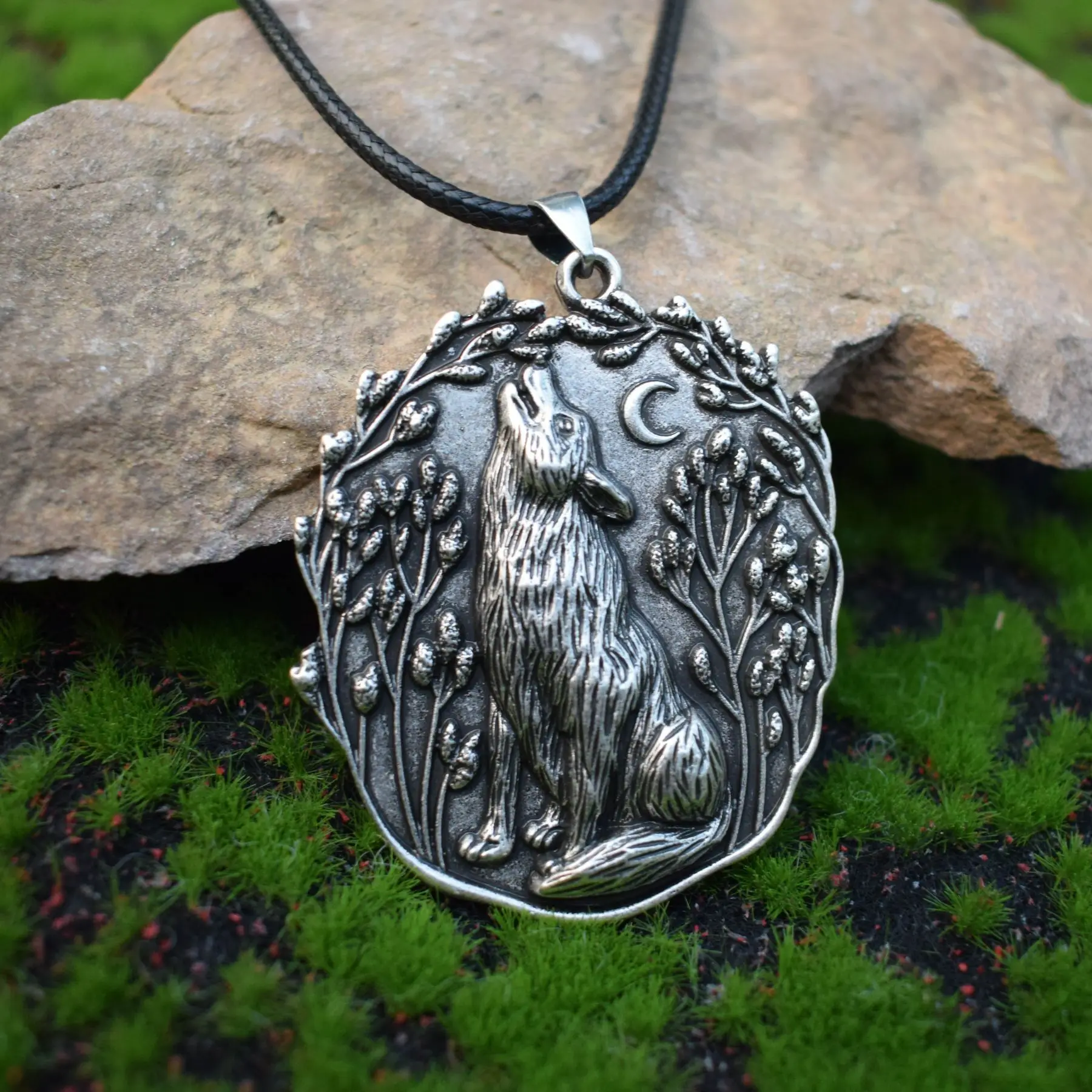 Moon Wolf Pendant Necklace Animal Personality Jewelry Gift for Men women
