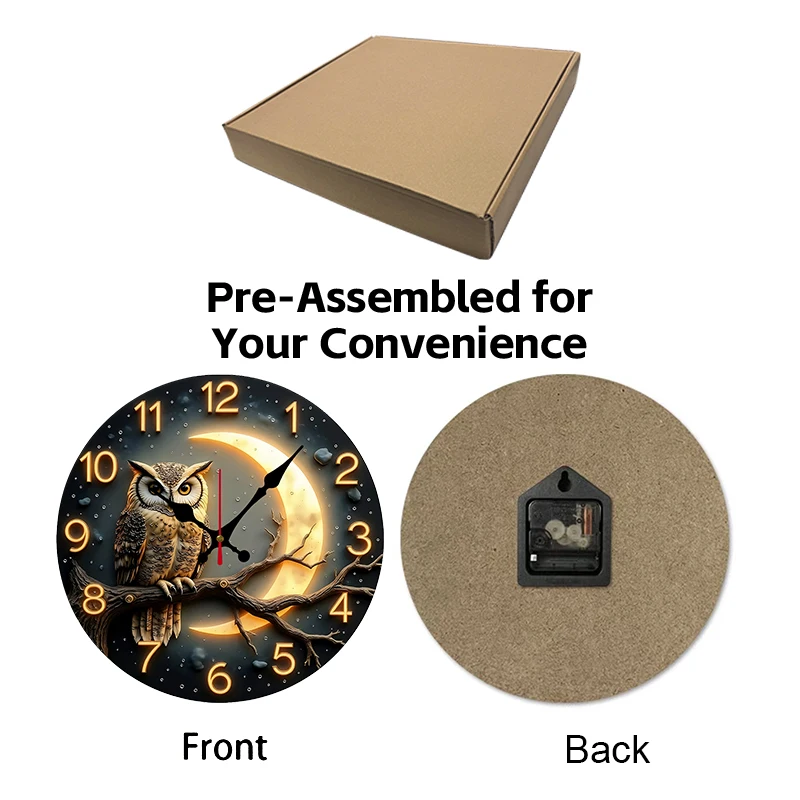 Moonlight Night Wooden Round Silent Hanging Wall Clock, Suitable For Living Room, Office, Study Room, Bedroom, Home Decoration