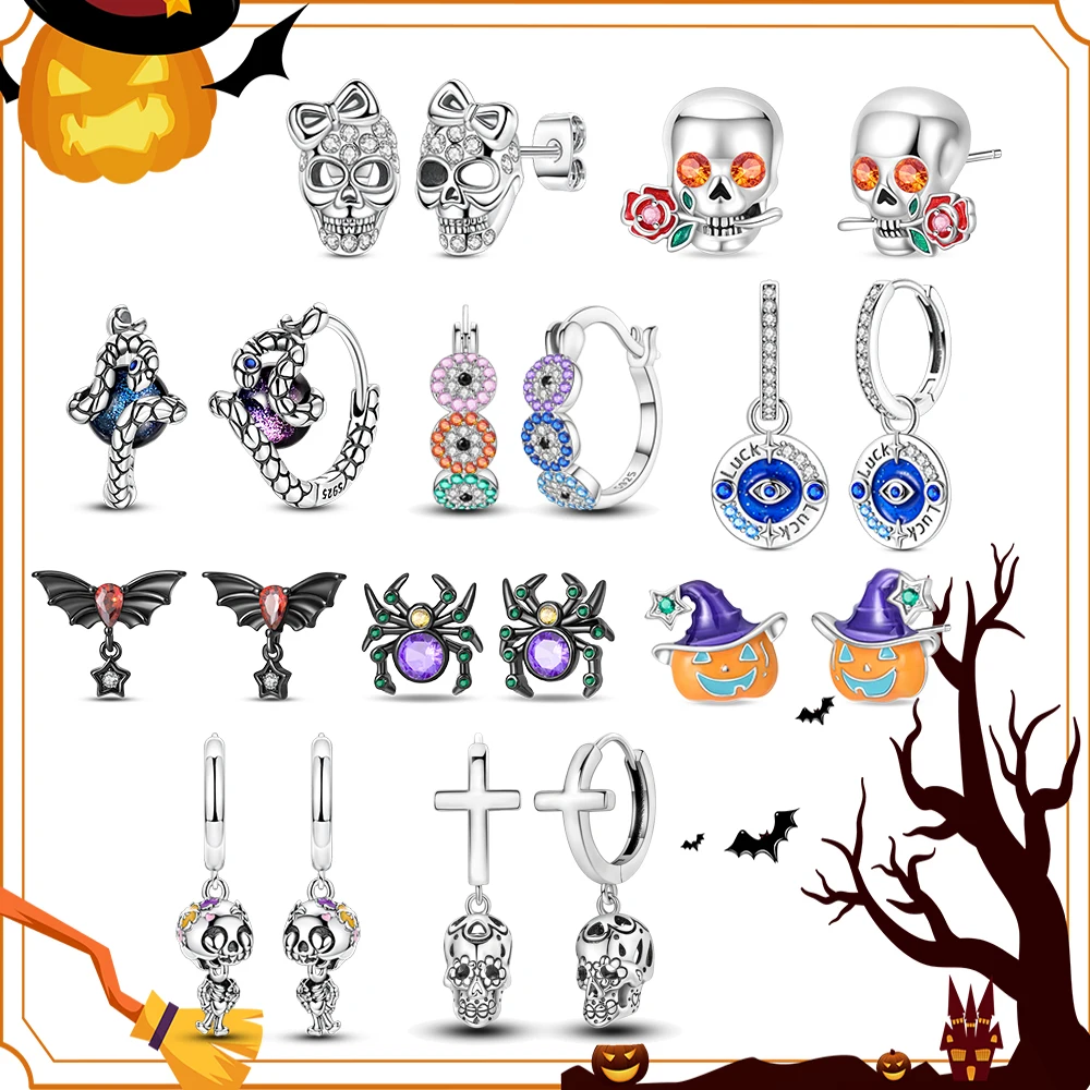 Mysterious925 Sterling Silver Pumpkin Skull Ghost Spider Bat Cross Earrings Halloween Accessories Gifts Souvenir