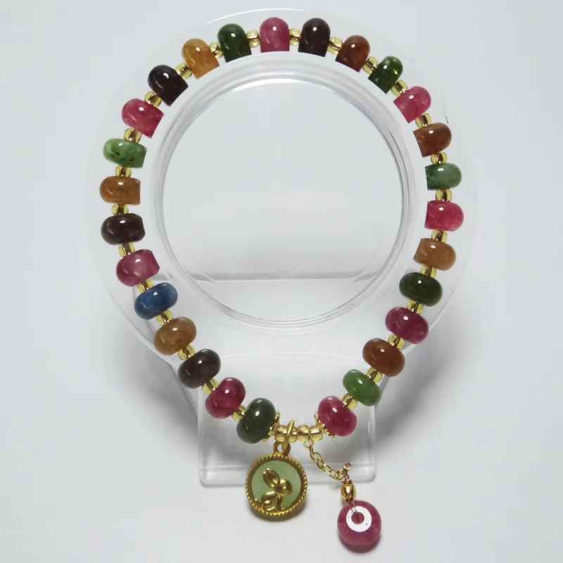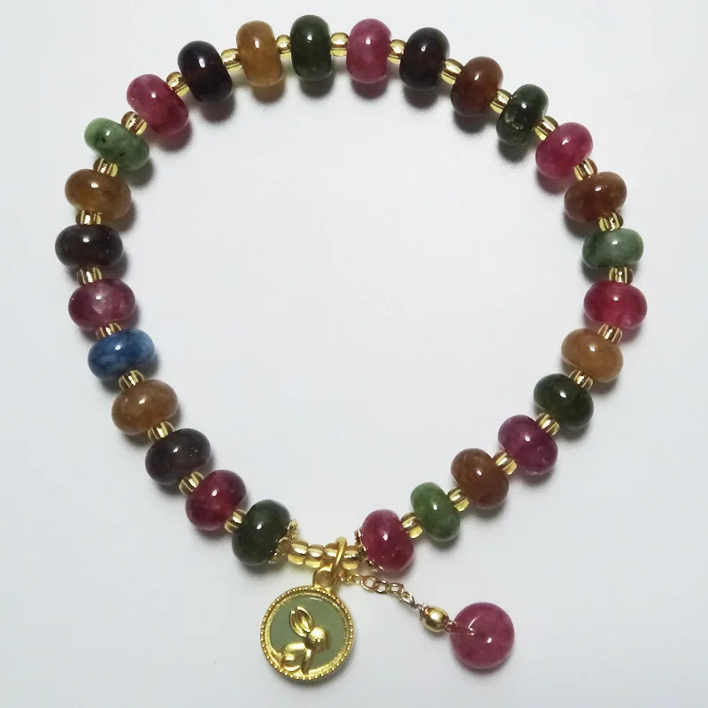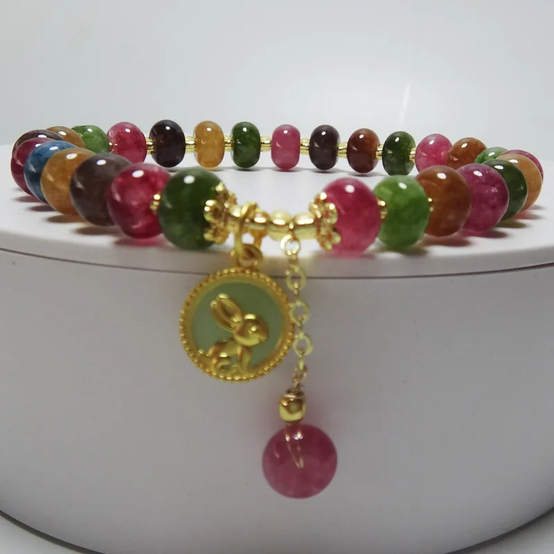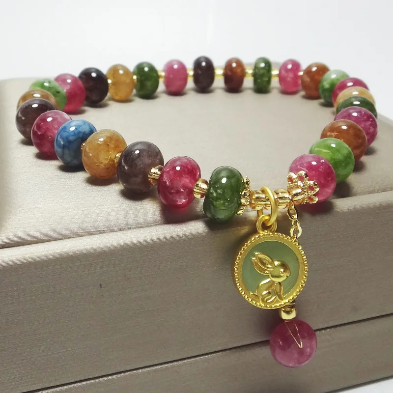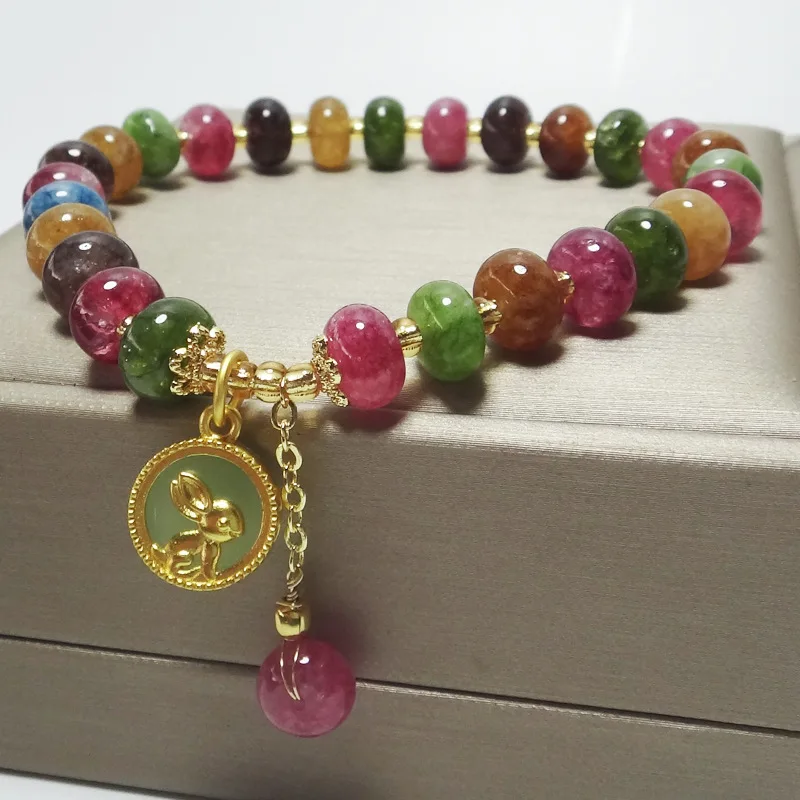 Natural Colored Tourmaline Bracelet Women's Retro Luxury Rabbit Pendant Bead Striand Bracelets Best Friend Party Jewelry Gift