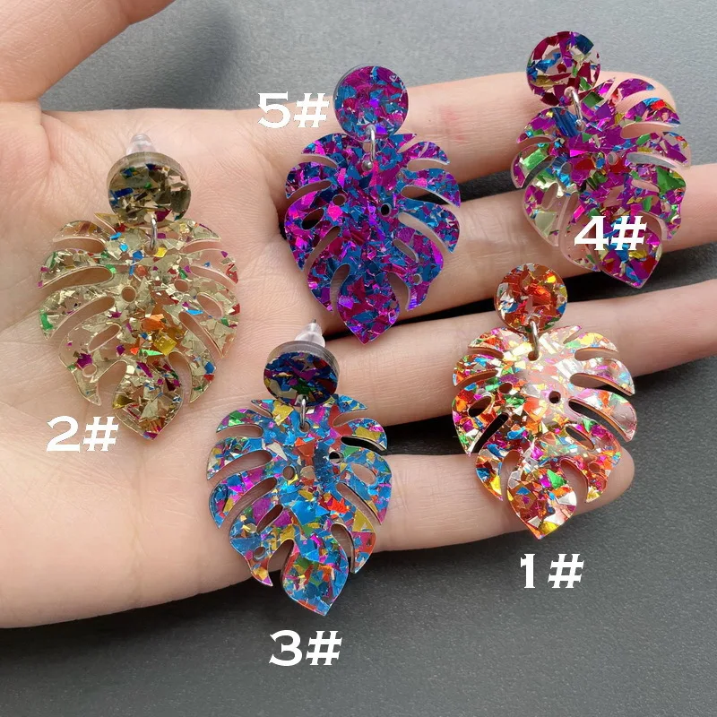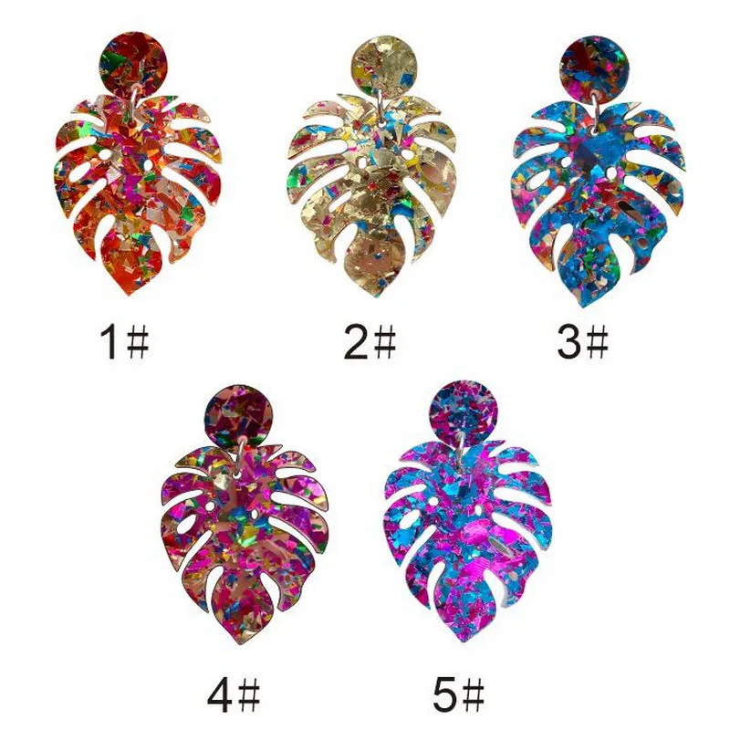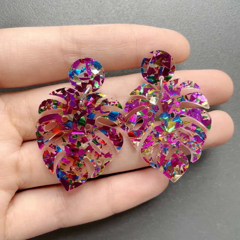 Name:New Arrival 2022 Colorful Sequins Leaves Acrylic Earrings For Women Hollow Turtle Leaf Drop Earrings Statement Jewelry