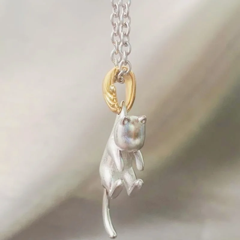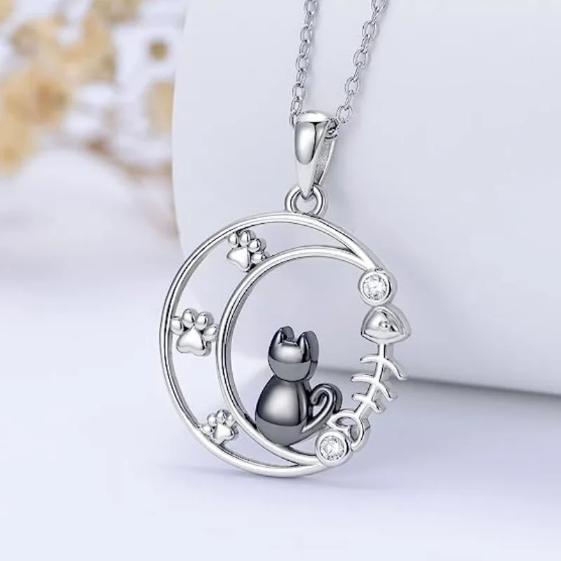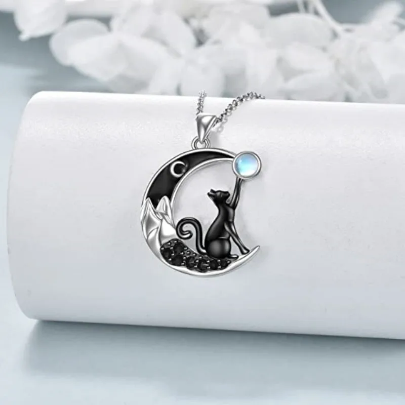 New Funny Black Cat Moon Pendant Necklace For Women Cute Kitten Moonstone Zircon Choker Couple Friendship Party Charm Jewelry