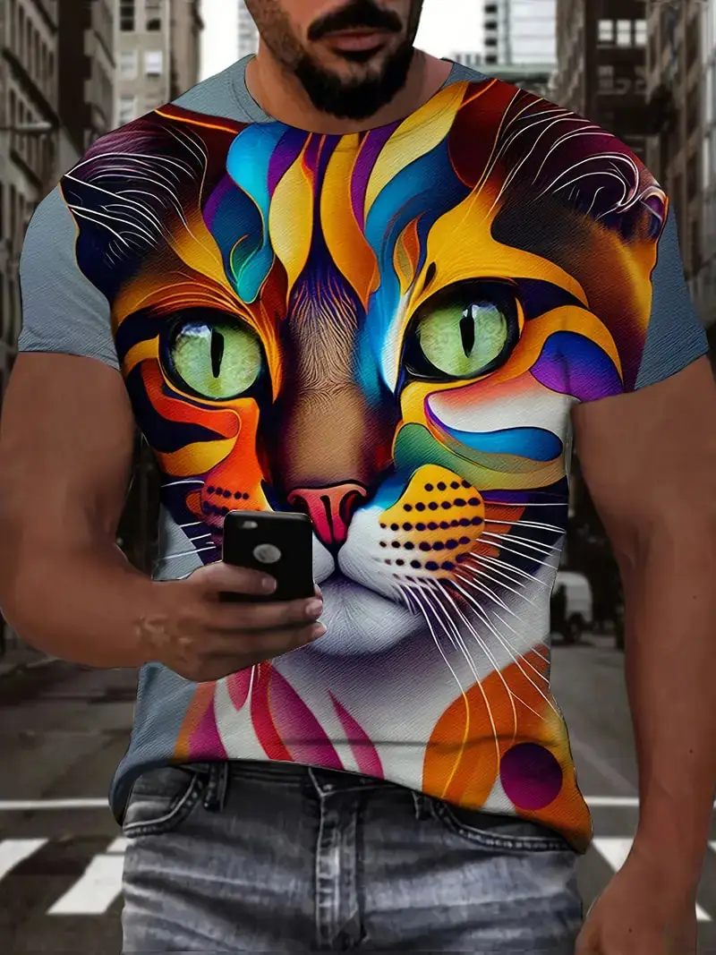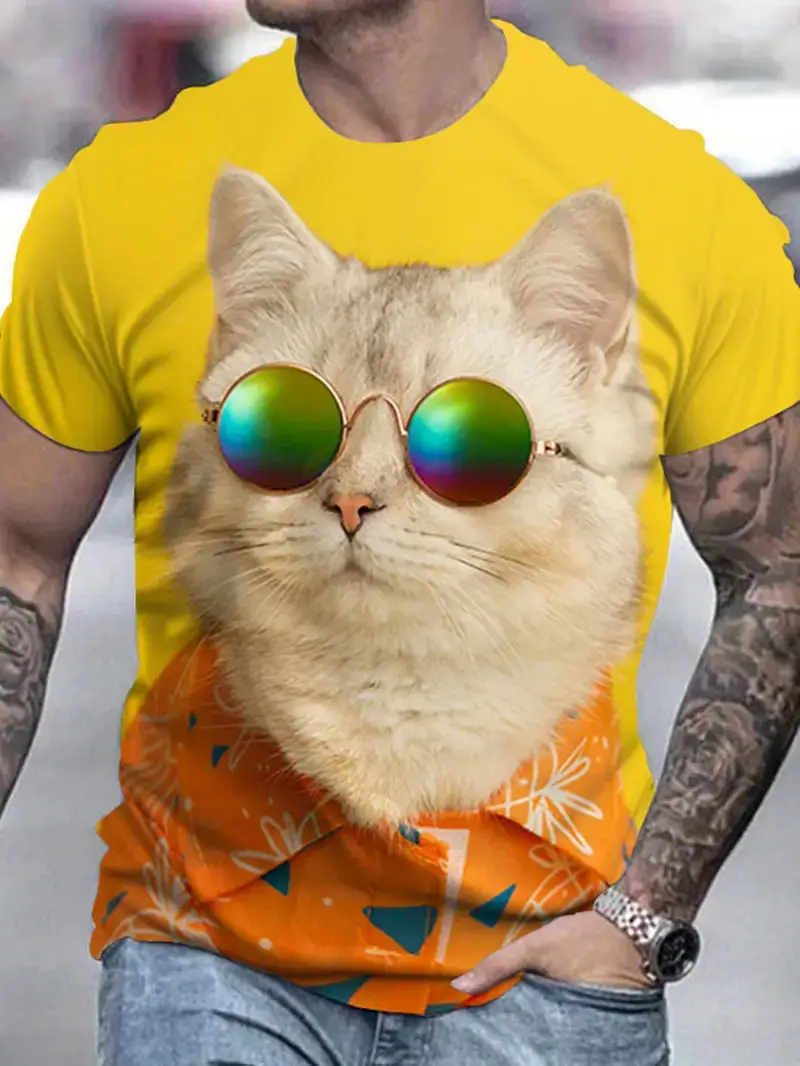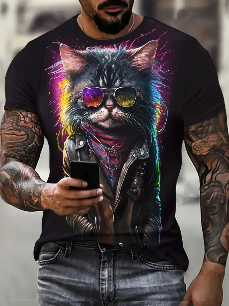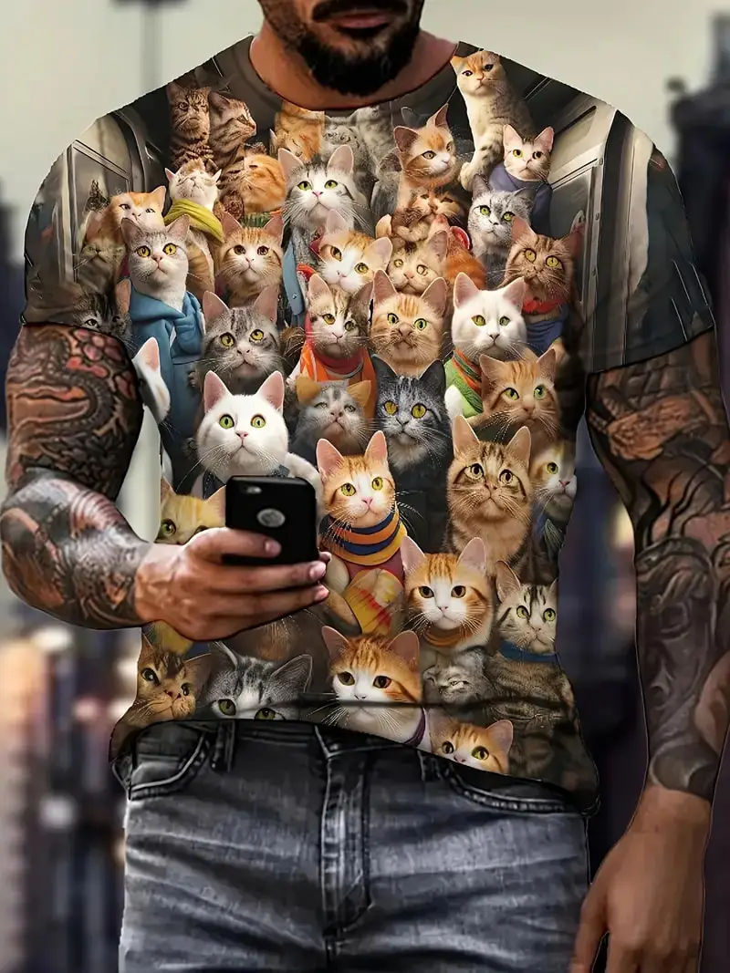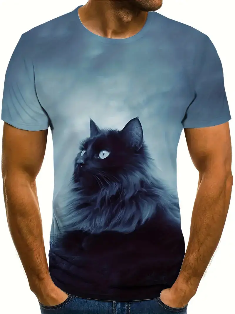 New Men's Novelty 3D Cat Full Print T shirt Casual Fashion Funny Short Sleeve T-shirt Unisex Top Summer Oversized Streetwear Tee