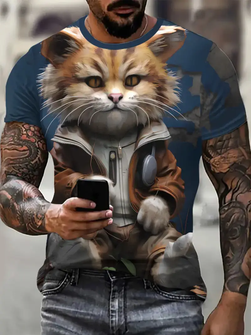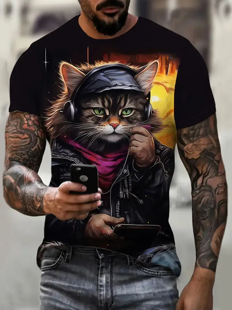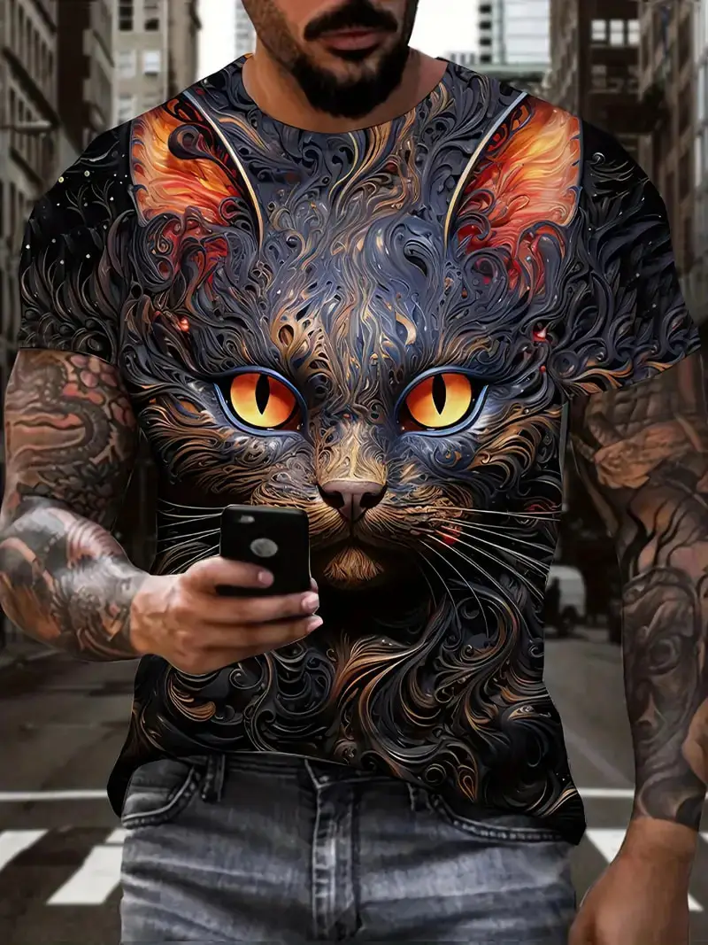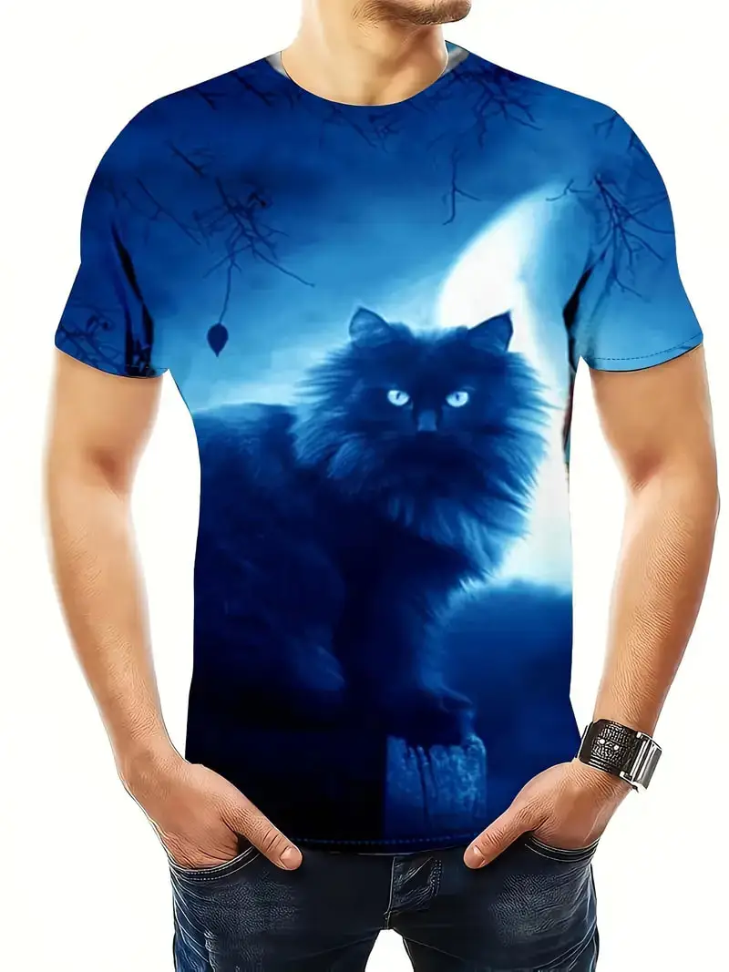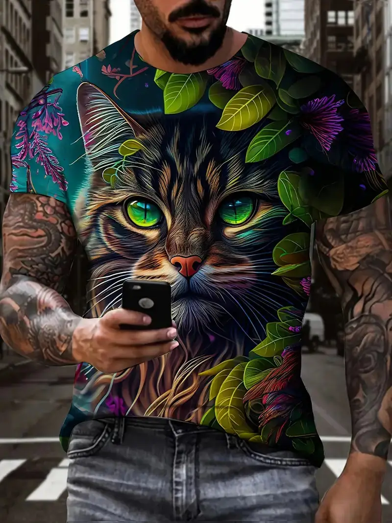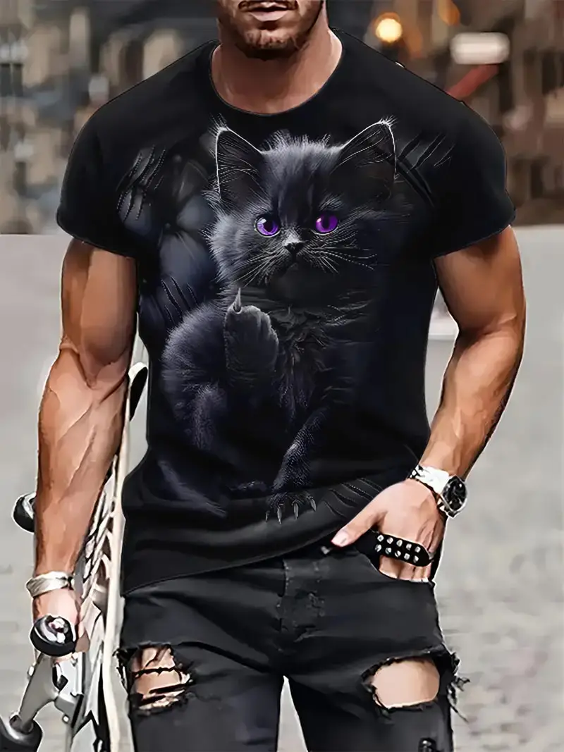 New Men's Novelty 3D Cat Full Print T shirt Casual Fashion Funny Short Sleeve T-shirt Unisex Top Summer Oversized Streetwear Tee