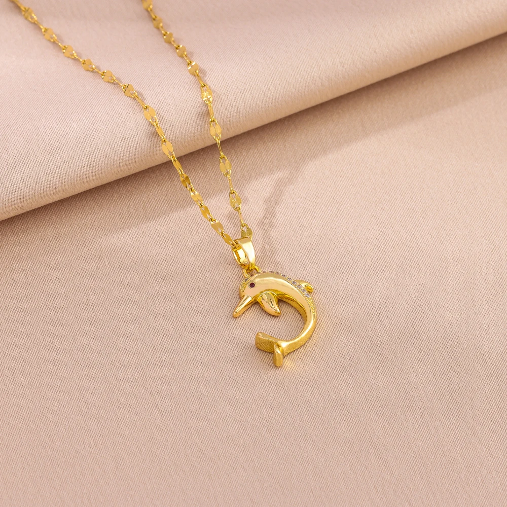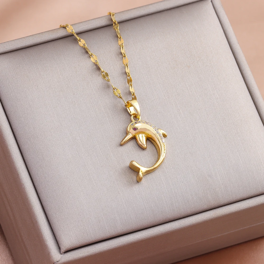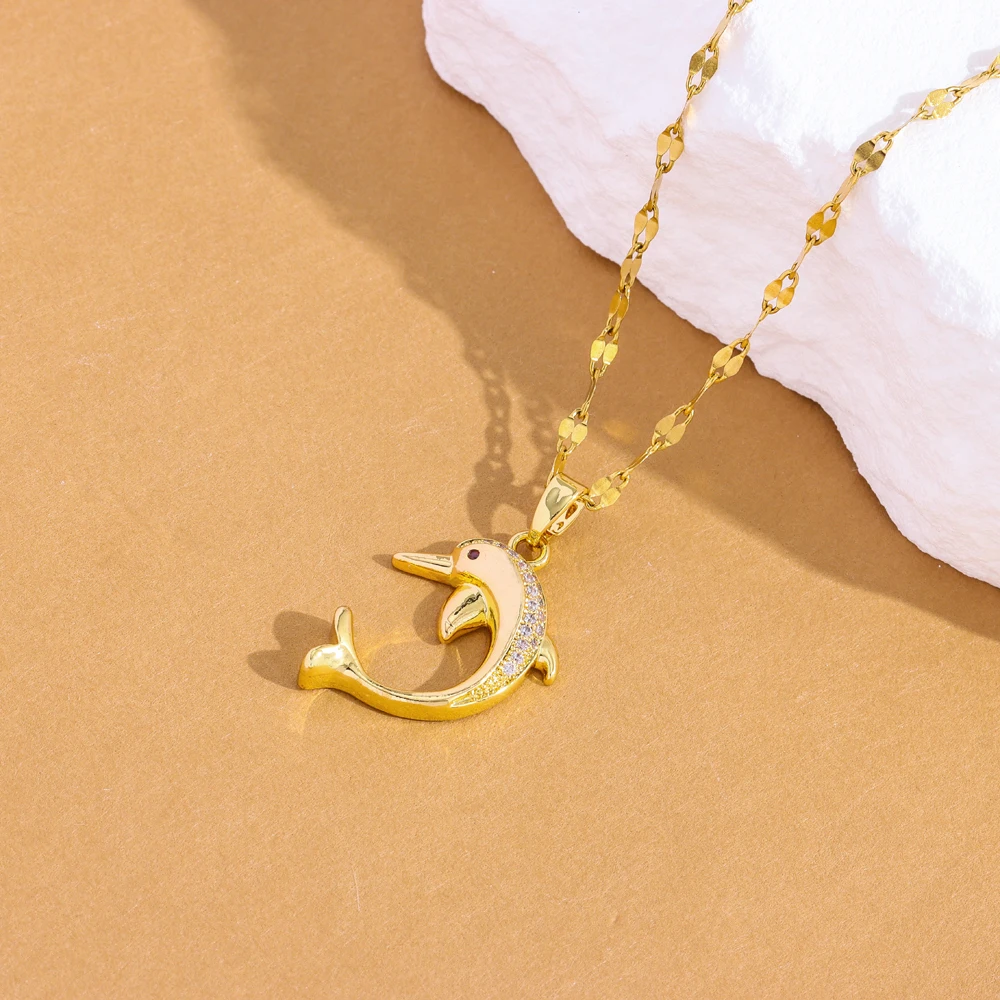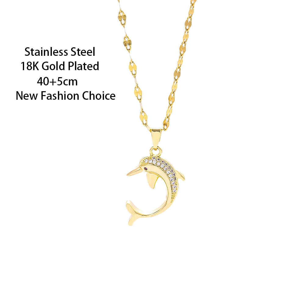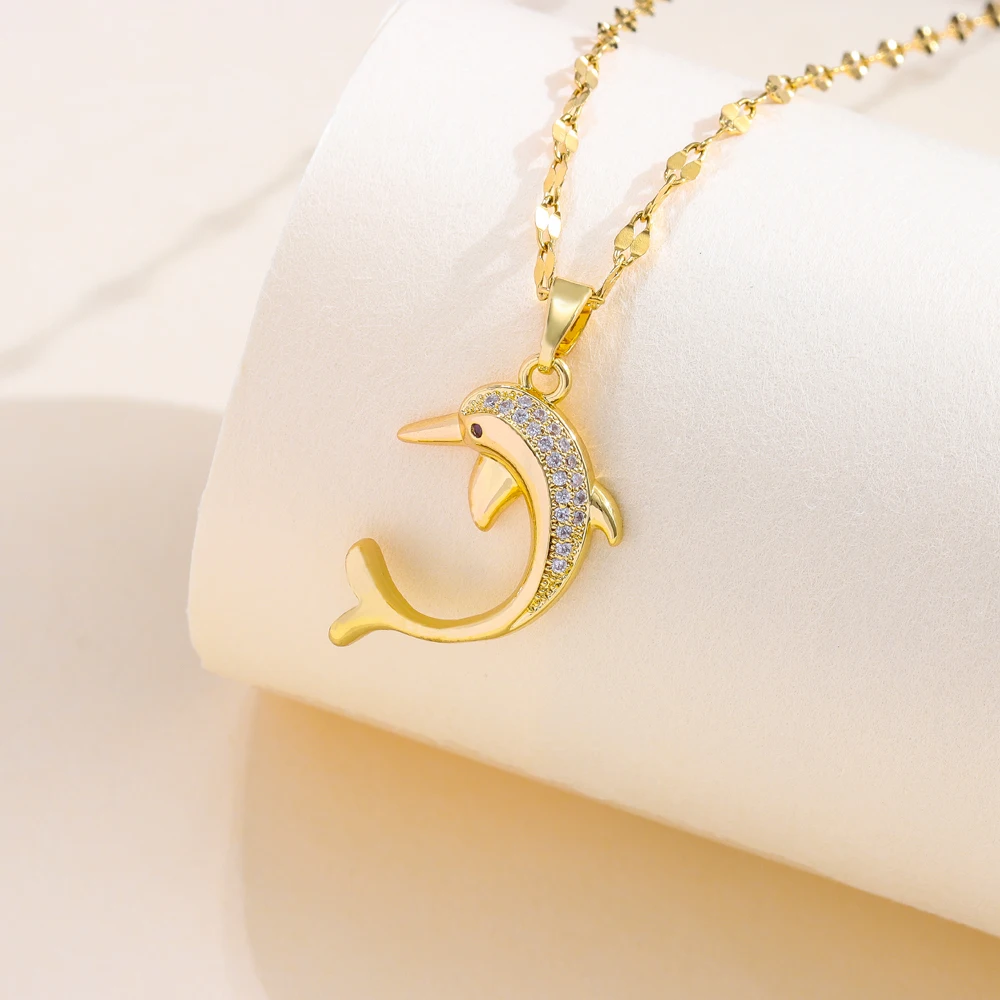New Micro Inlay Zircon Cute Dolphin Necklaces For Women Fashion Trend Female Stainless Steel Clavicle Chain Jewelry Wholesale
