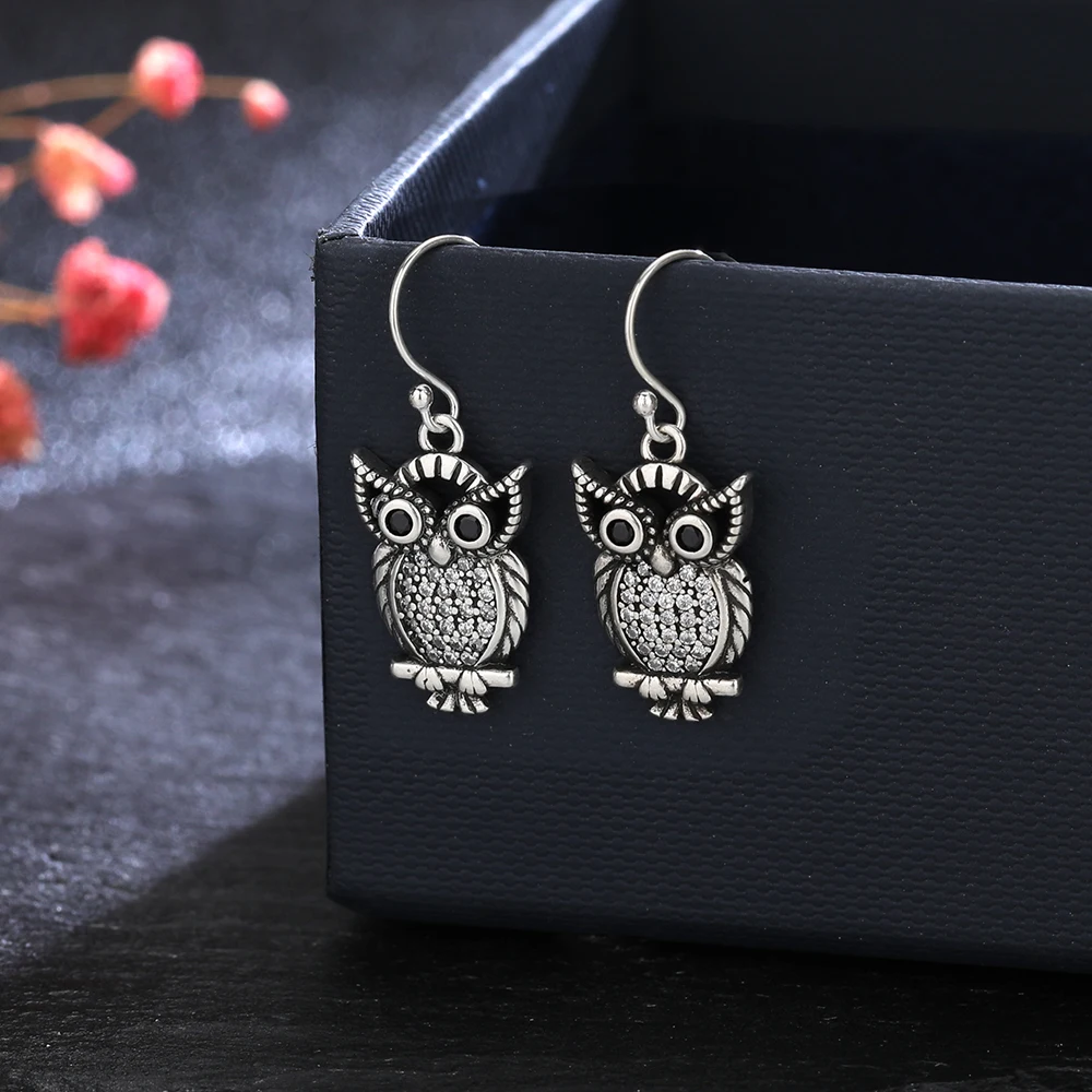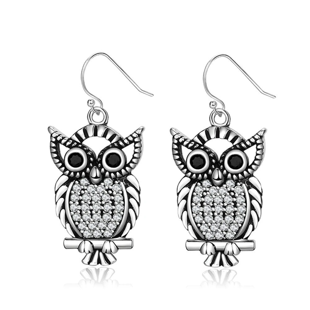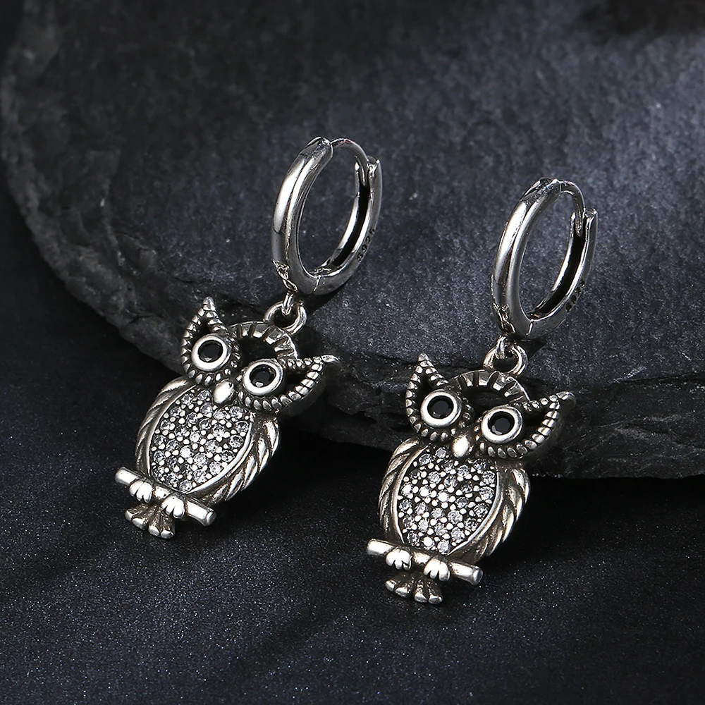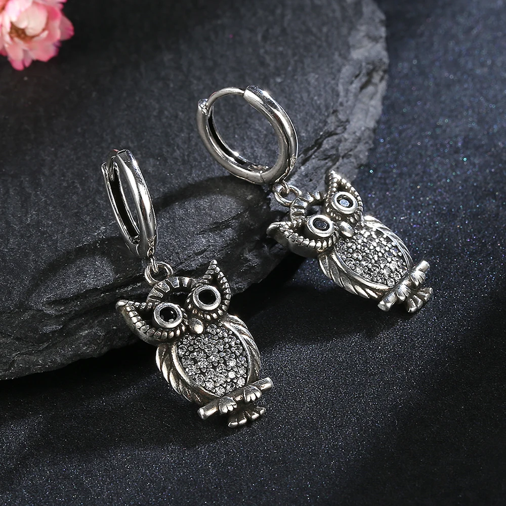 New Vintage Cute Owl Drop Earrings for Women Classic Style Silver Hanging Earring Halloween Party Fashion Fine Jewelry Gift