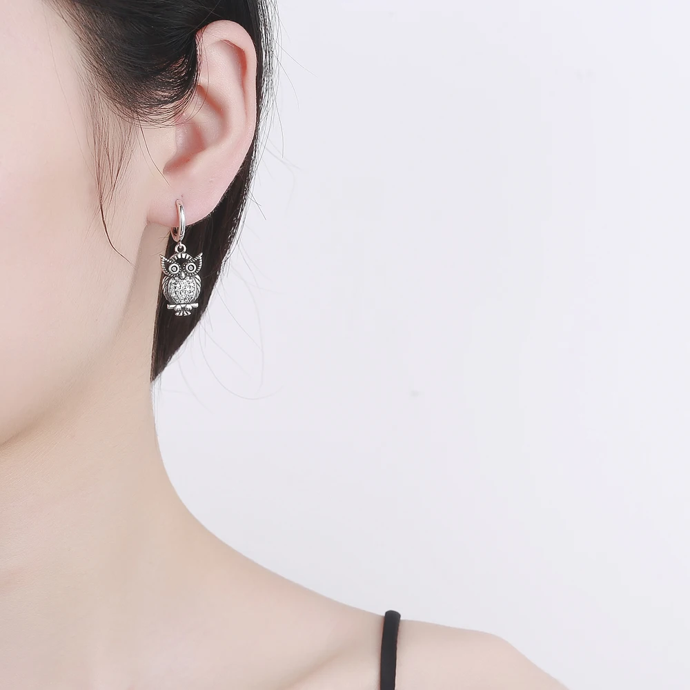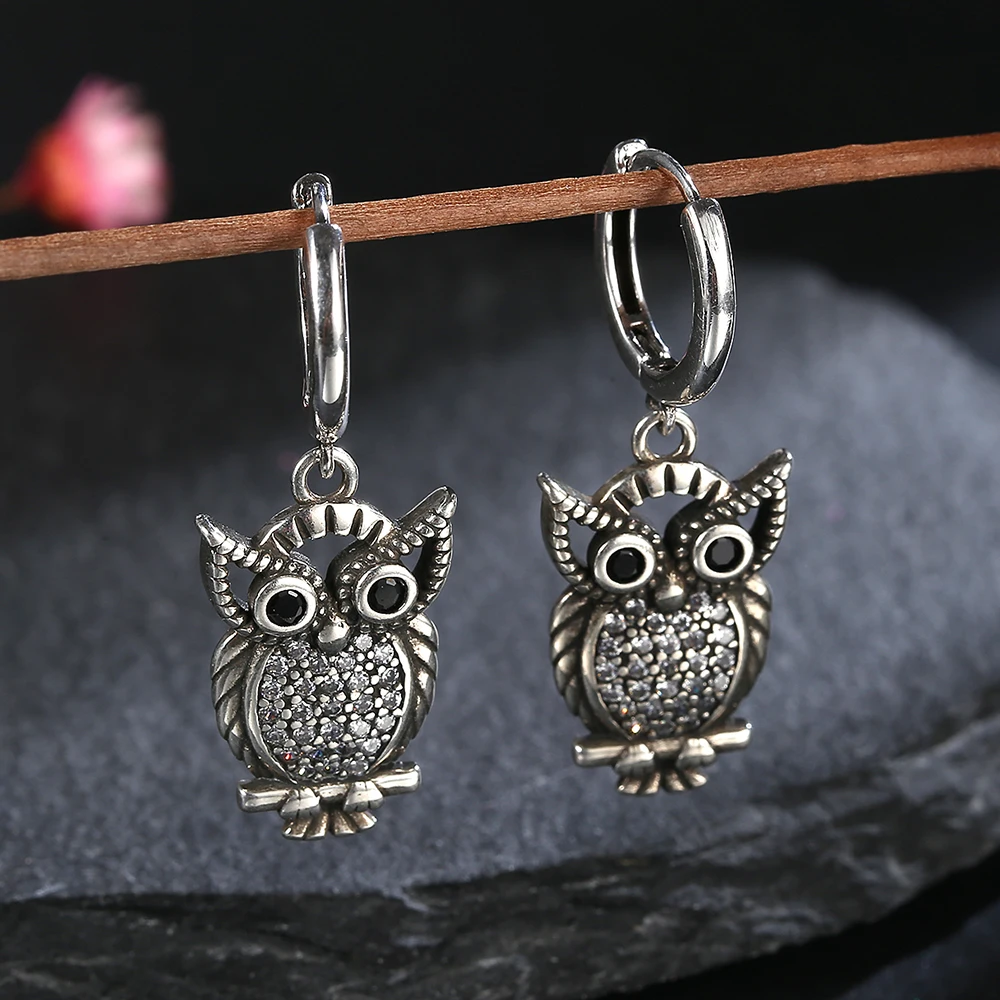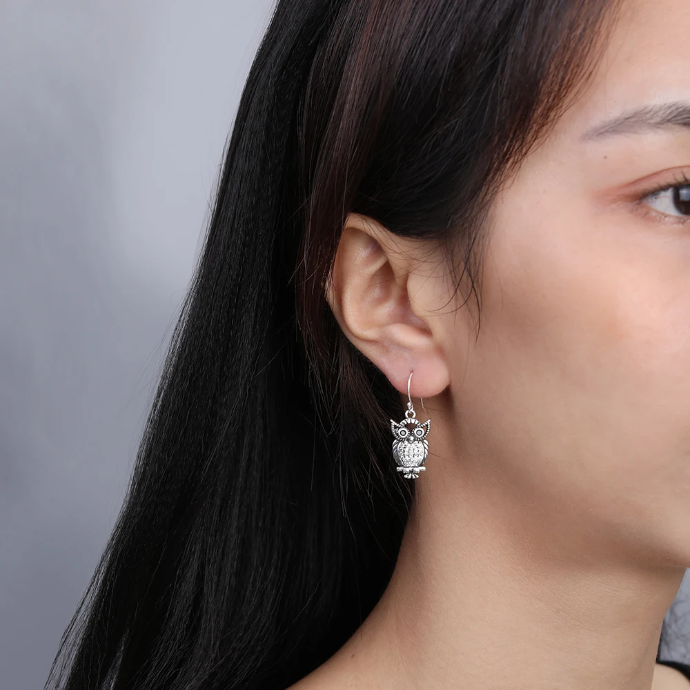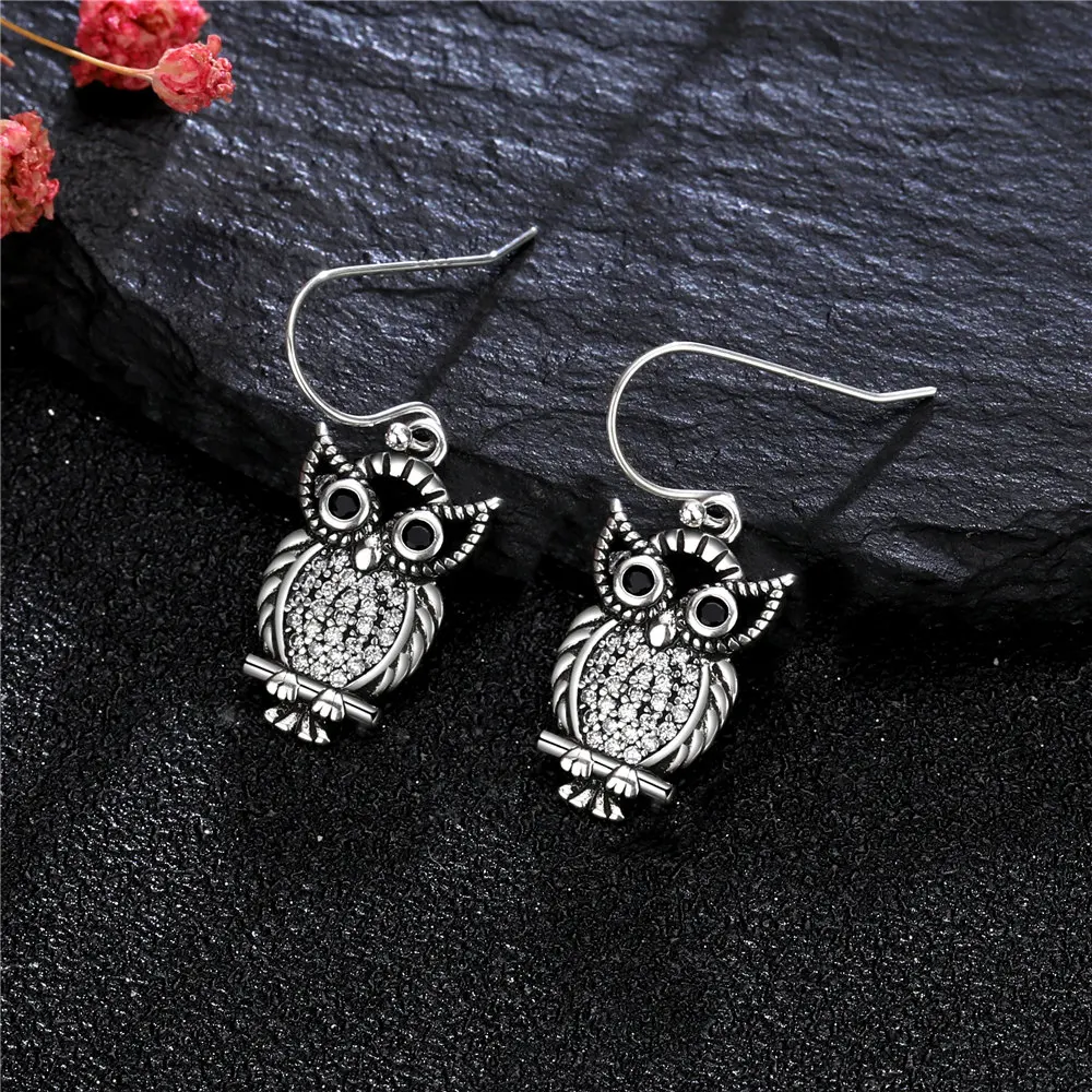 New Vintage Cute Owl Drop Earrings for Women Classic Style Silver Hanging Earring Halloween Party Fashion Fine Jewelry Gift