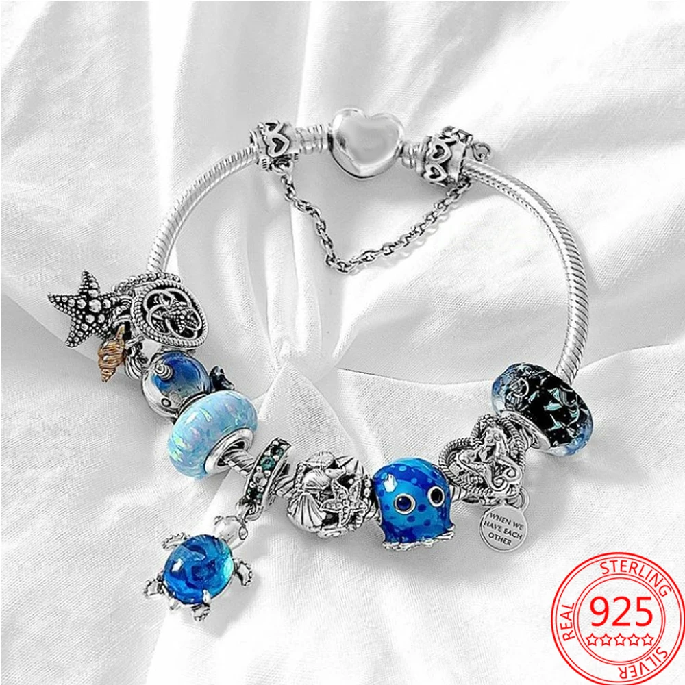 Ocean Wind 925 Sterling Silver Red&Pink&Purple&Blue&Green Crystal Turtle Starfis Fit DIY Bracelet Gift Jewelry