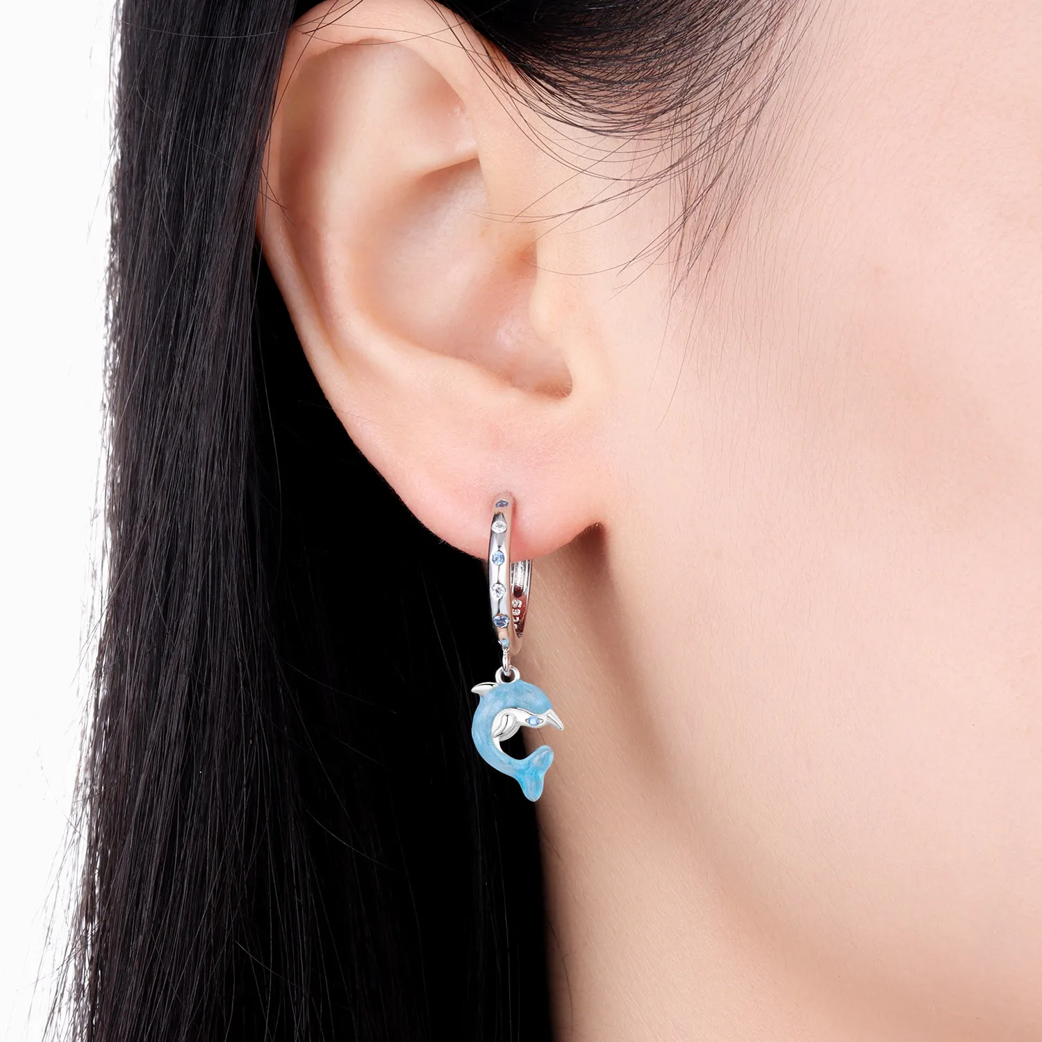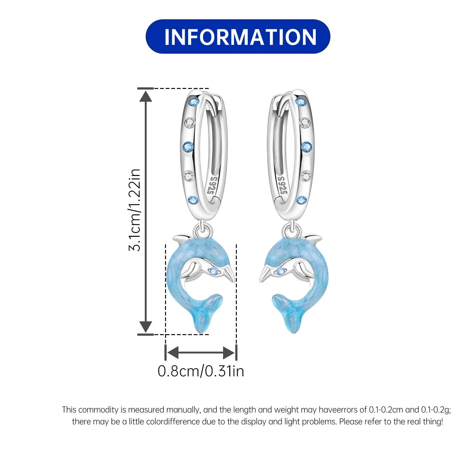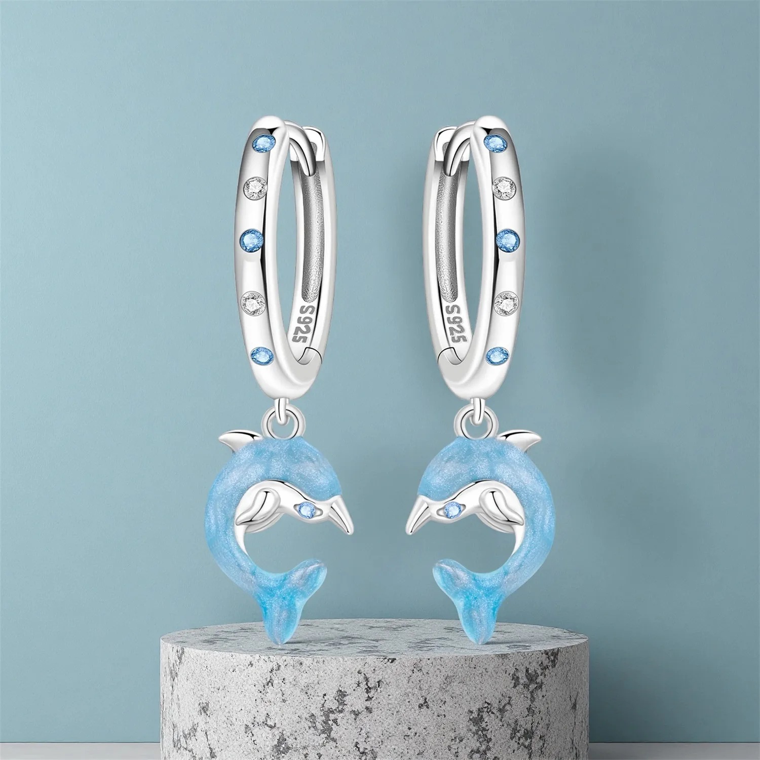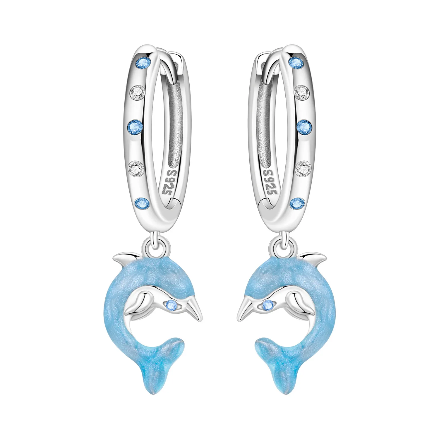 Orstarry 925 Sterling Silver Blue Dolphin Animal Earrings Original Jewelry Drop Earrings Jewelry Party Anniversary Trendy Gifts