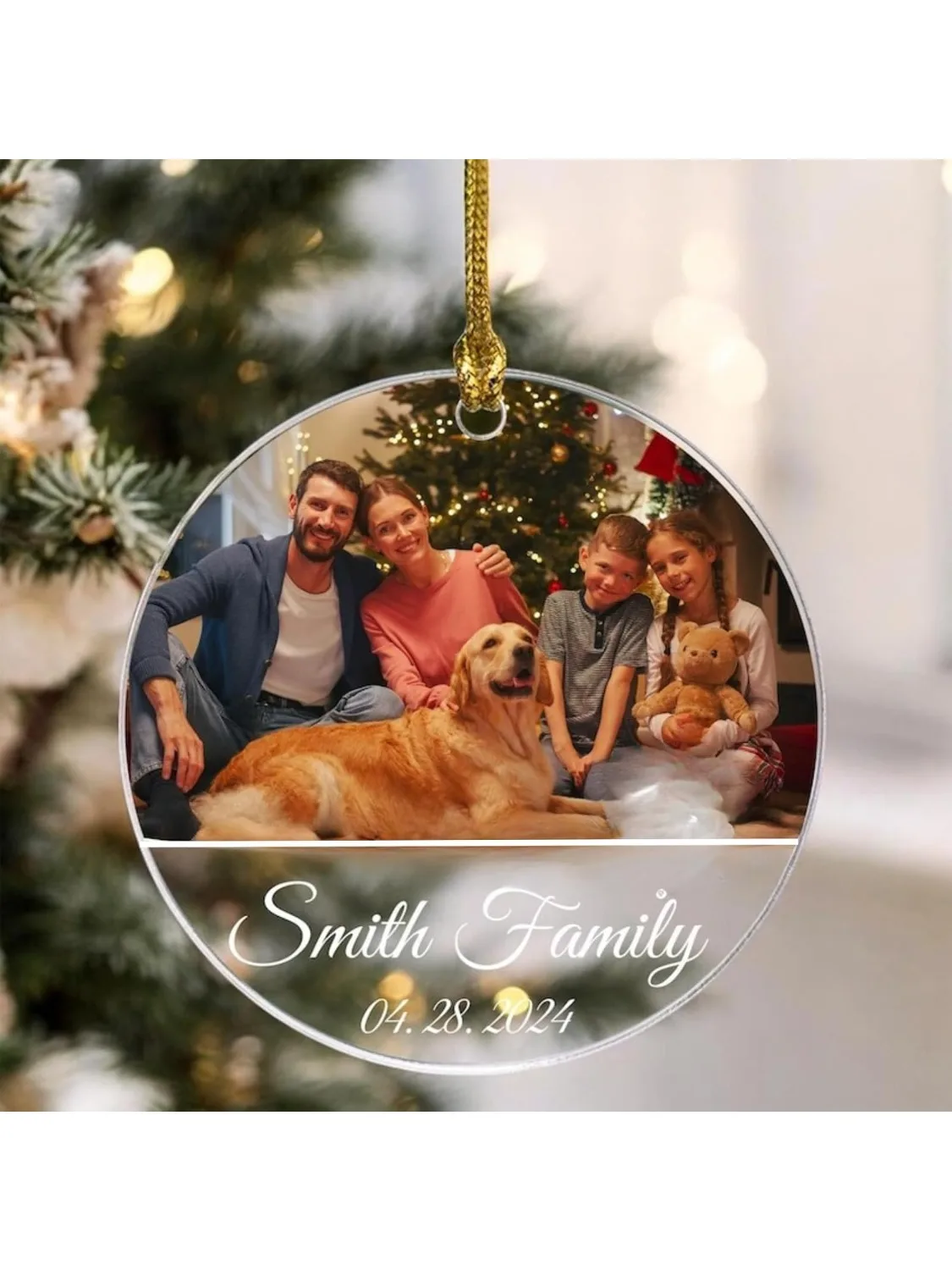 Personalized Acrylic Ornament Round,Custom Photo Christmas Ornaments, Family Christmas