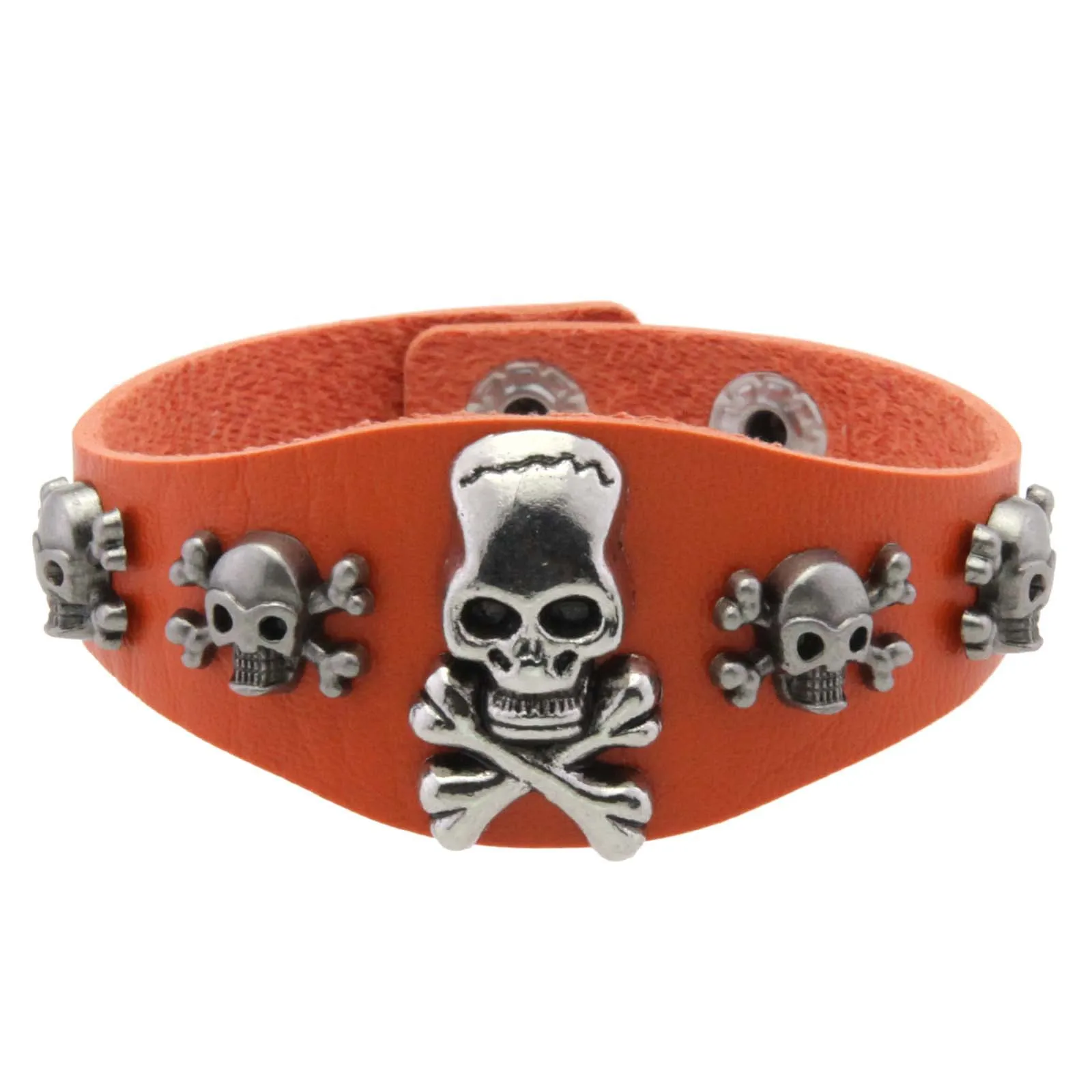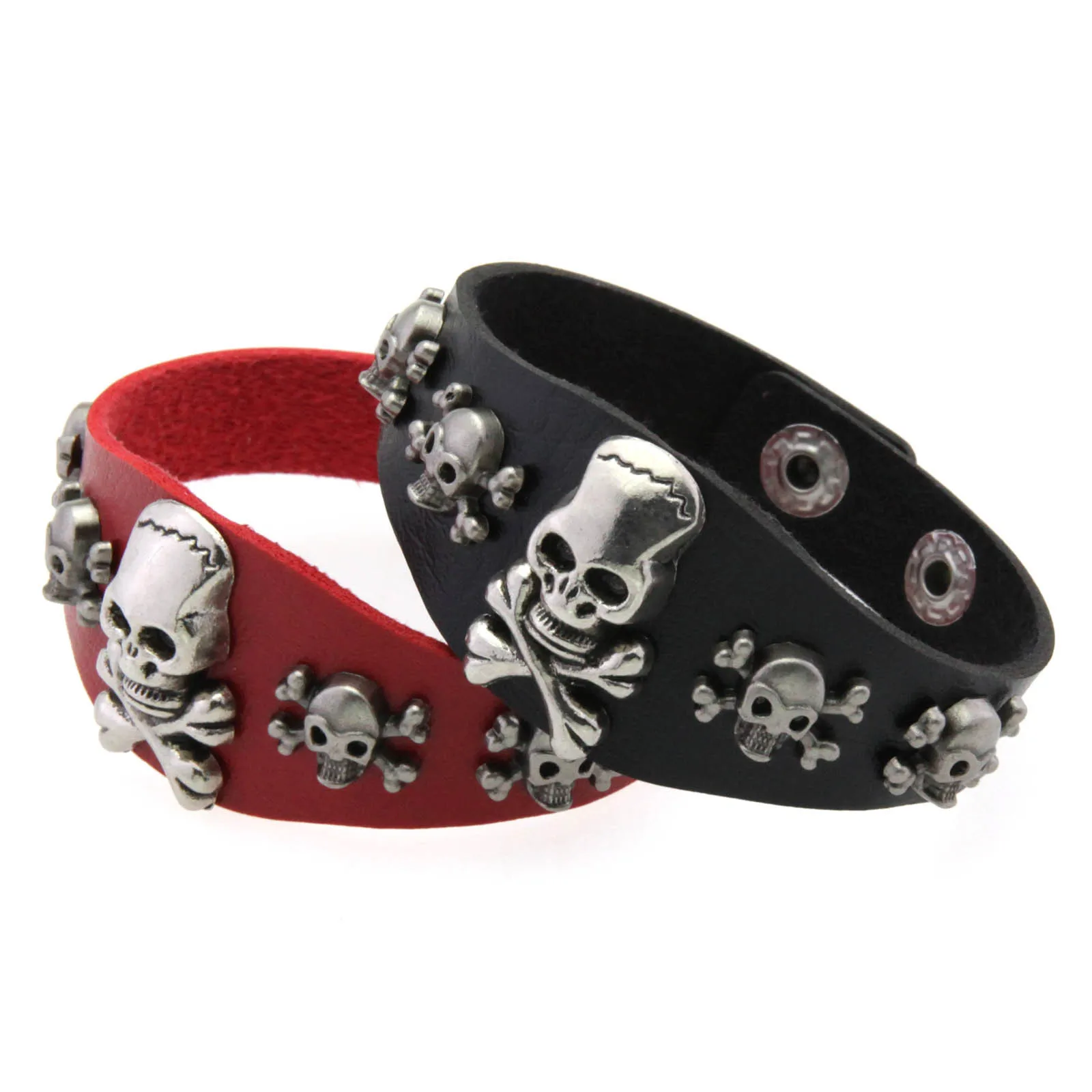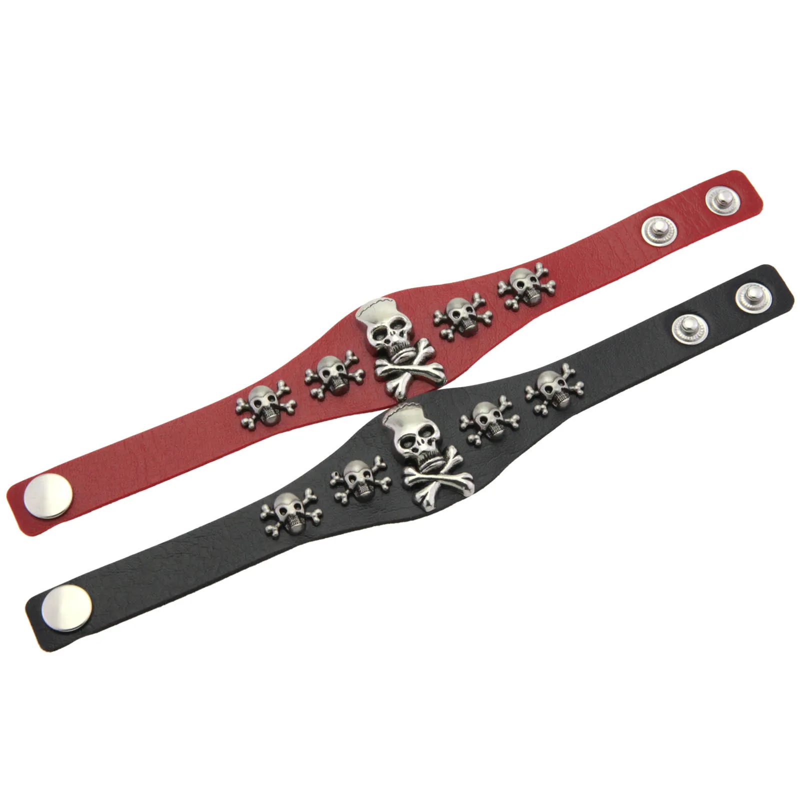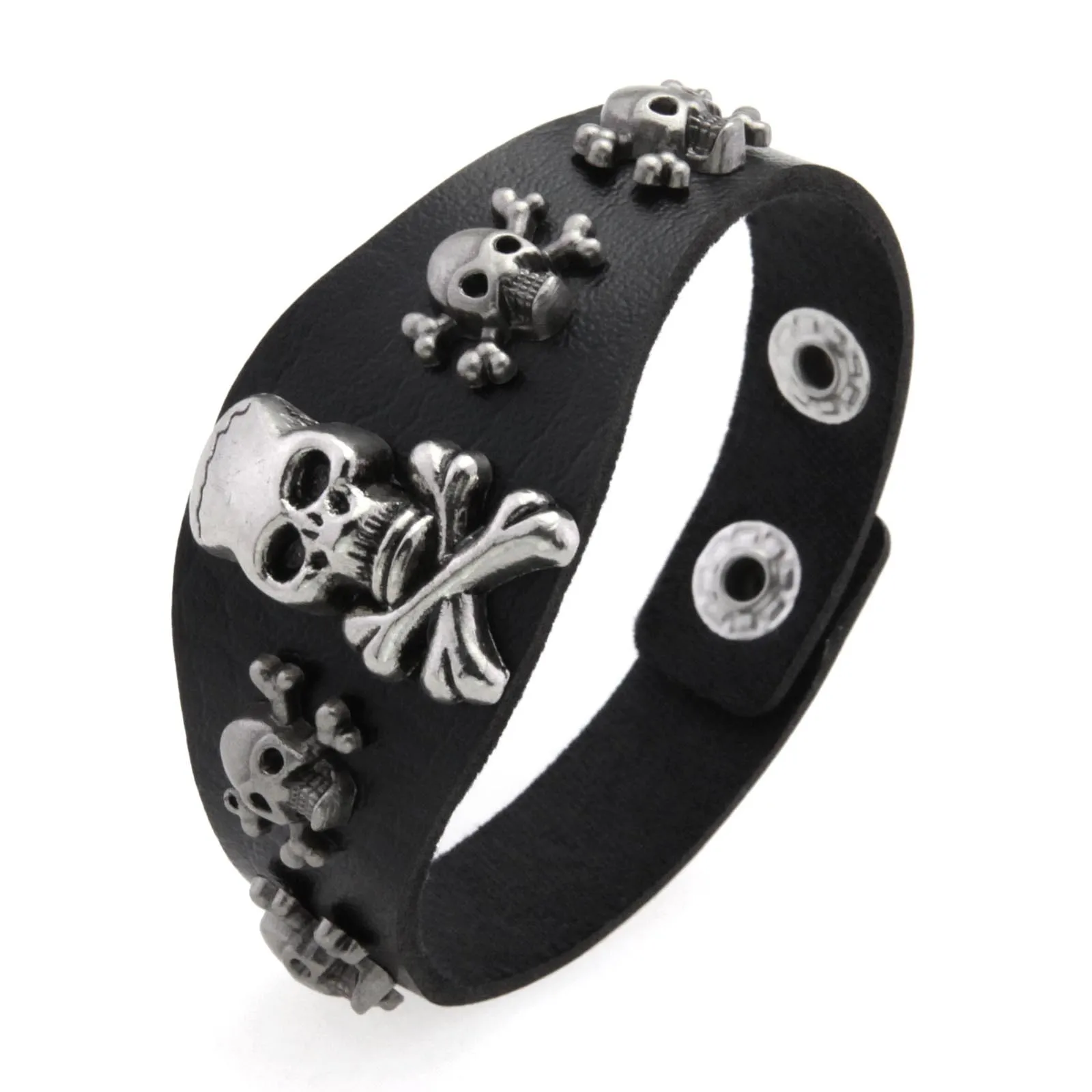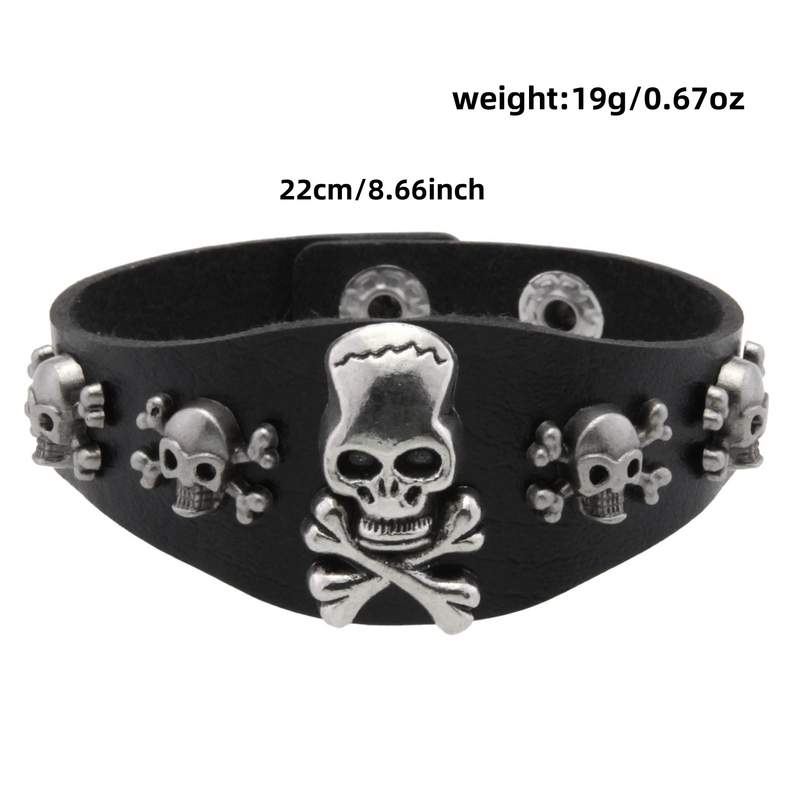 Punk Bracelet for Men Women Goth Black Leather Wristband with Metal Skull Spike Studded Rivets Cuff Bangle Adjustable