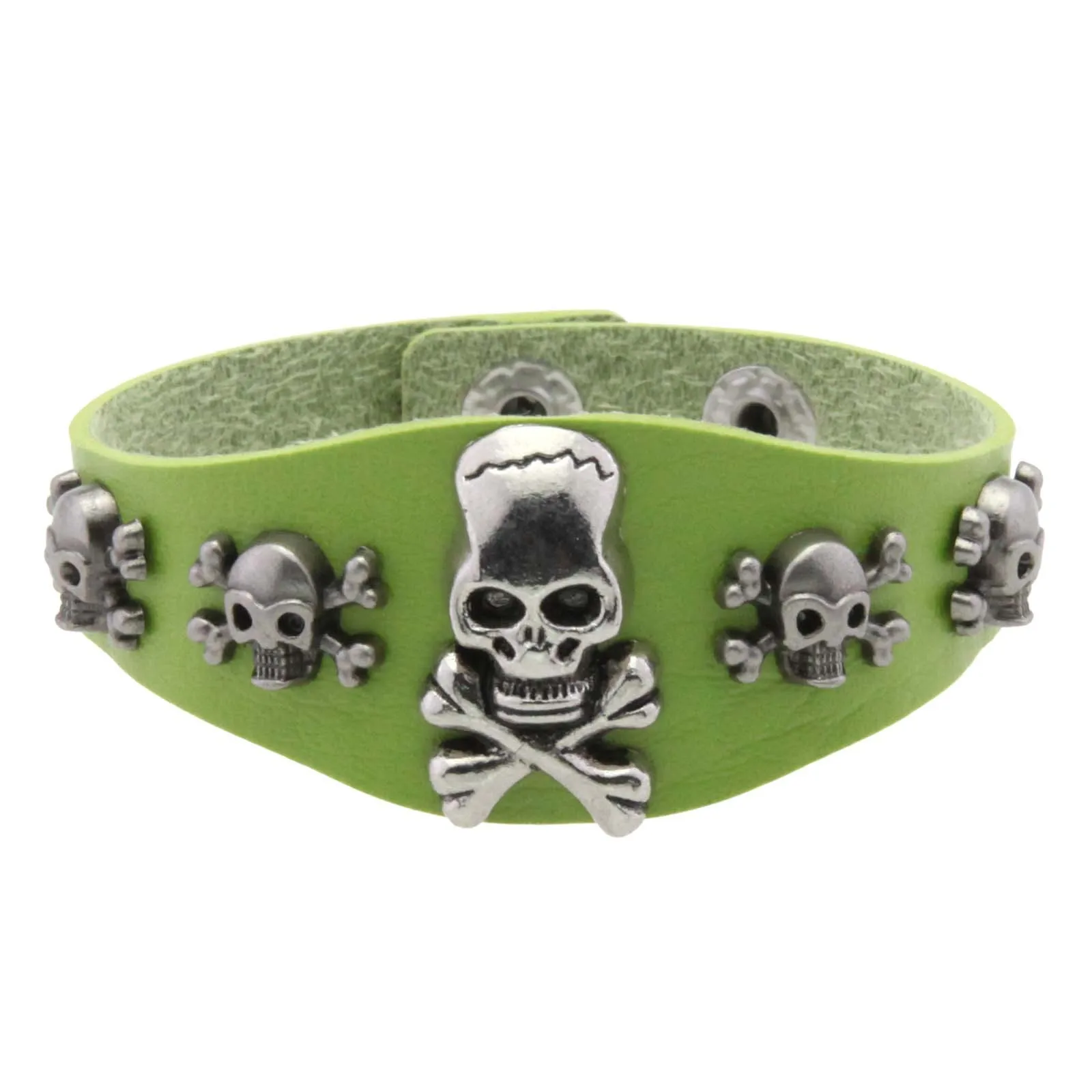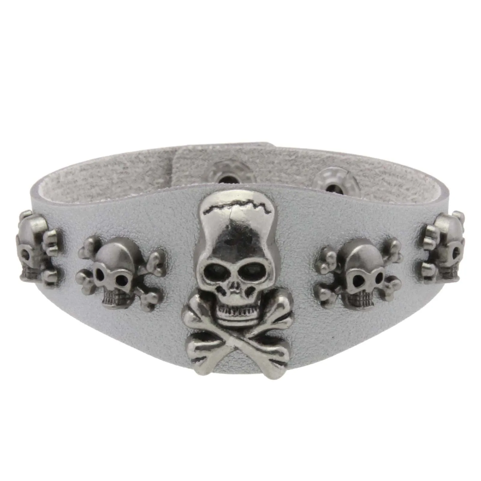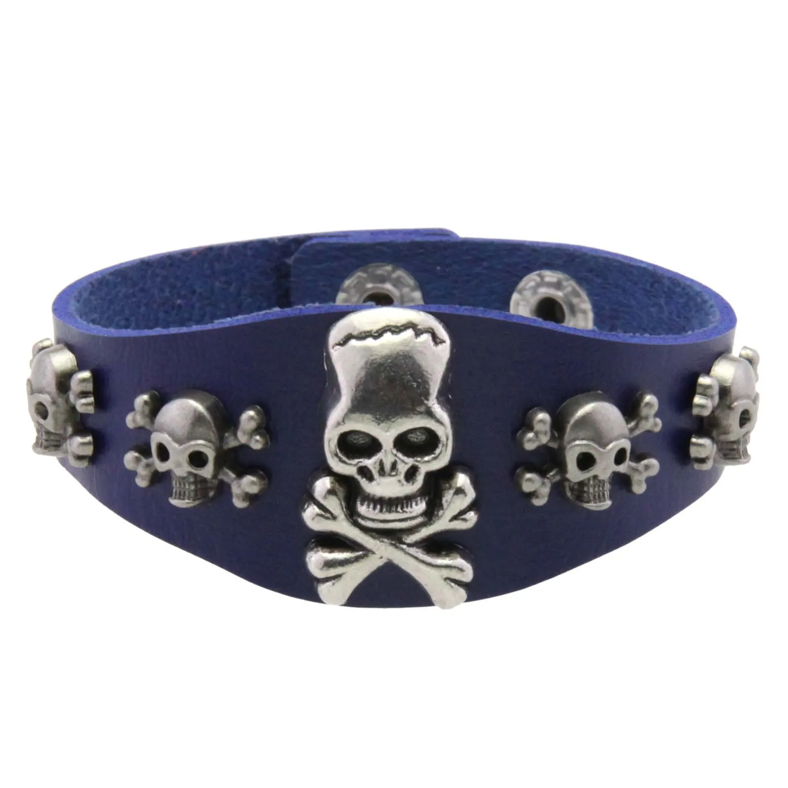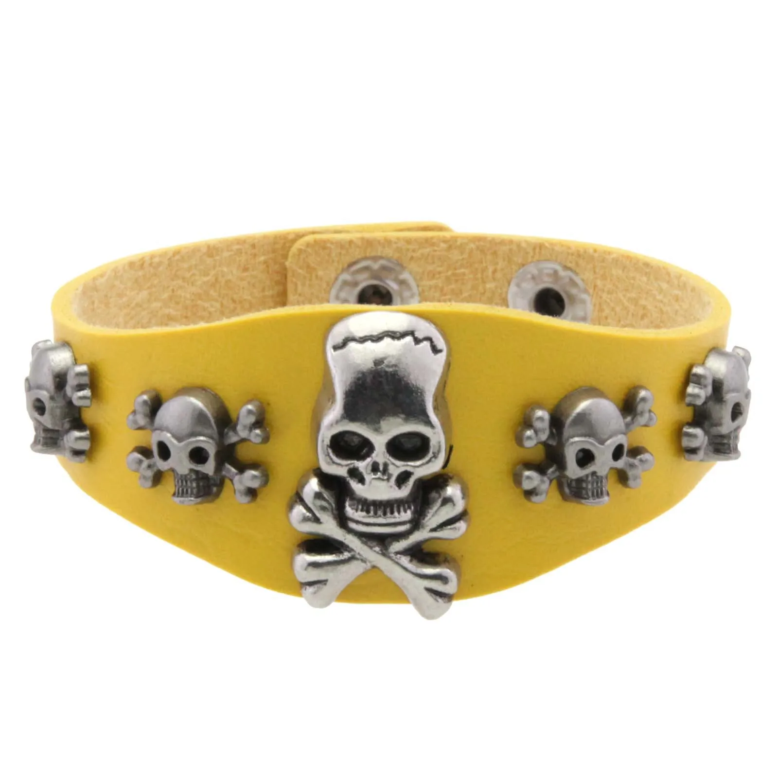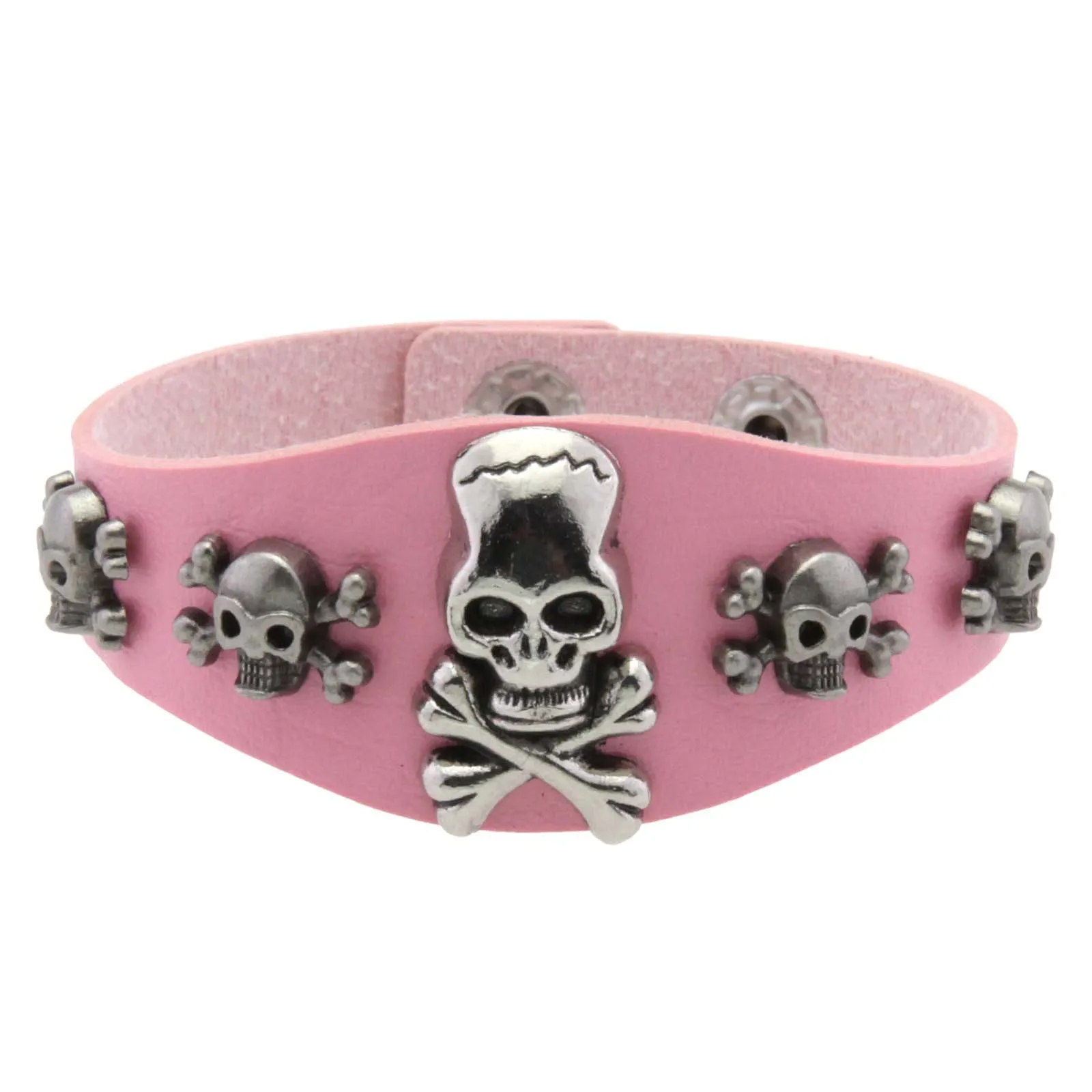 Punk Bracelet for Men Women Goth Black Leather Wristband with Metal Skull Spike Studded Rivets Cuff Bangle Adjustable