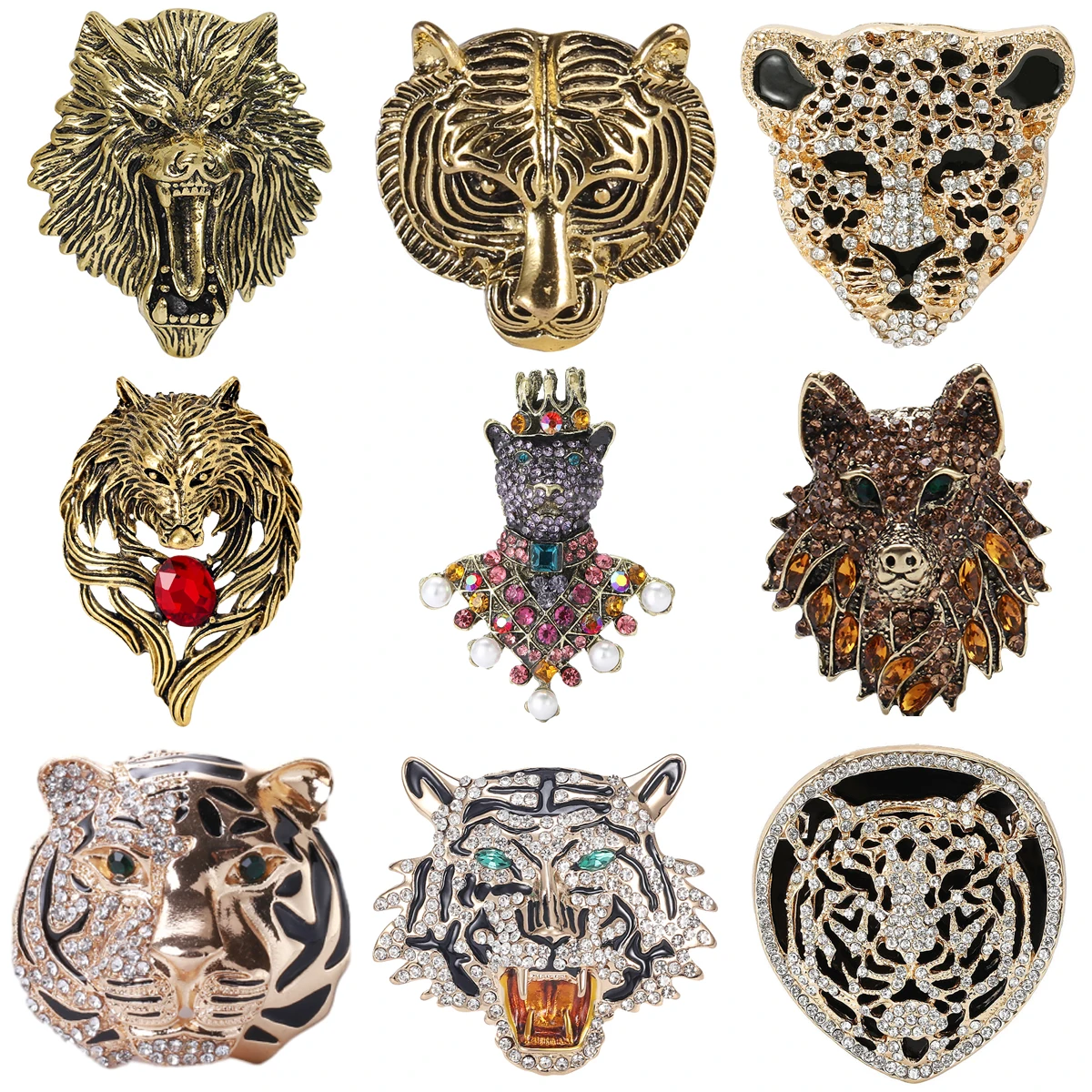 Rhinestone Leopard Pin for Women Unisex Tiger Badge Wolf Brooch Office Party Friend Gifts Jewelry Accessories