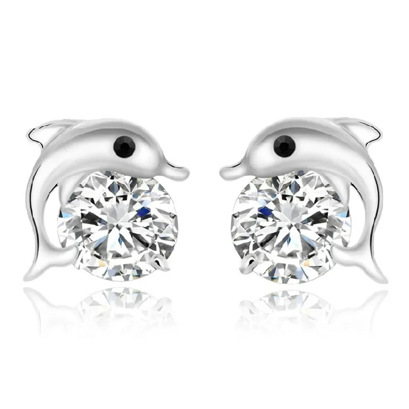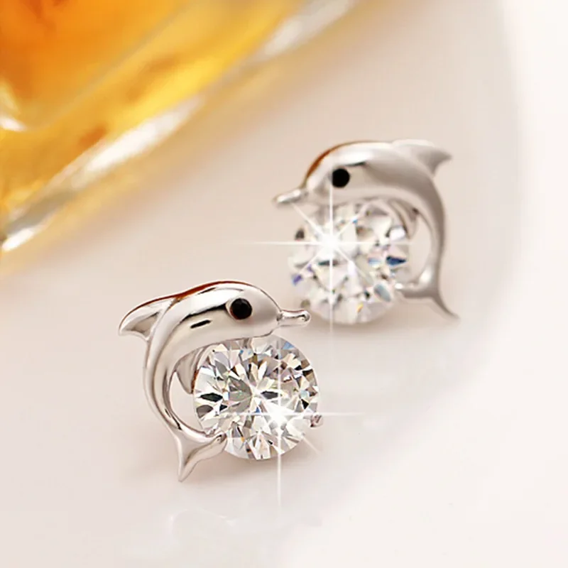 S925 Sterling Silver Dolphin Necklace Earrings Ring Bracelet Set for Women Party Engagement Jewelry Gifts