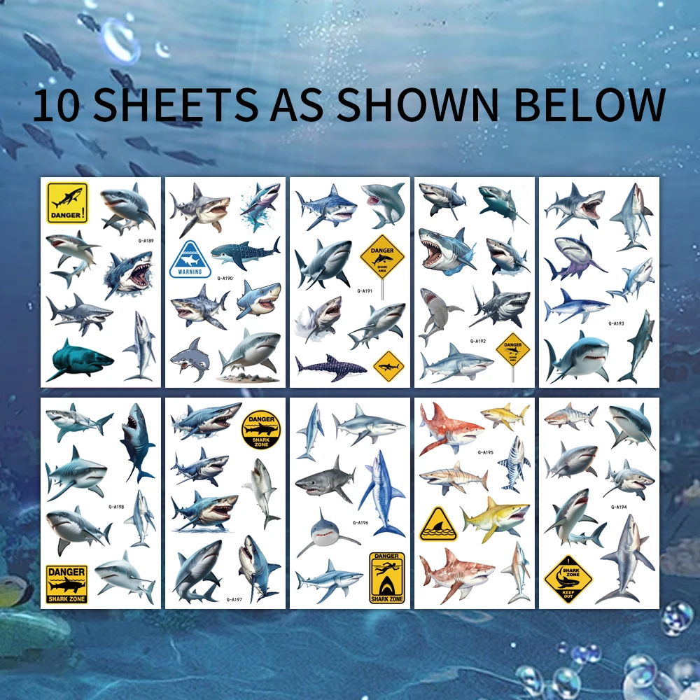 Shark Temporary Tattoos Sticker Sea Animal Fish Under The Sea Ocean Birthday Party Decorations Decor Favors Supplies Gift