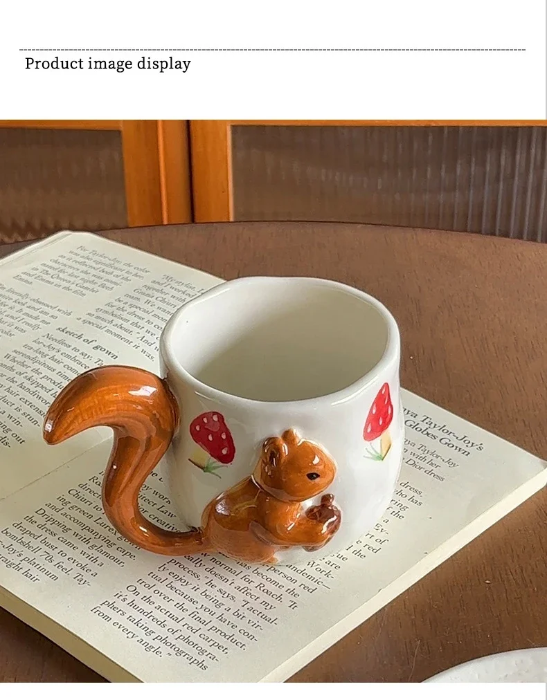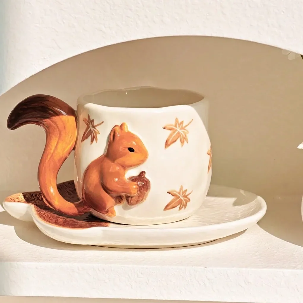 Squirrel Maple Leaf Relief Porcelain Cup&saucer Coffee Mug Dining Table Flower Mugs Afternoon Tea Teacup Fruits Juice Cup
