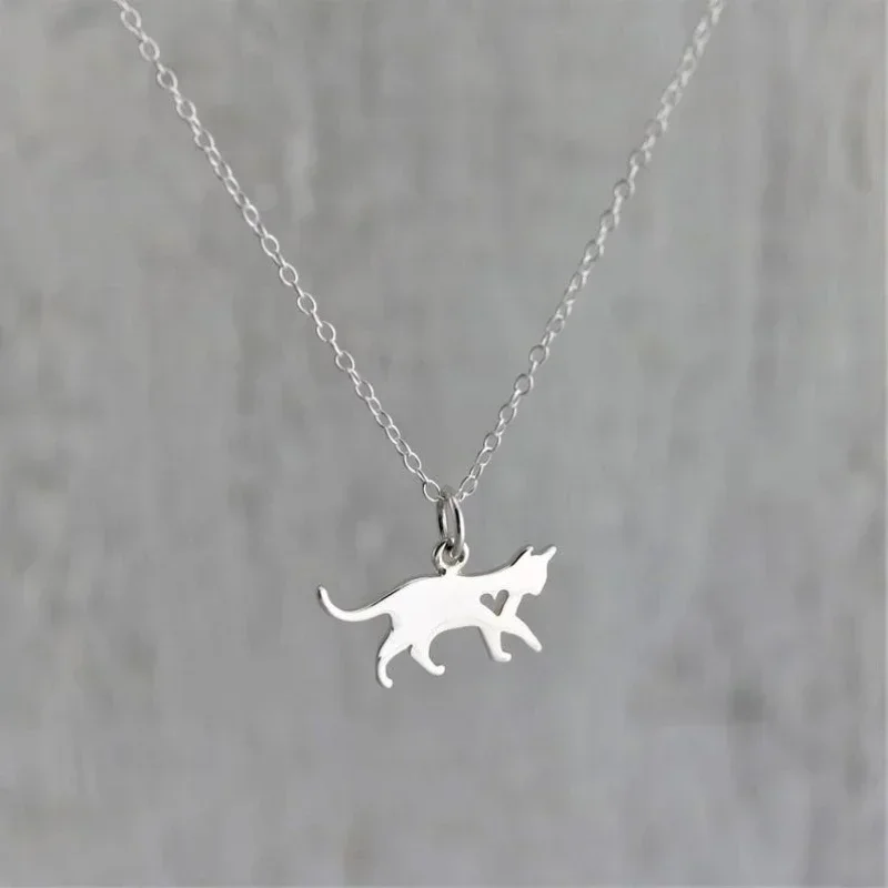 Stainless Steel Necklaces Fashion Cat Jewelry Necklace Sympathy Gift Cat Lover Gifts Women Animal Necklace Cat Memorial Necklace