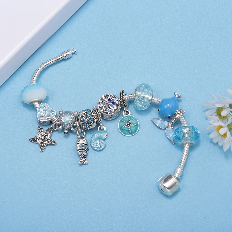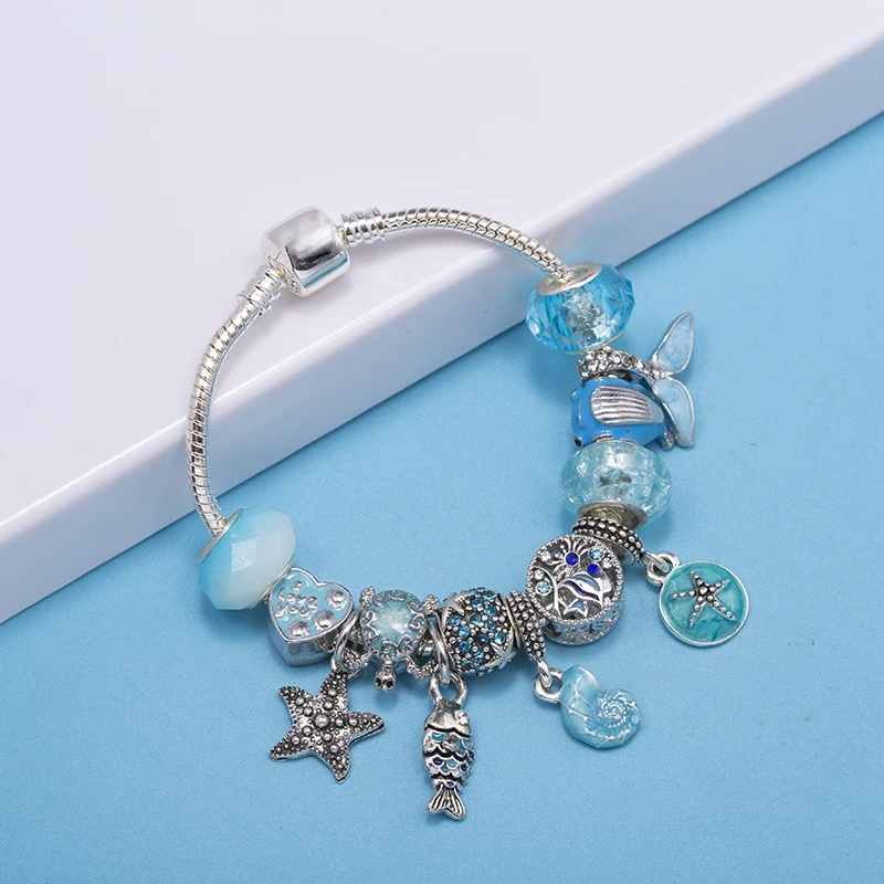 Summer Styles Charm Bracelets Fits Fish Starfish Dolphin Beads Bracelet For Women Girl Bijoux Pulseras Marine Style Jewelry Gift