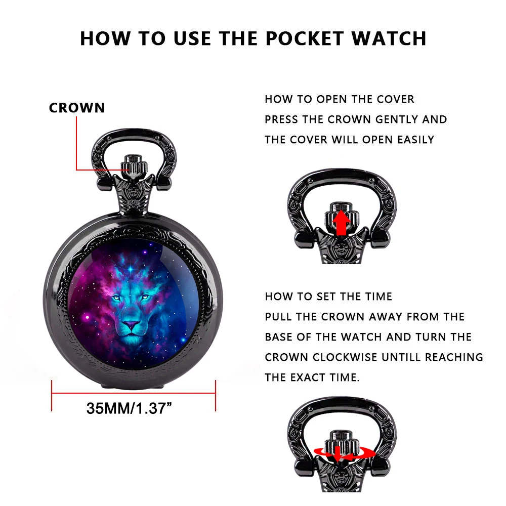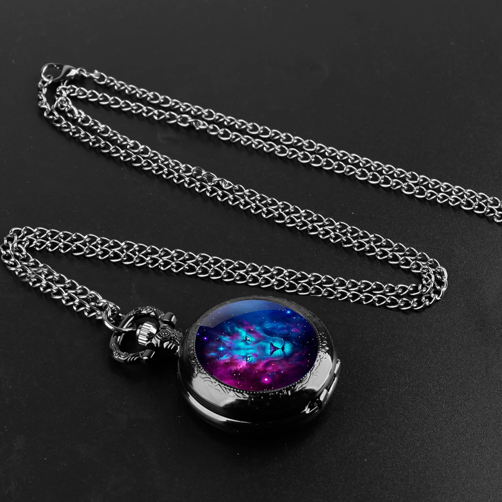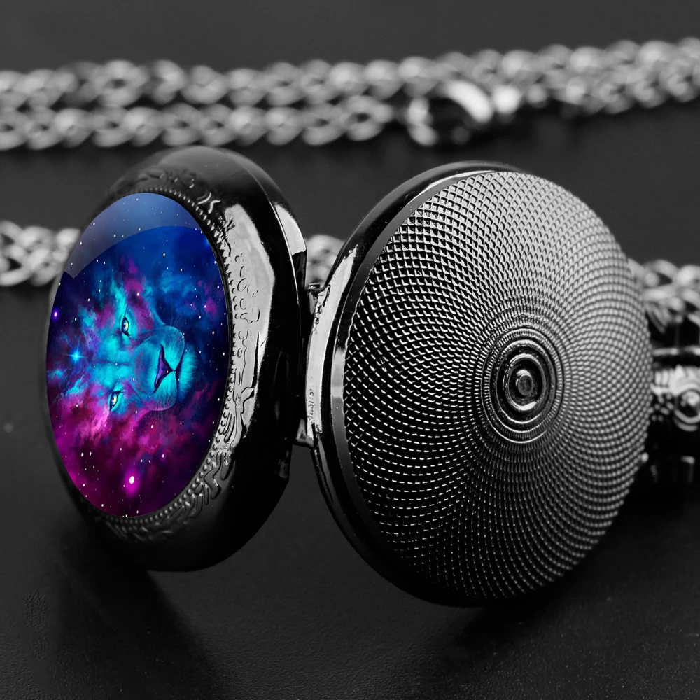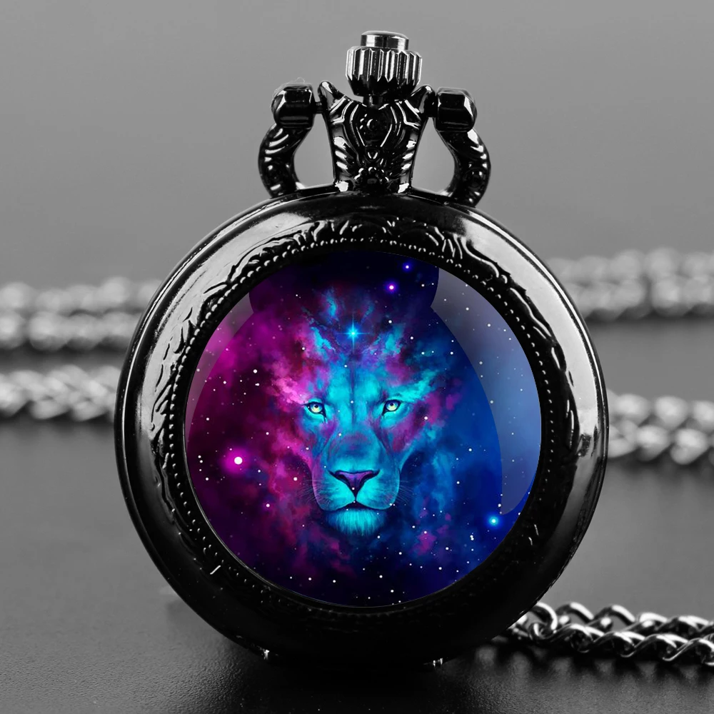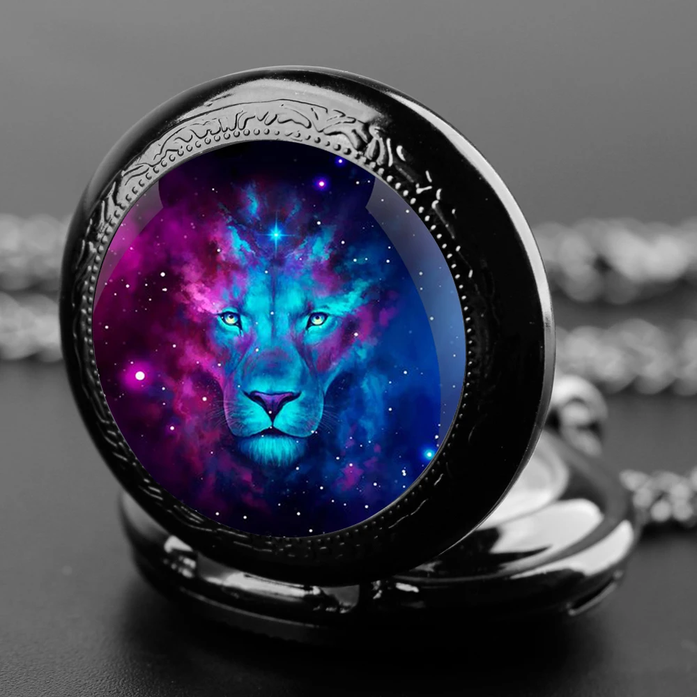 The Colorful Leo Zodiac Sign, Leo Pocket Watch Women Men Children Quartz Necklace Pendant World Time Display Electronic Movement