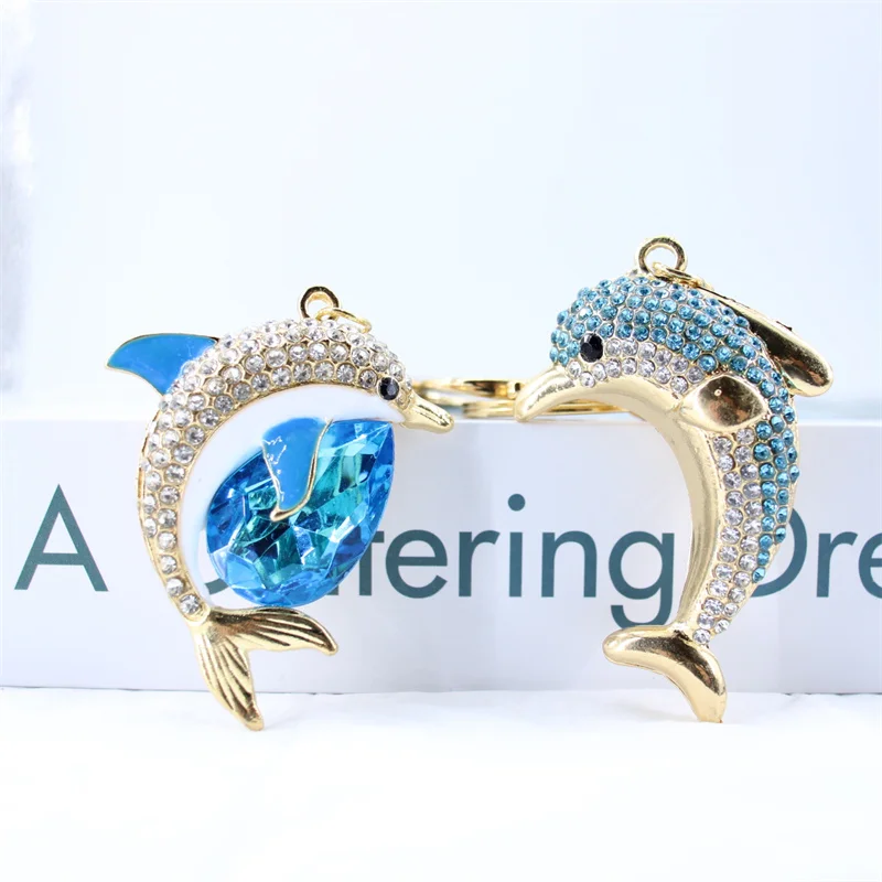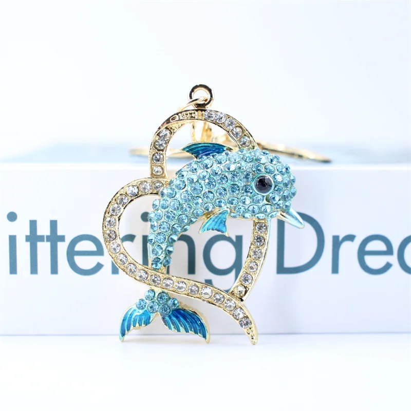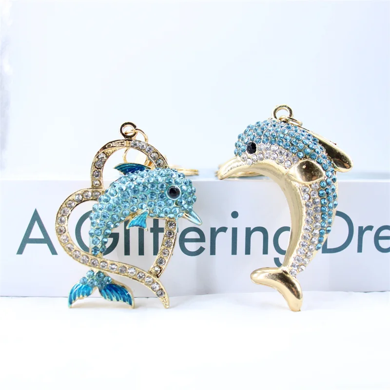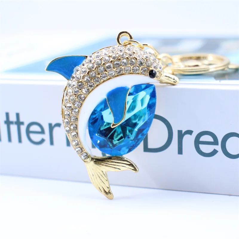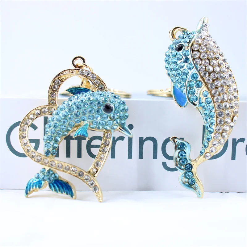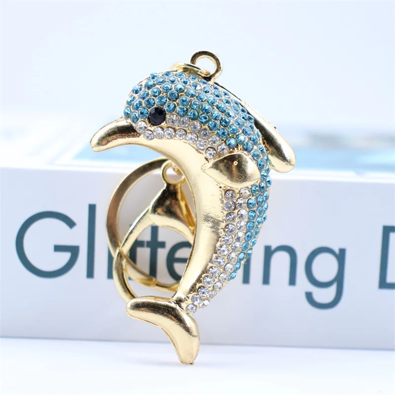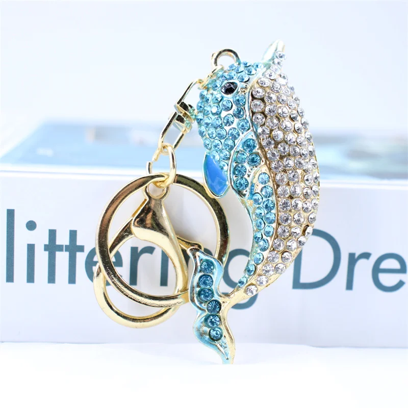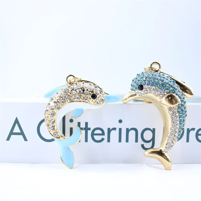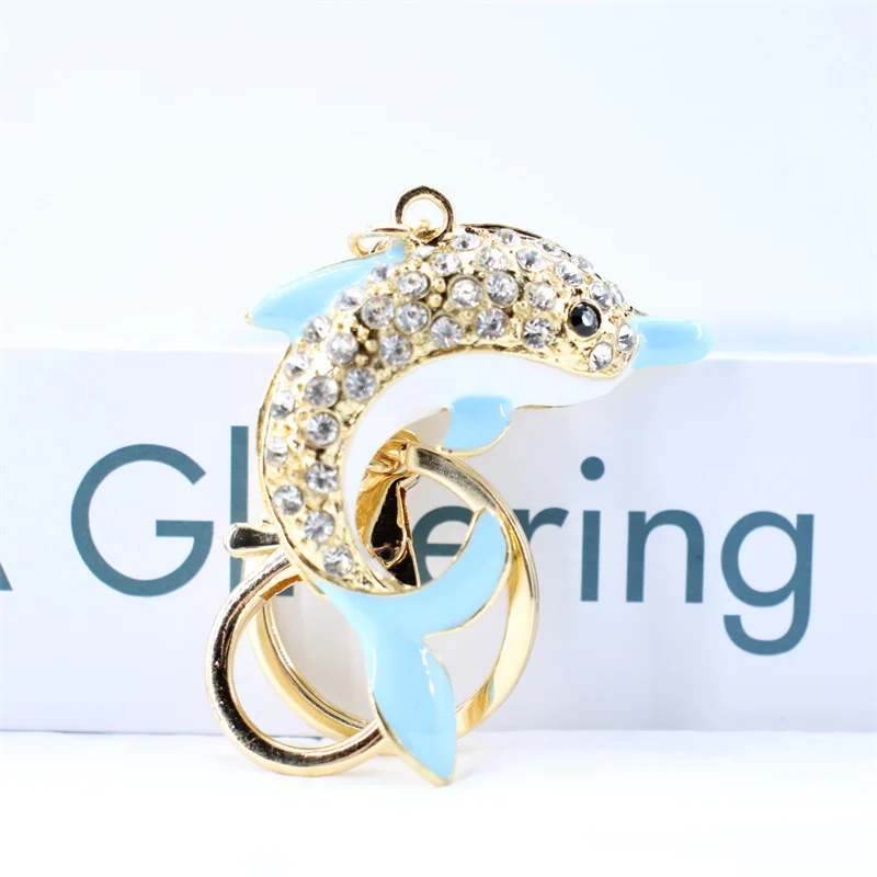 Trendy Blue Dolphin Crystal Rhinestone Keychains Cartoon Marine Animals Enamel Key Rings Kawaii for Fashions Women Girl Jewelry