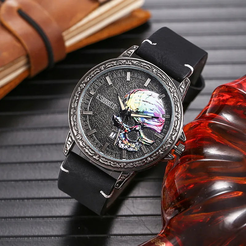 UTHAI BK149 Fashionable waterproof Man watch skull quartz watch calendar retro student watch fashion clock gift watches for man