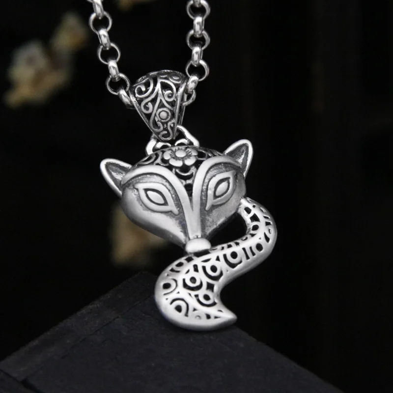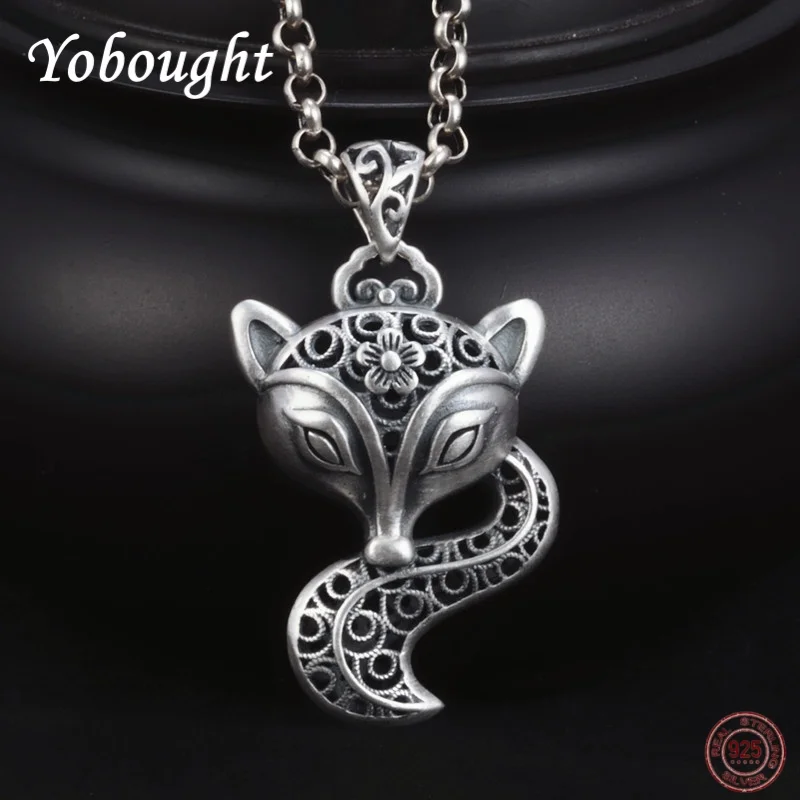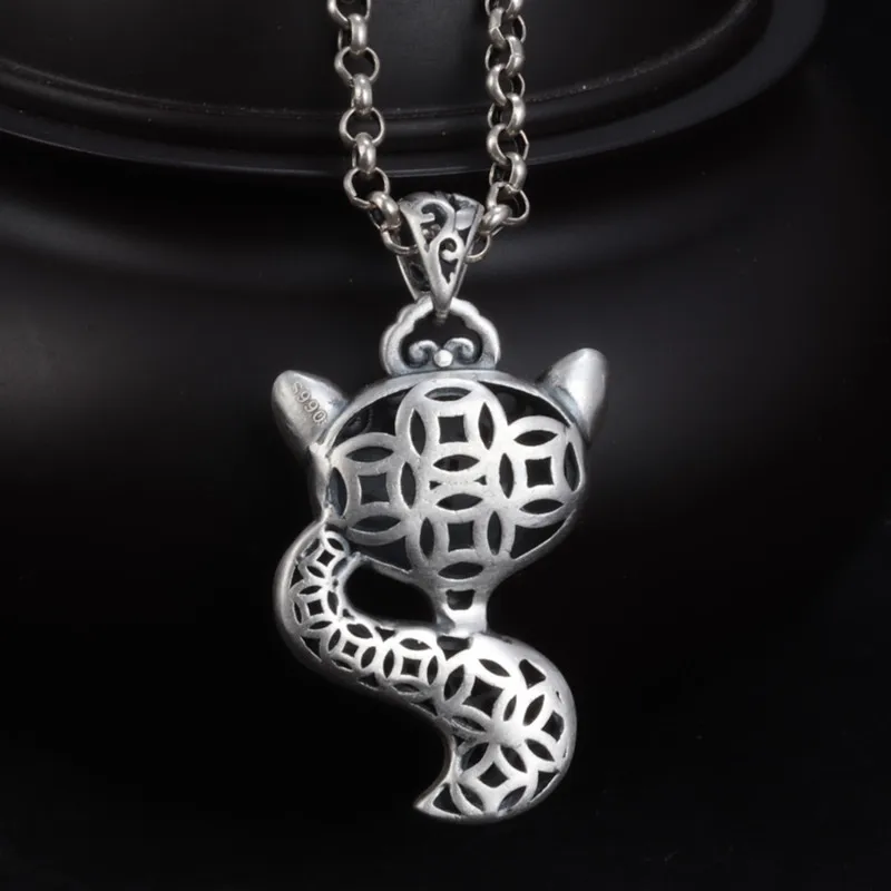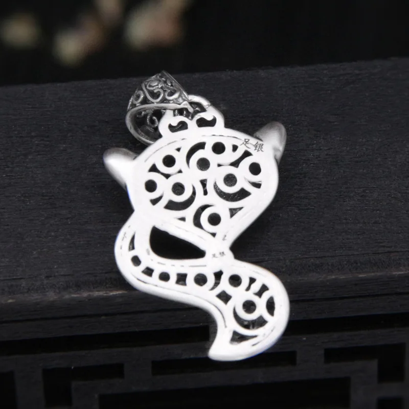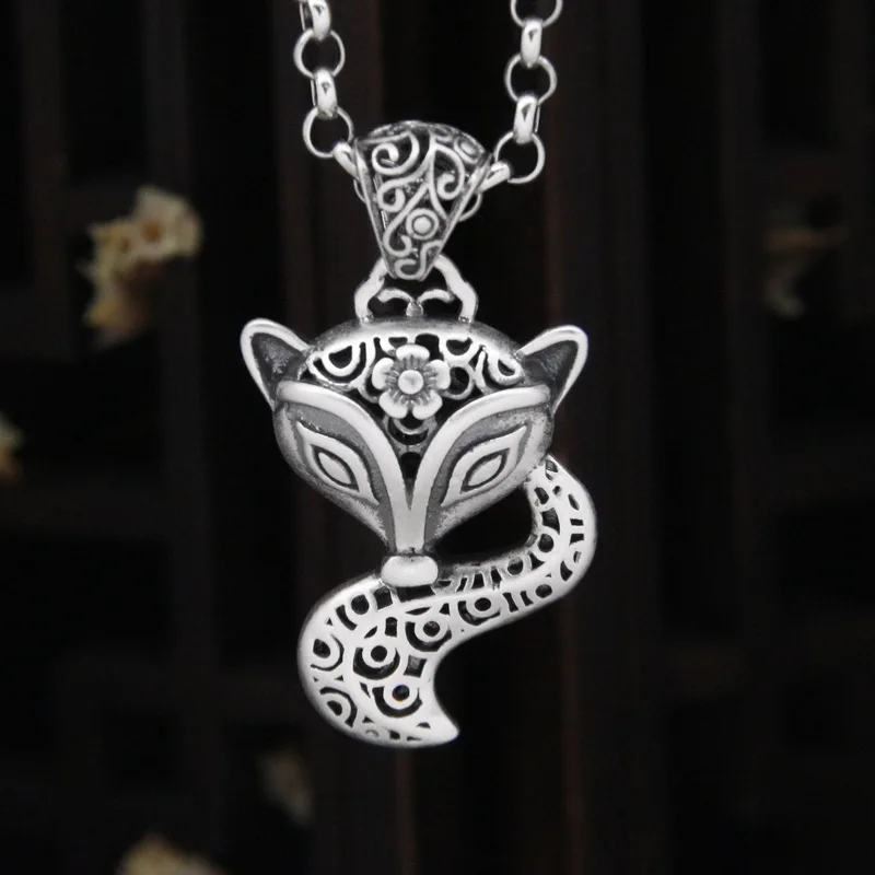 Vintage 999 Silver Charm Hollow Fox Necklace Pendant for Women Fashionable Cute Lucky Jewelry Gift