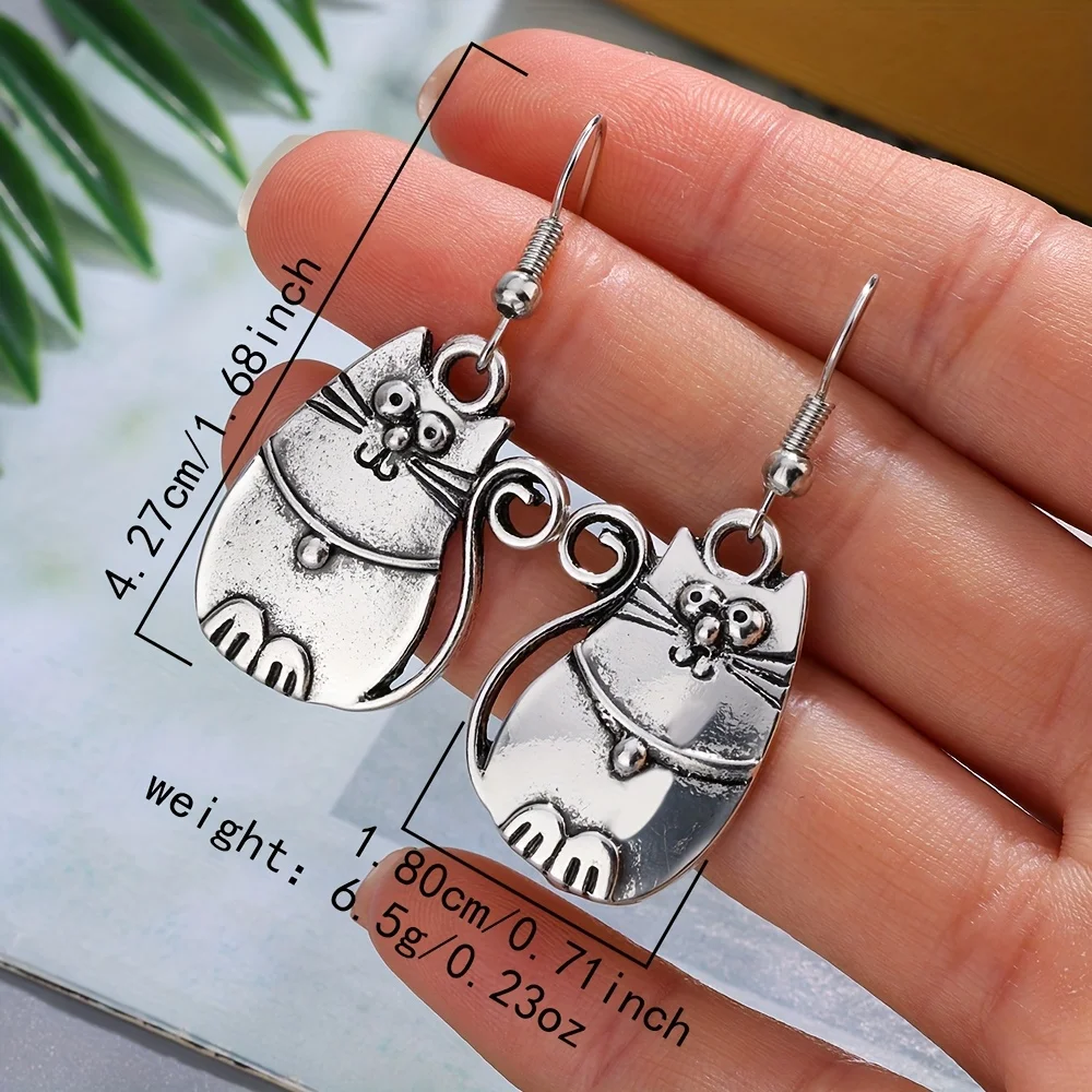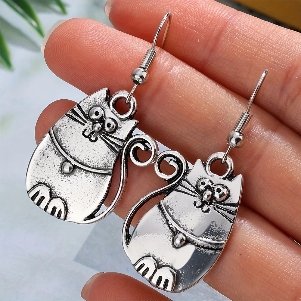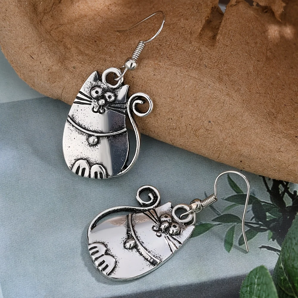 Vintage Cat Earring Set Bohemian Style Low Allergy Handmade Design for Women's Daily Fashion Accessory Ethnic Trend