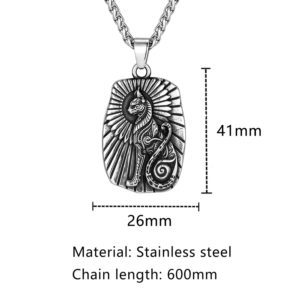 Vintage Men's Egyptian Cat Runes Pendant Women's Stainless Steel Necklaces Amulet Gift Leather Rope Chain Charm Jewelry