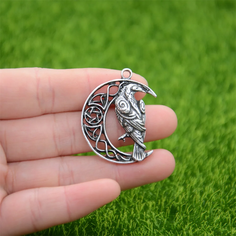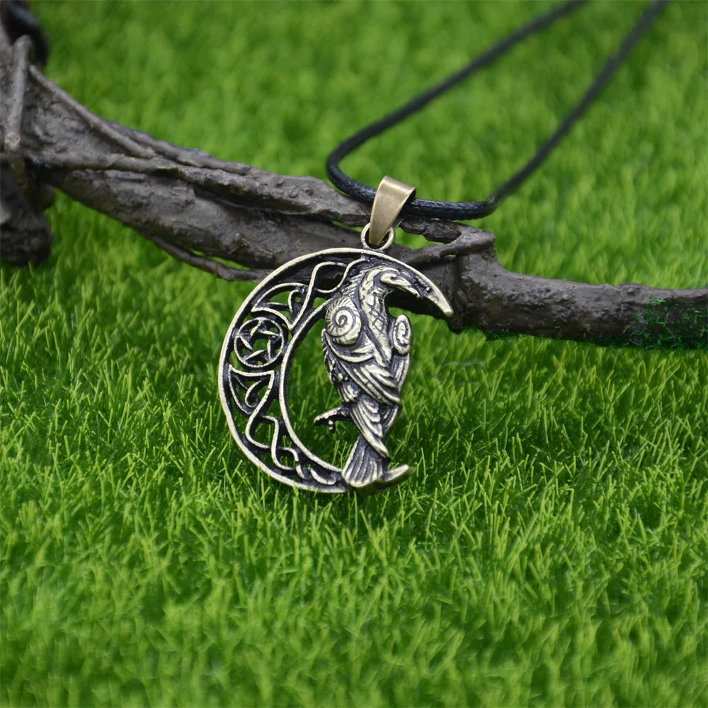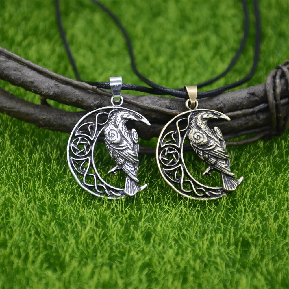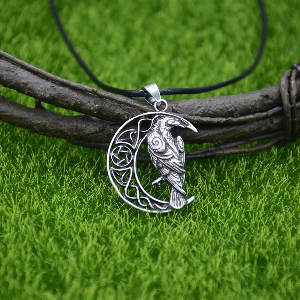 Wicca Crescent Moon Pendant Odin Raven Amulet Talisman Viking Jewelry Necklace Wiccan Supplies