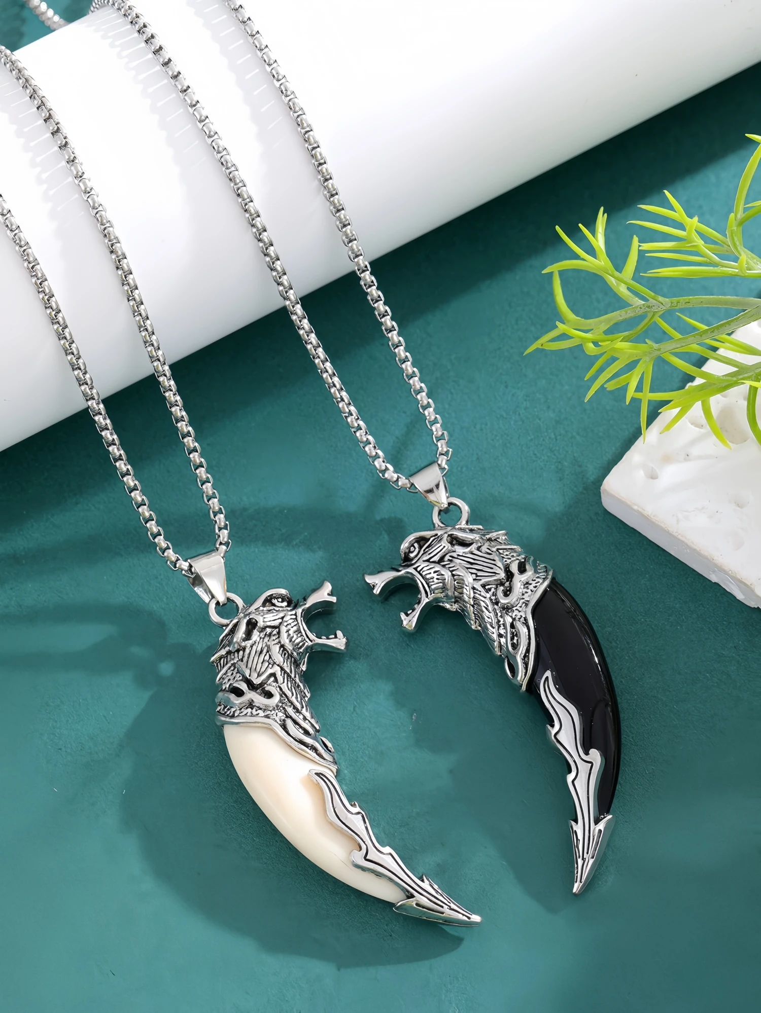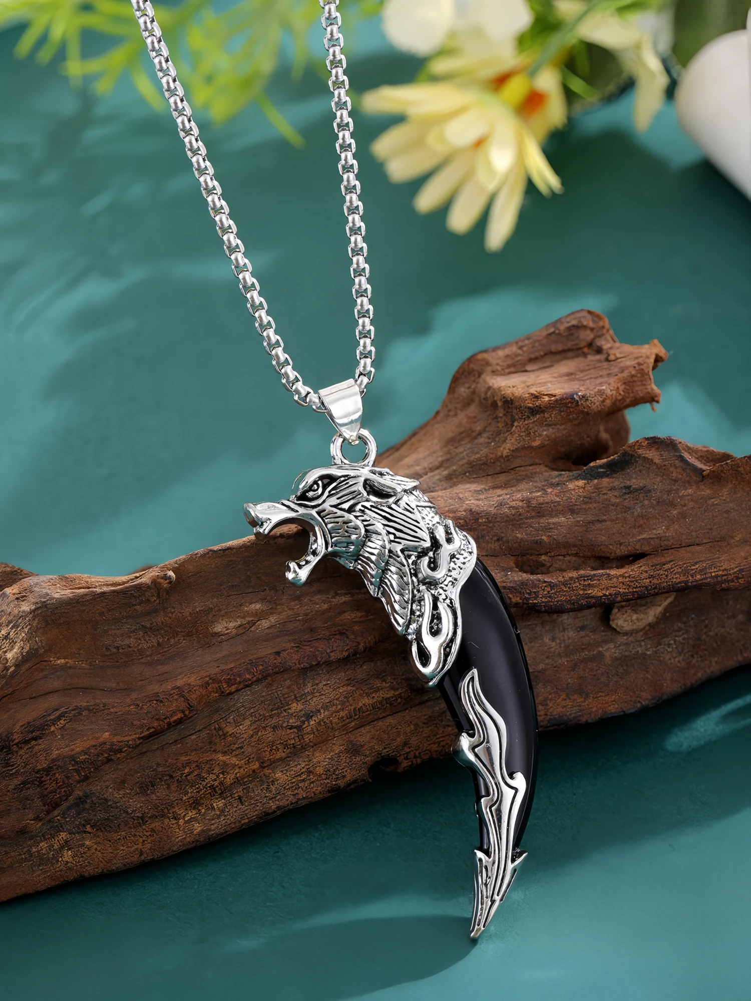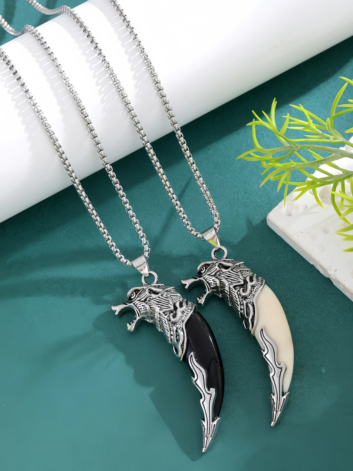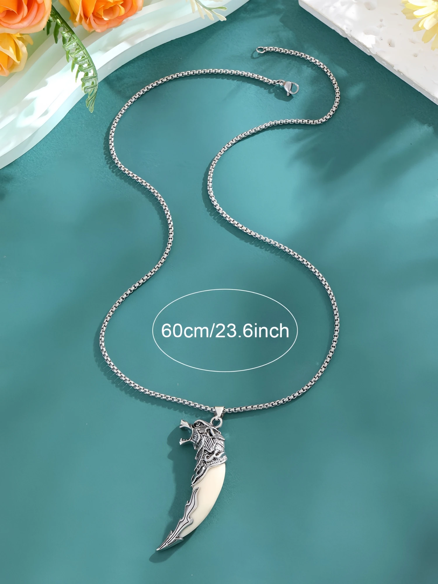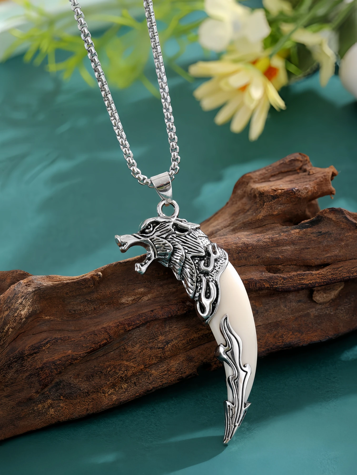 Wolf Tooth Pendant Necklace Men –Viking Nordic Animal Fang Amulet Jewelry Stainless Steel Chain Black White Claw Tusk Charm Gift