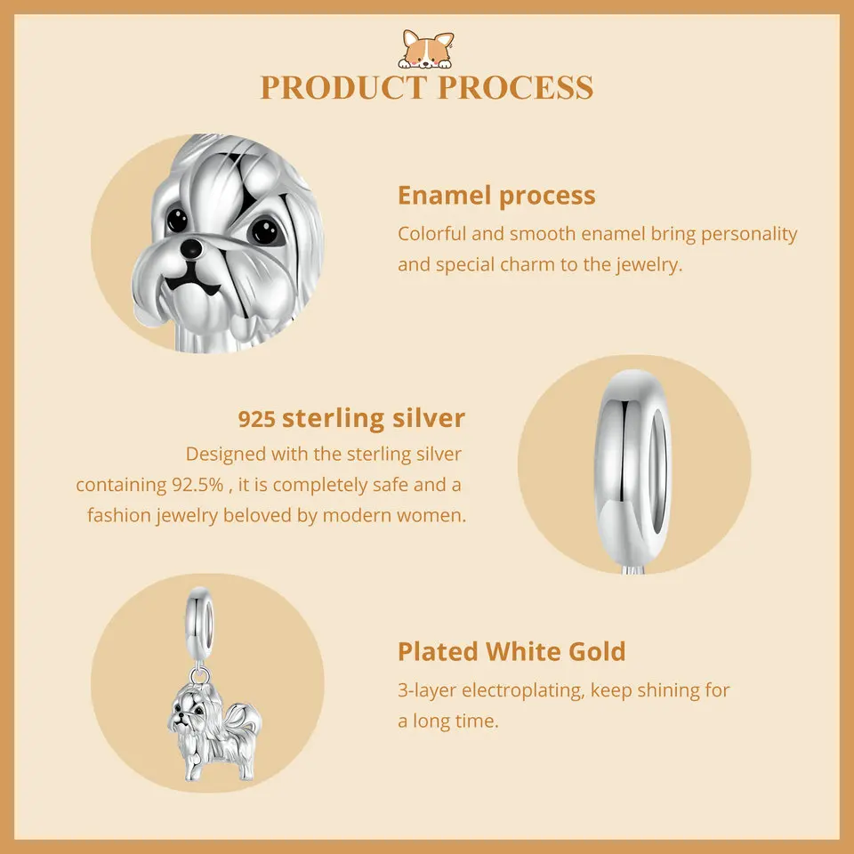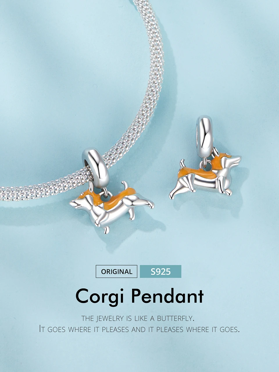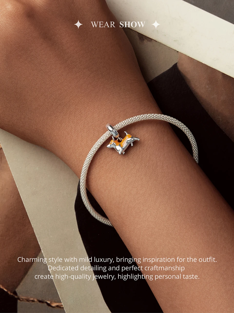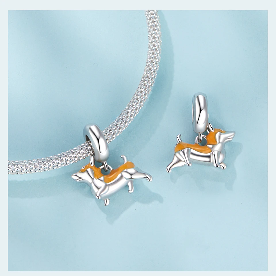 WOSTU 925 Sterling Silver Dog Charms Yellow Corgi Pendant Pink Pet Paw Dachshunds Shih Tzu dog Dalmatian Bead Fit DIY Bracelet