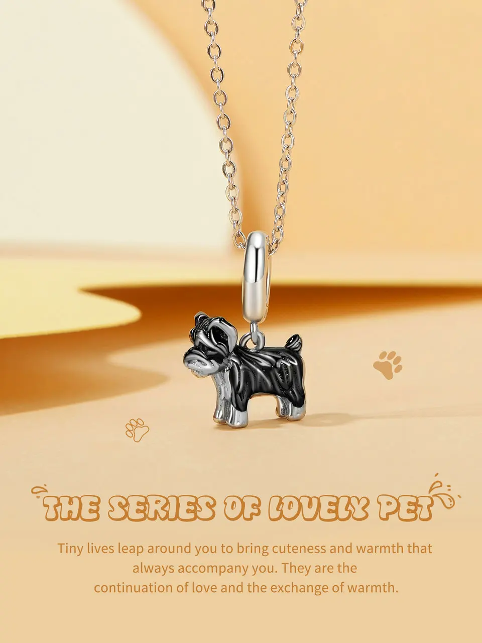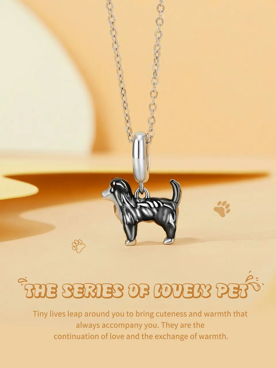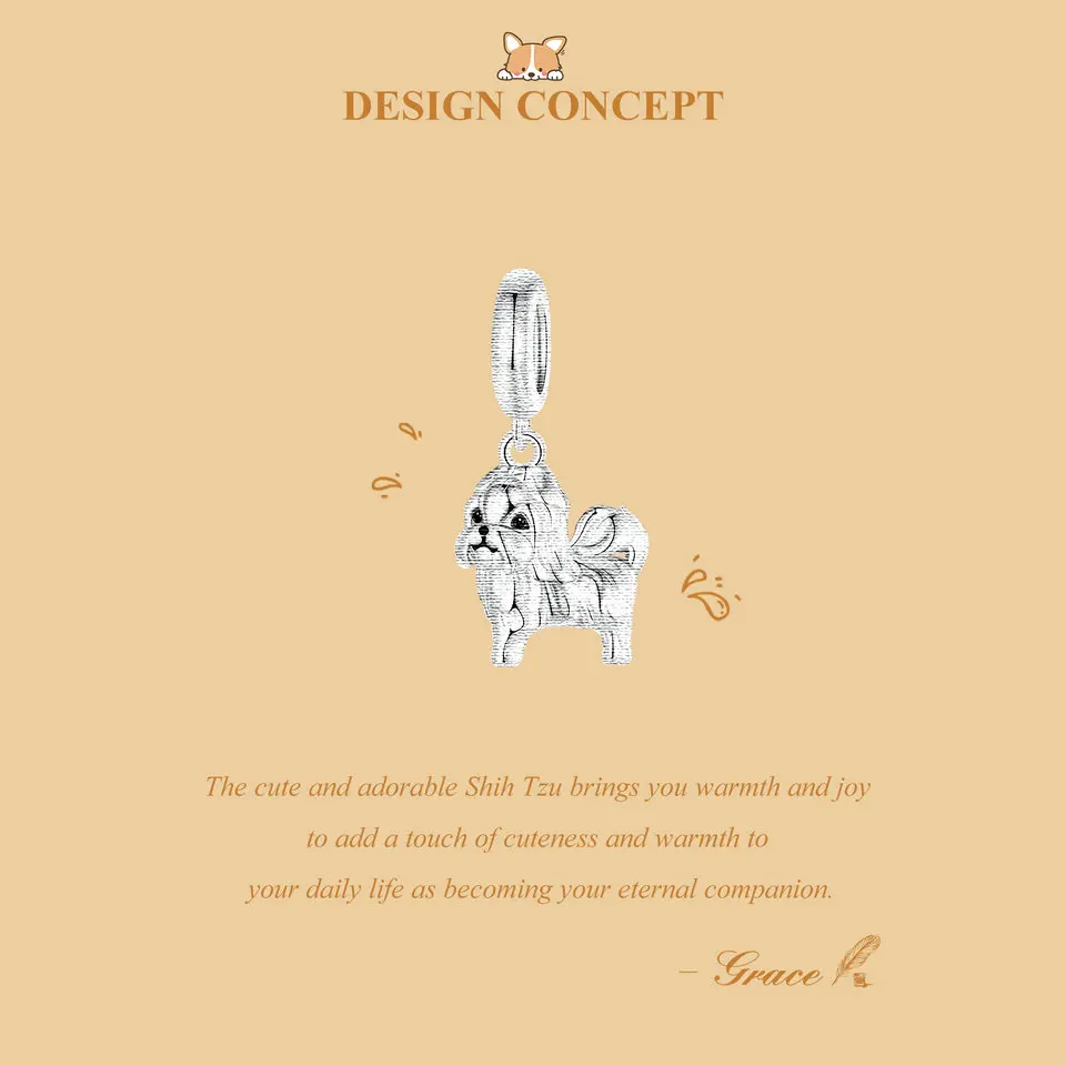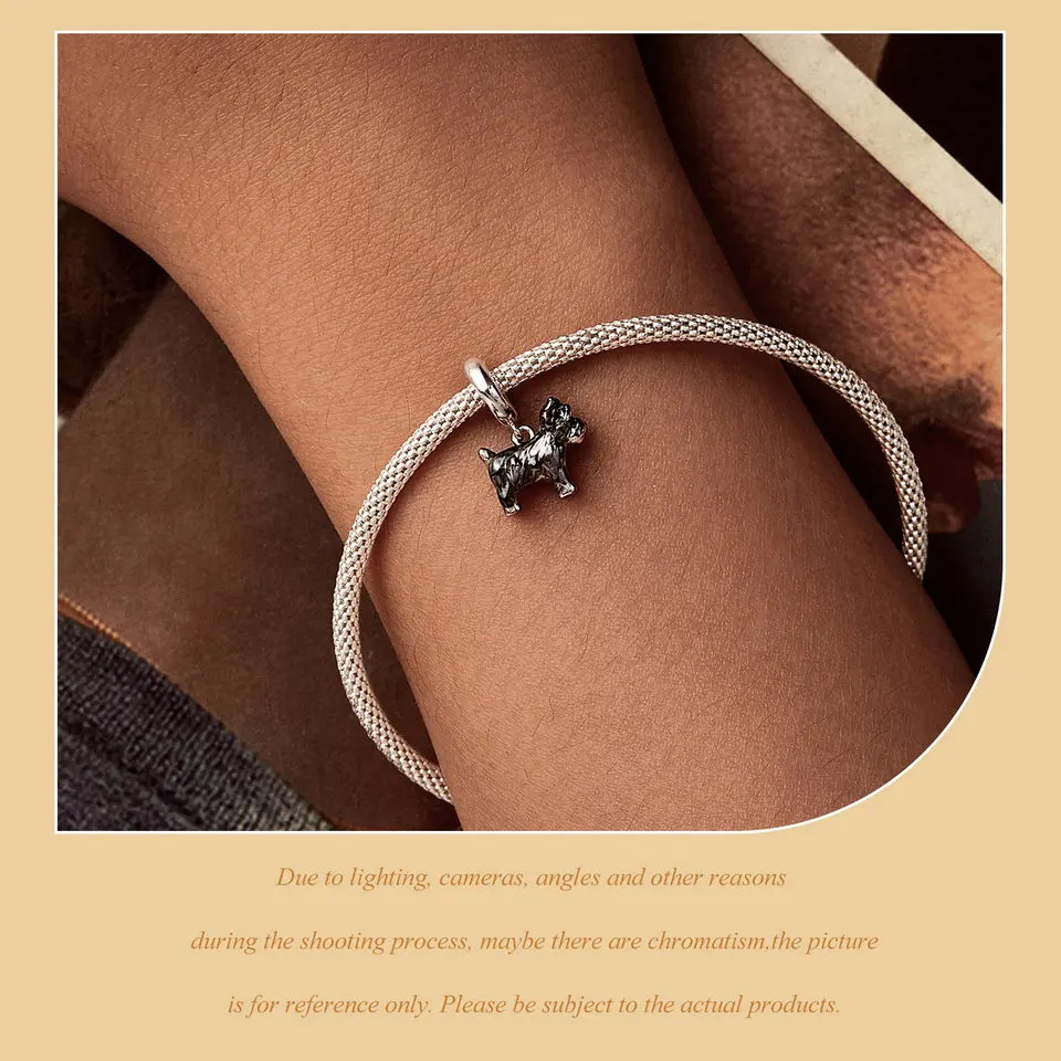 WOSTU 925 Sterling Silver Dog Charms Yellow Corgi Pendant Pink Pet Paw Dachshunds Shih Tzu dog Dalmatian Bead Fit DIY Bracelet