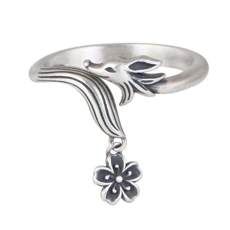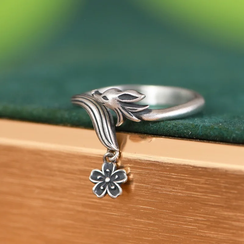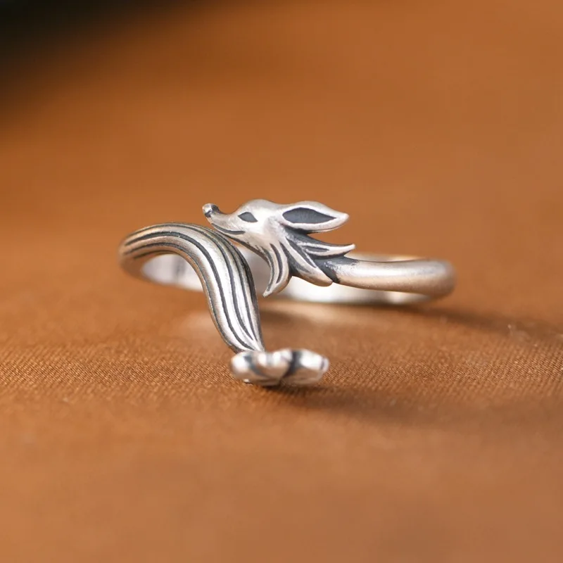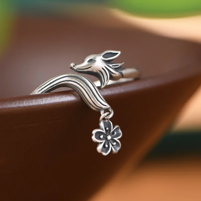 XIYANIKE Men Women Vintage Thai Silver Fox Flower Cuff Finger Rings Animal Fashion New Jewelry Lovers Gift Party anillos mujer
